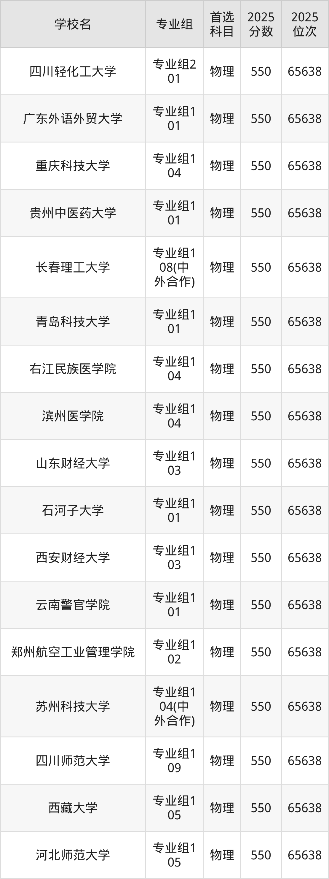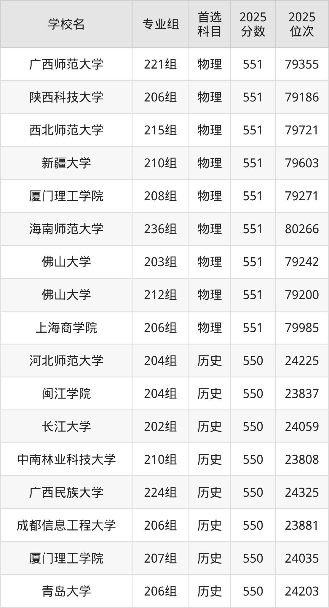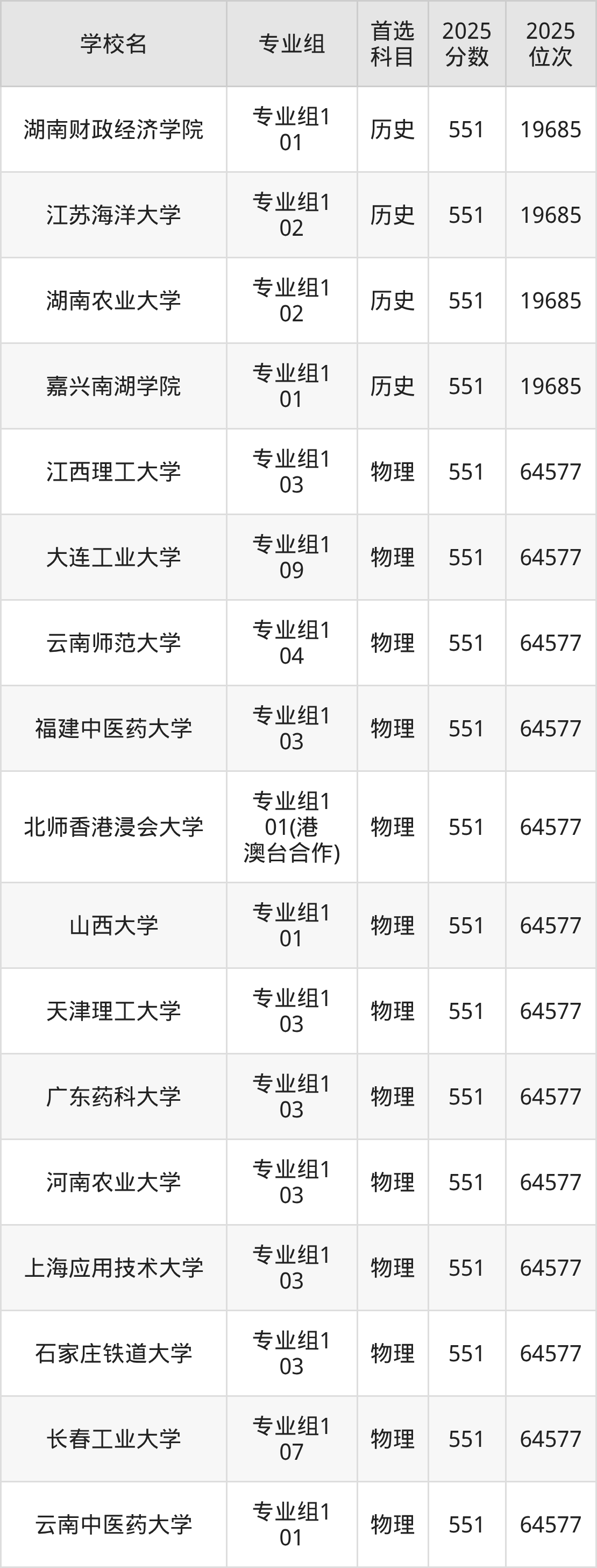 下面老师将以上文整理的其中两个省份为例,为大家具体展示552分左右能上的本科大学名单。