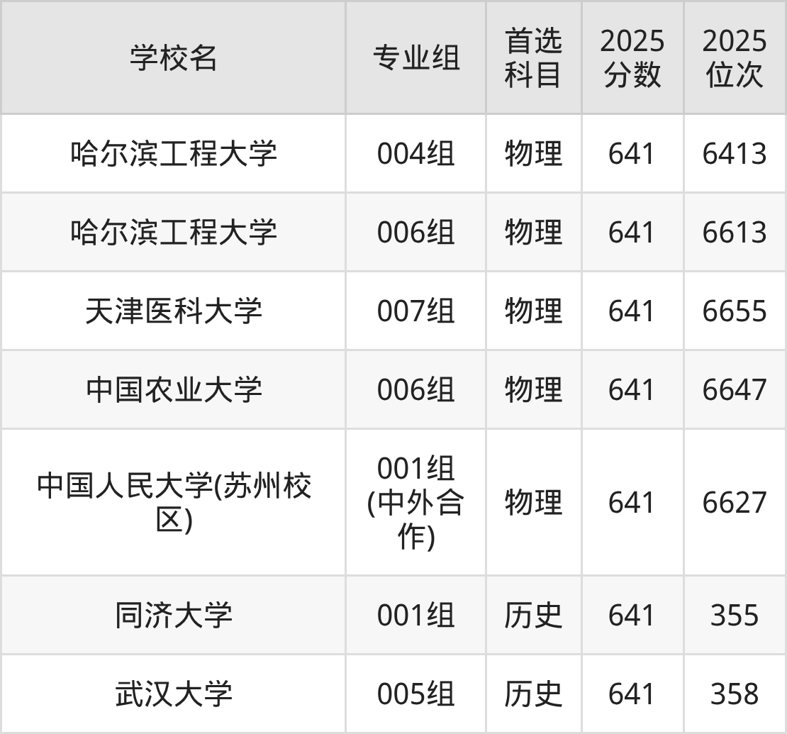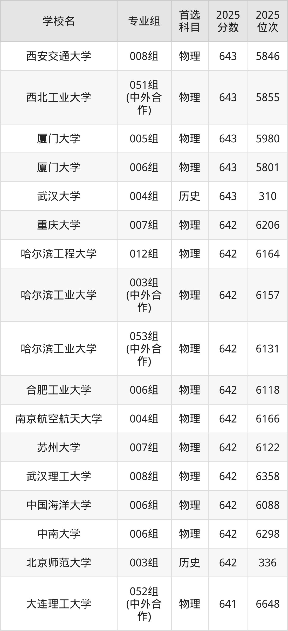 江苏高考物理类643分对应的位次排名是6732名,历史类643分对应的位次排名是497名,因此建议2026年位次排在这附近的同学考虑这些大学。