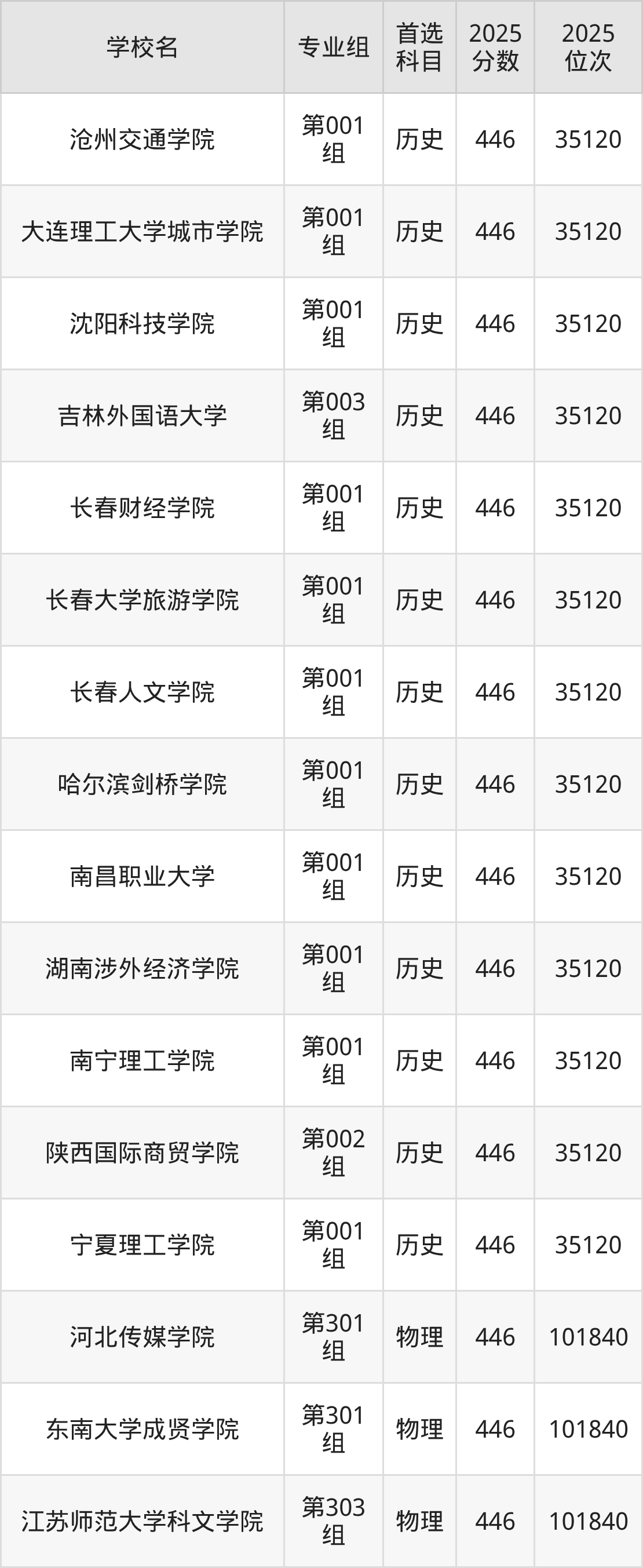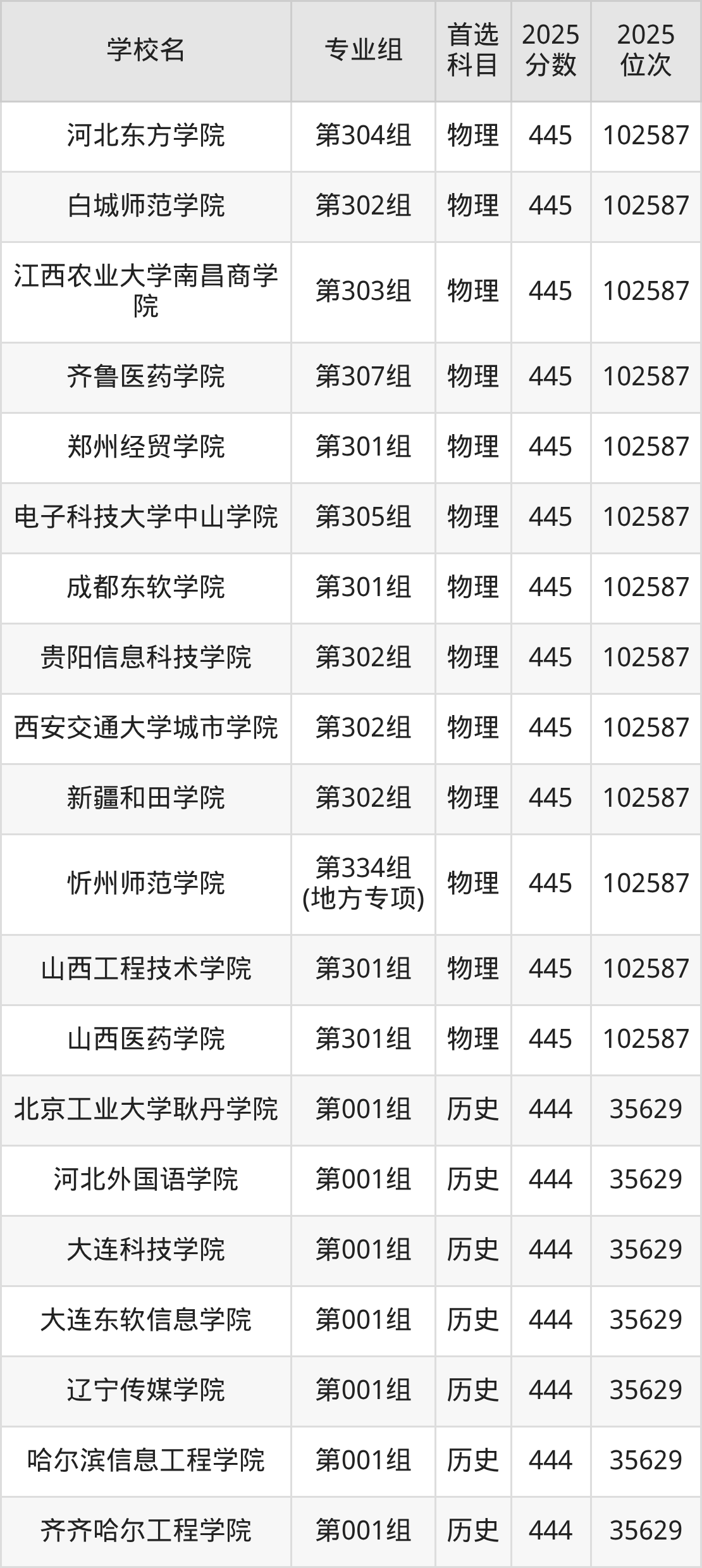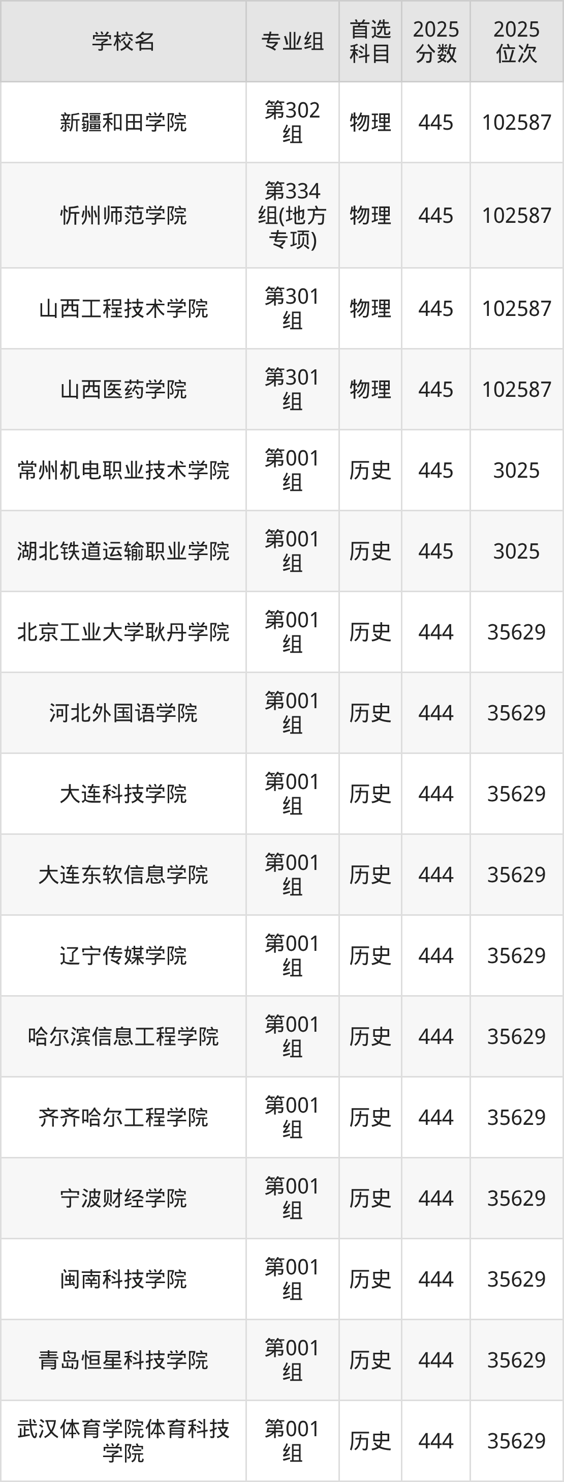 444分可以冲一冲的大学:河北建筑工程学院446分、河北环境工程学院446分、吕梁学院446分、长治学院446分等;