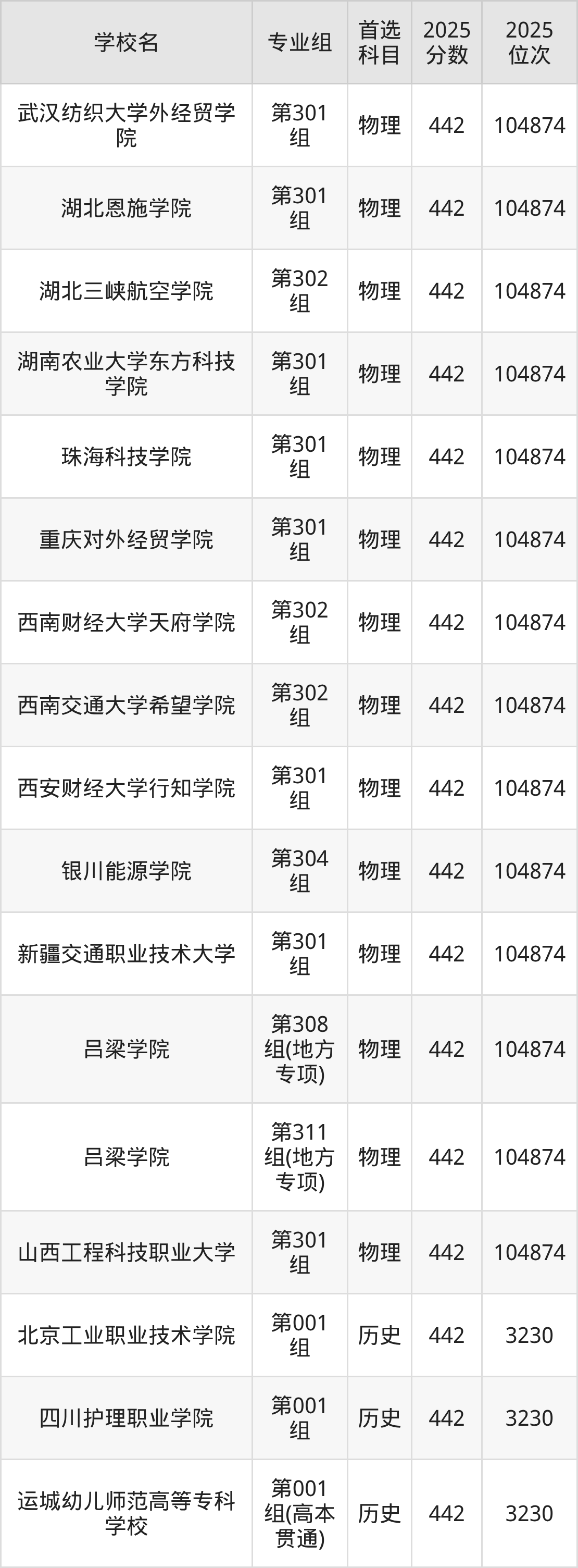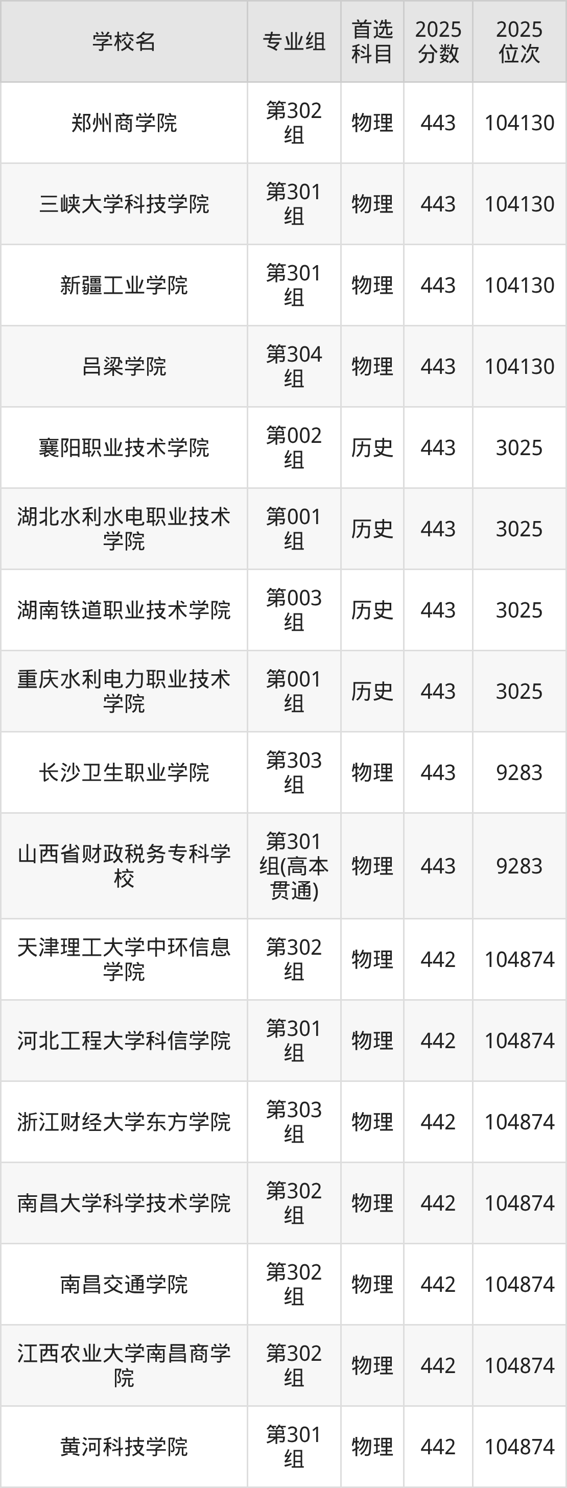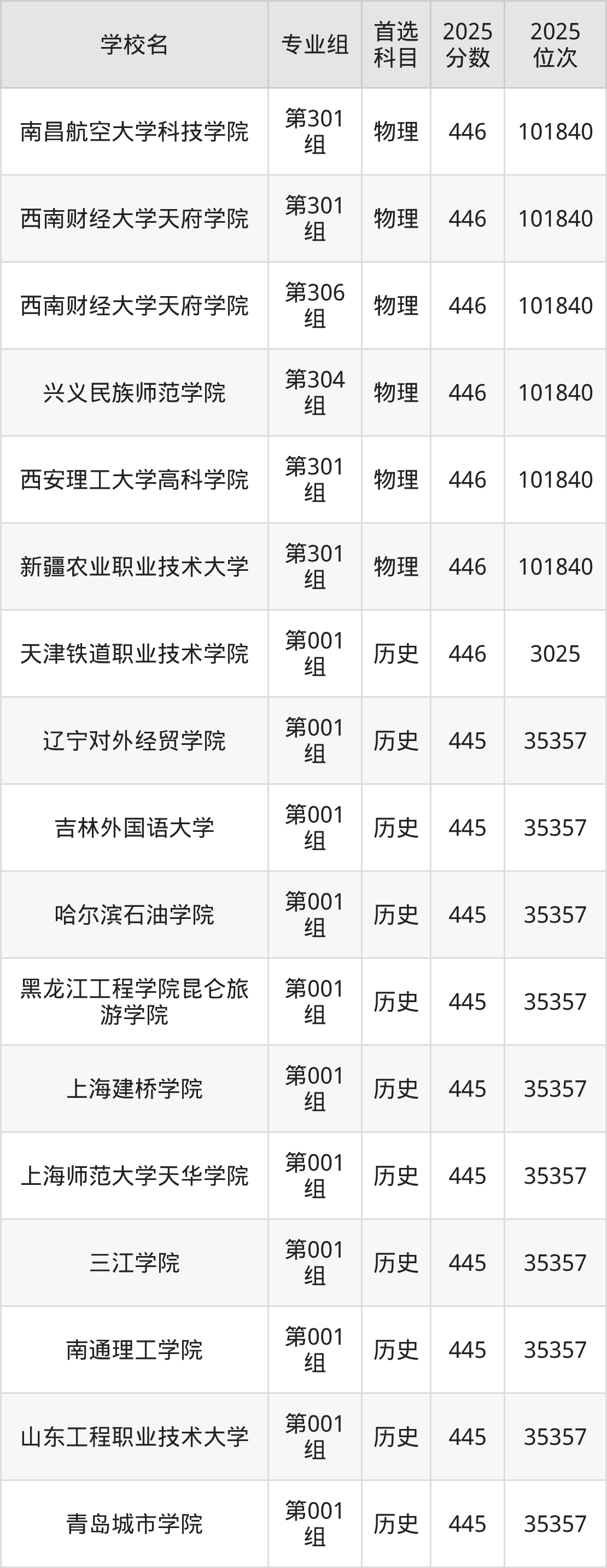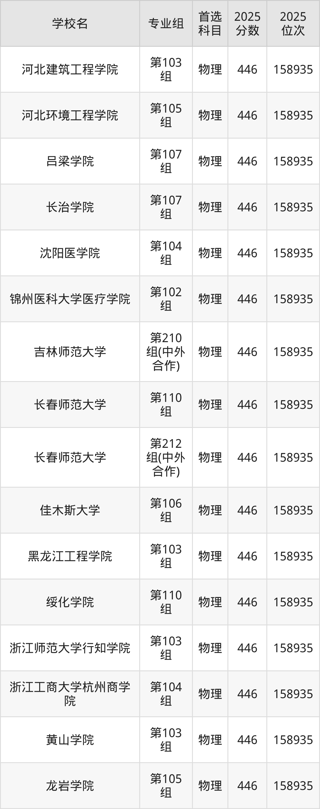 444分可以冲一冲的大学:河北建筑工程学院446分、河北环境工程学院446分、吕梁学院446分、长治学院446分等;