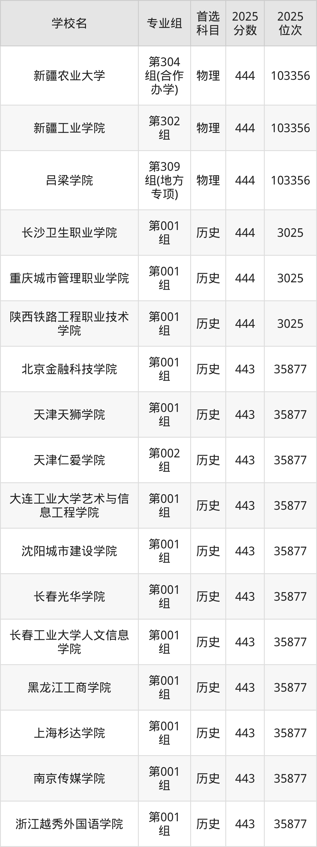 山西高考历史类444分对应的位次排名是3025名-35629名,物理类444分对应的位次排名是103356名,因此建议2026年位次排在这附近的同学考虑这些大学。