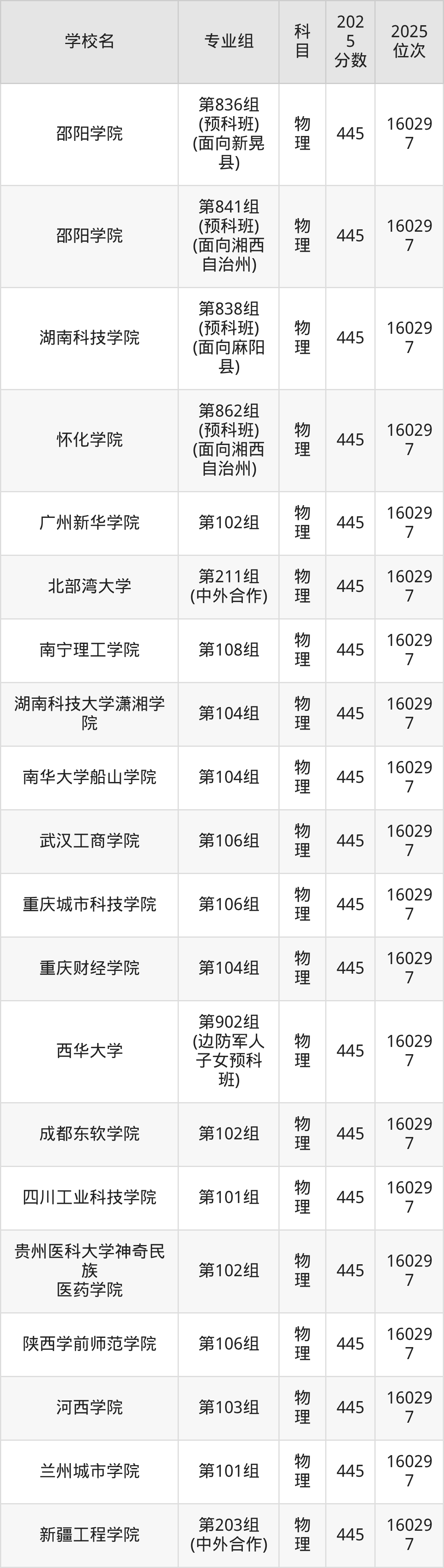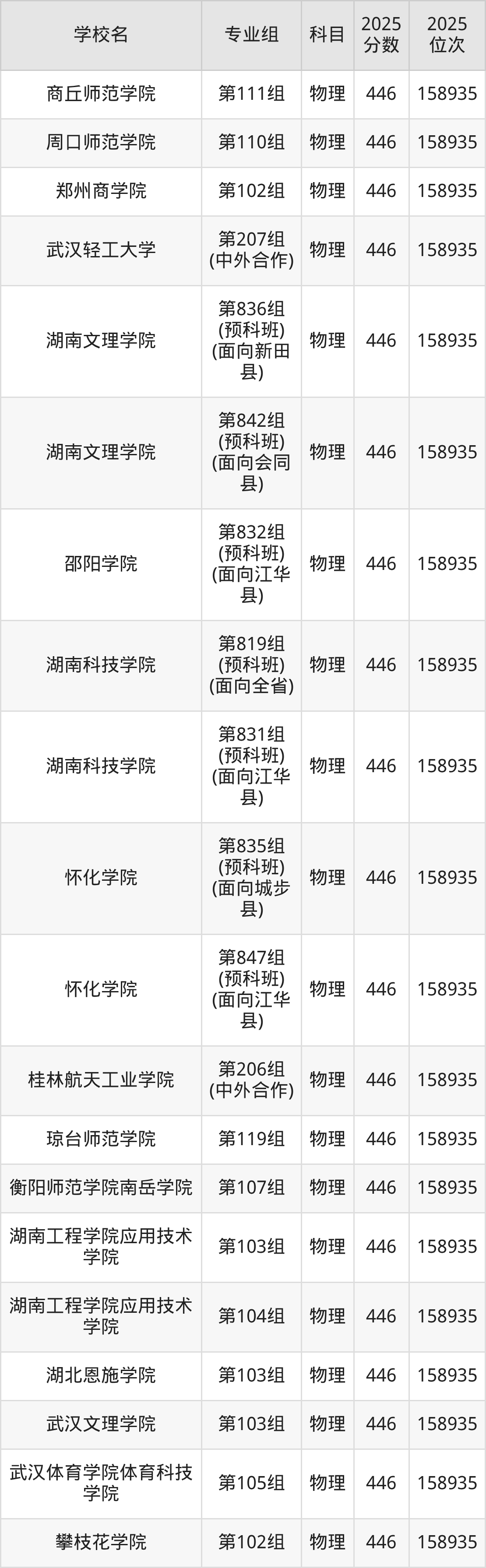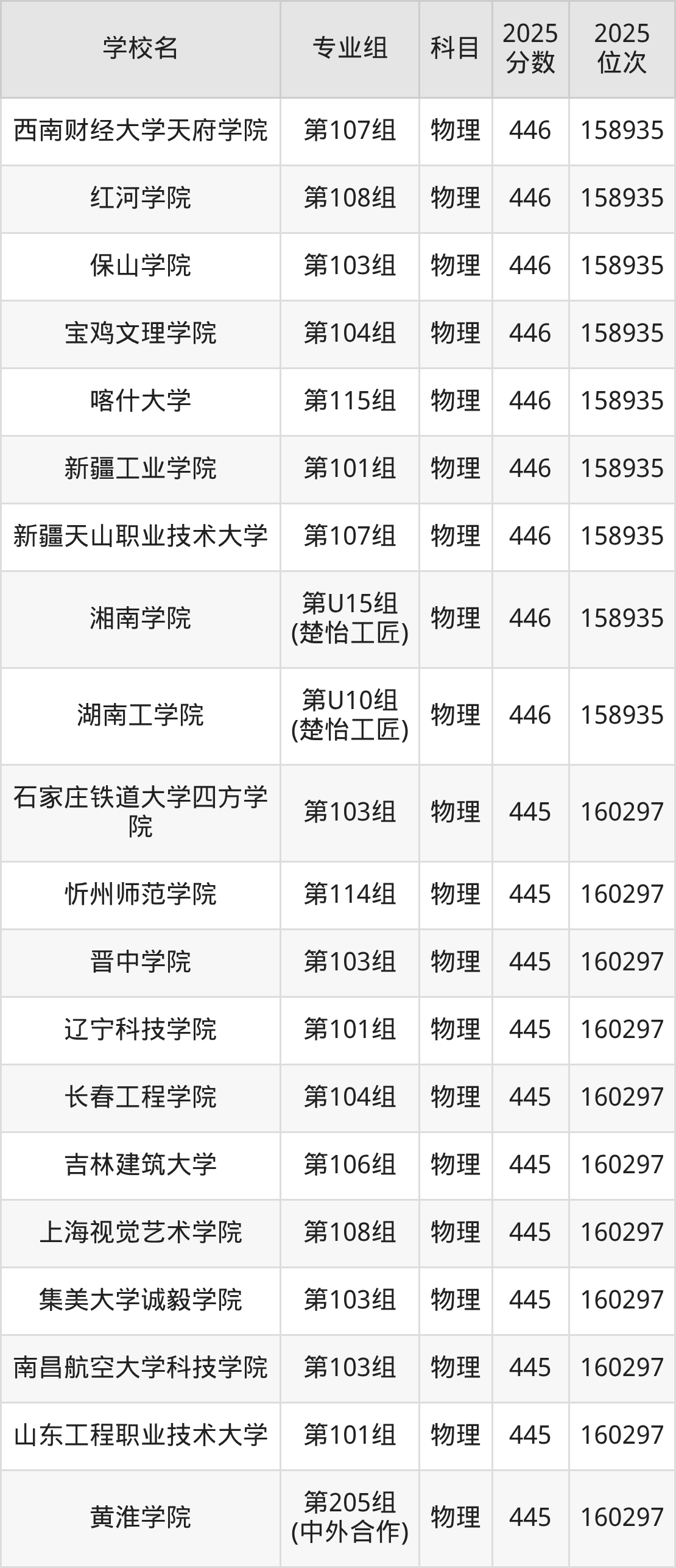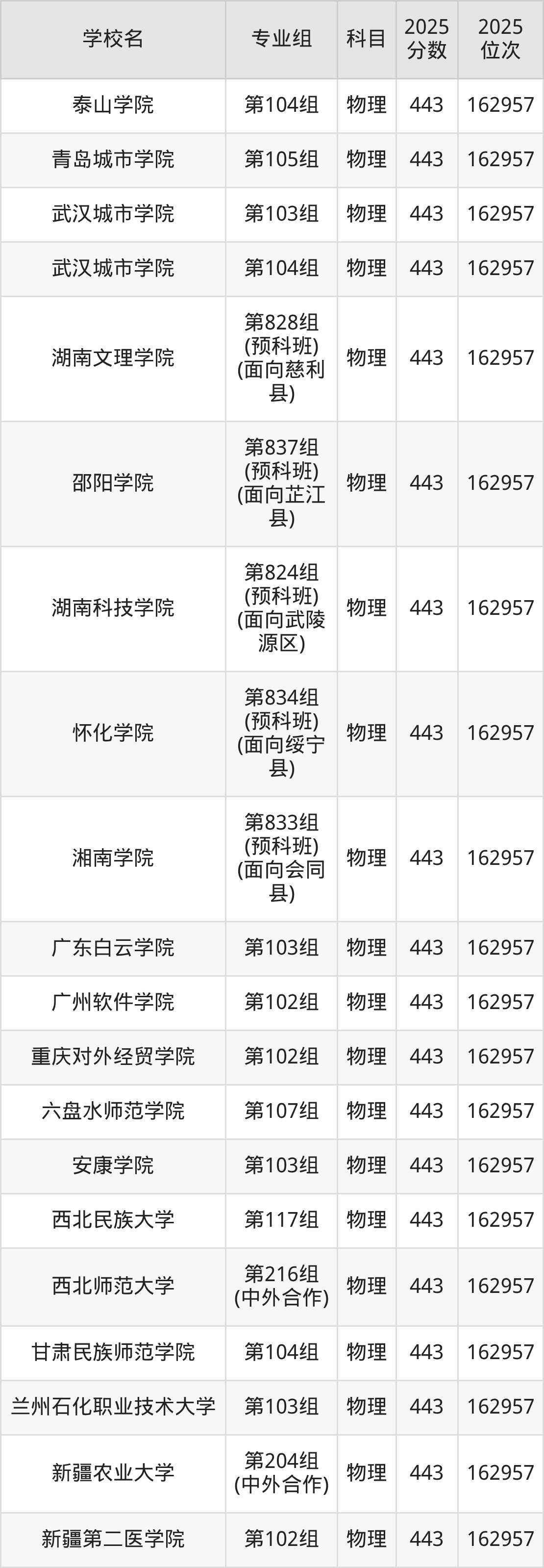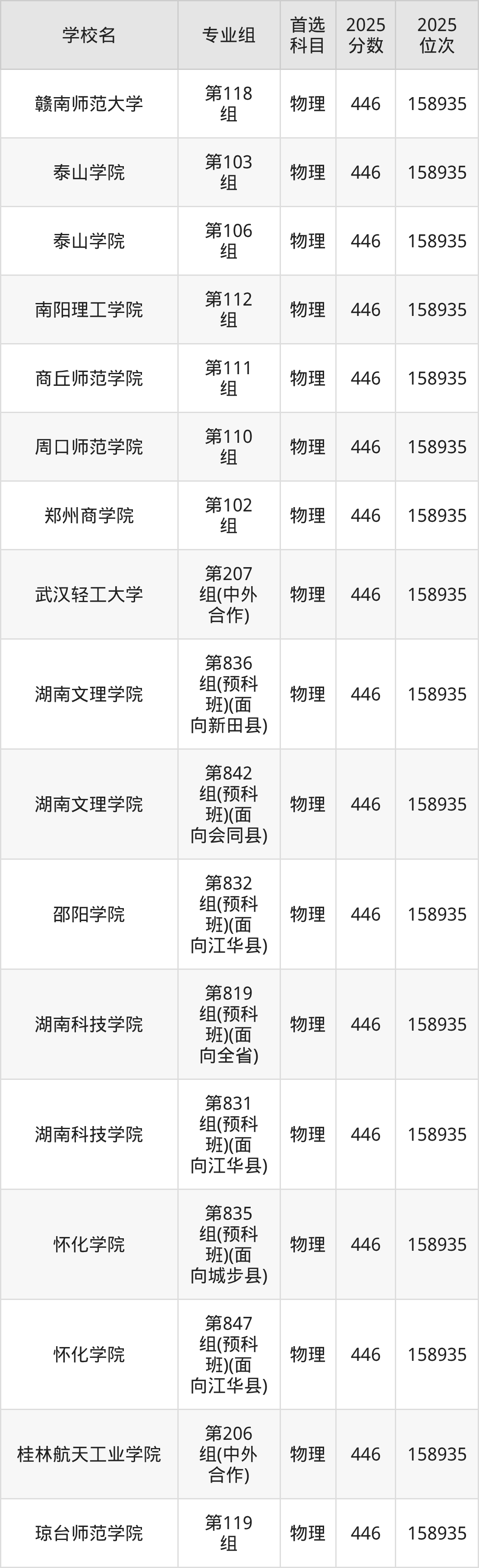 湖南物理类444分对应的位次排名是161624名,因此建议2026年位次排在这附近的考生考虑这些大学。