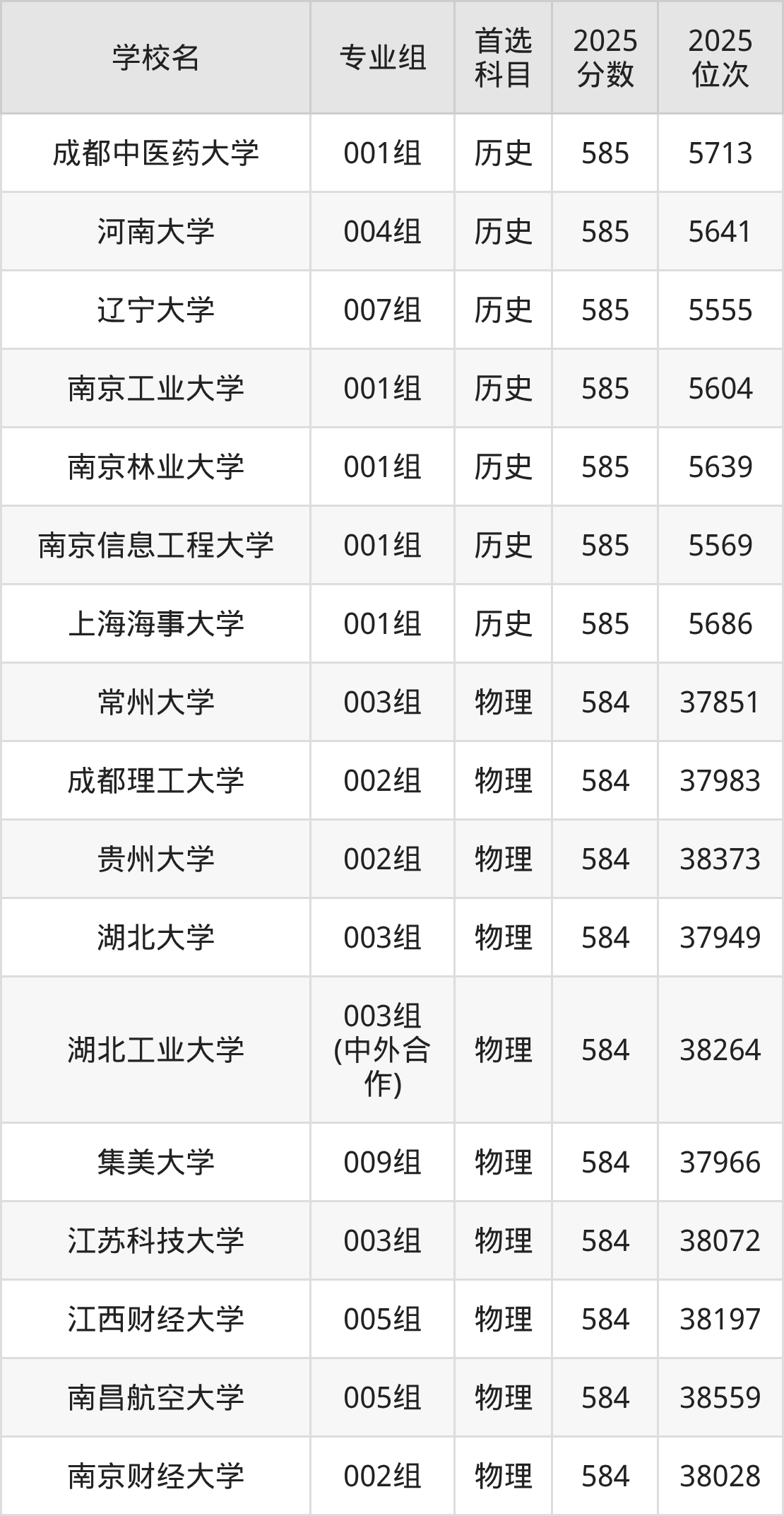 湖北高考历史类586分对应的位次排名是5391名,物理类586分对应的位次排名是20901名,因此建议2026年位次排在这附近的同学考虑这些大学。
