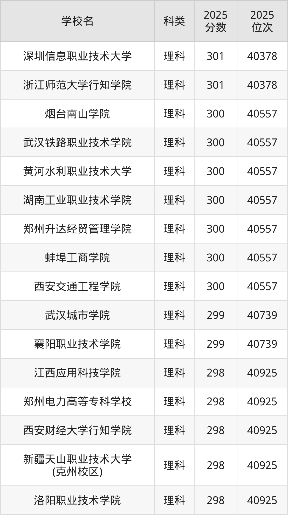 2025年在新疆高考录取分数线是299分的大学一共有2所,分别是武汉城市学院、襄阳职业技术学院。