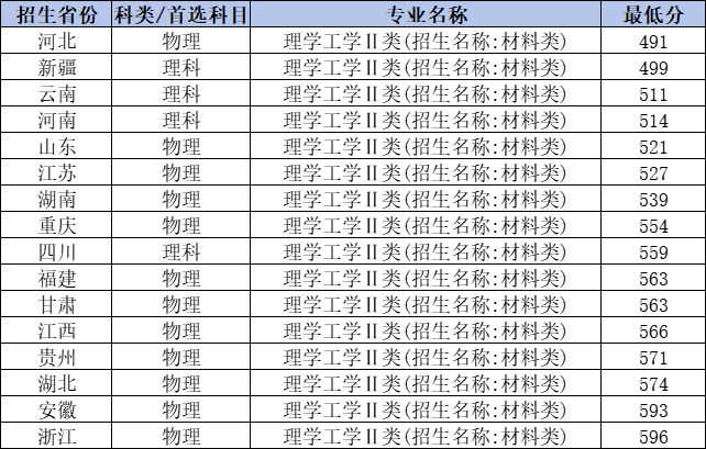 以2024年高考招录数据为例,上海大学高校专项计划在全国各省招生分数范围位于491分~596分之间。其中河北考生物理类最低需491分(理学工学Ⅱ类(招生名称:材料类));山东考生物理类最低需521分(理学工学Ⅱ类(招生名称:材料类))等。