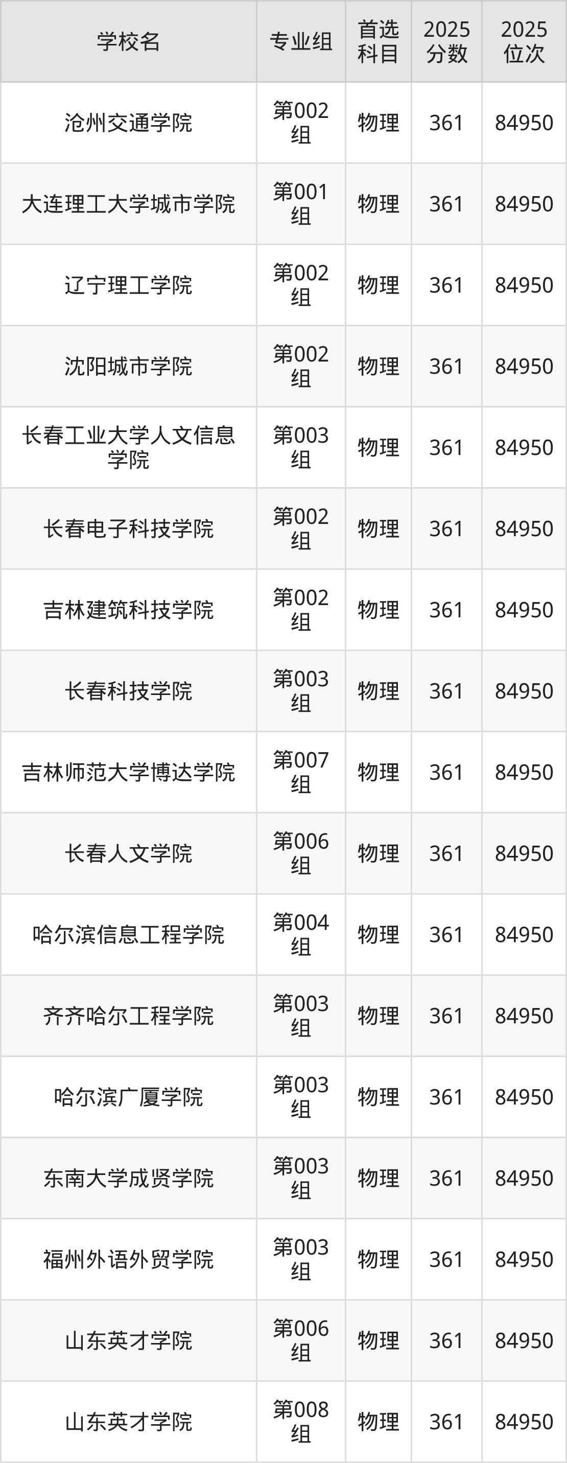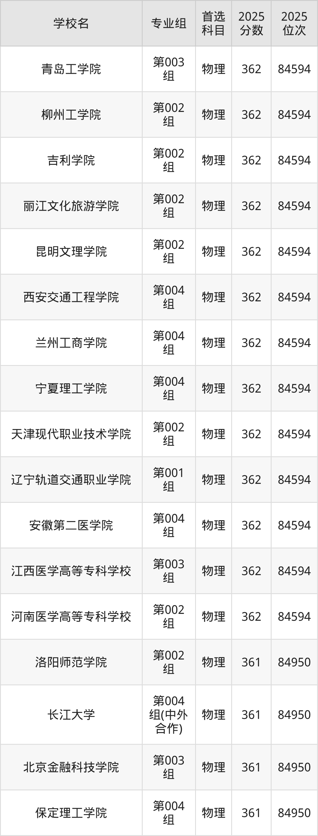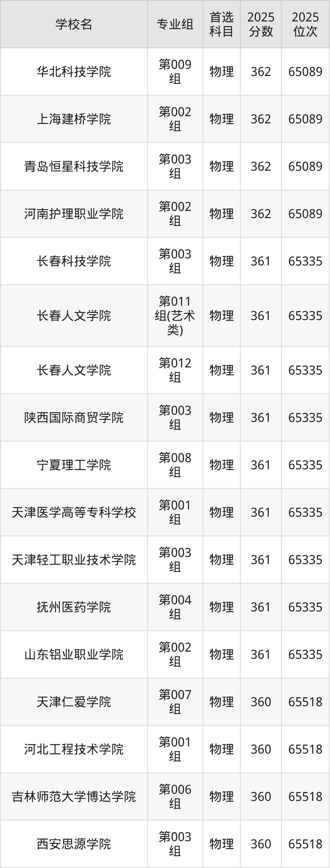吉林物理类362分对应的位次排名是65089名,因此建议2026年位次排在这附近的考生考虑这些大学。