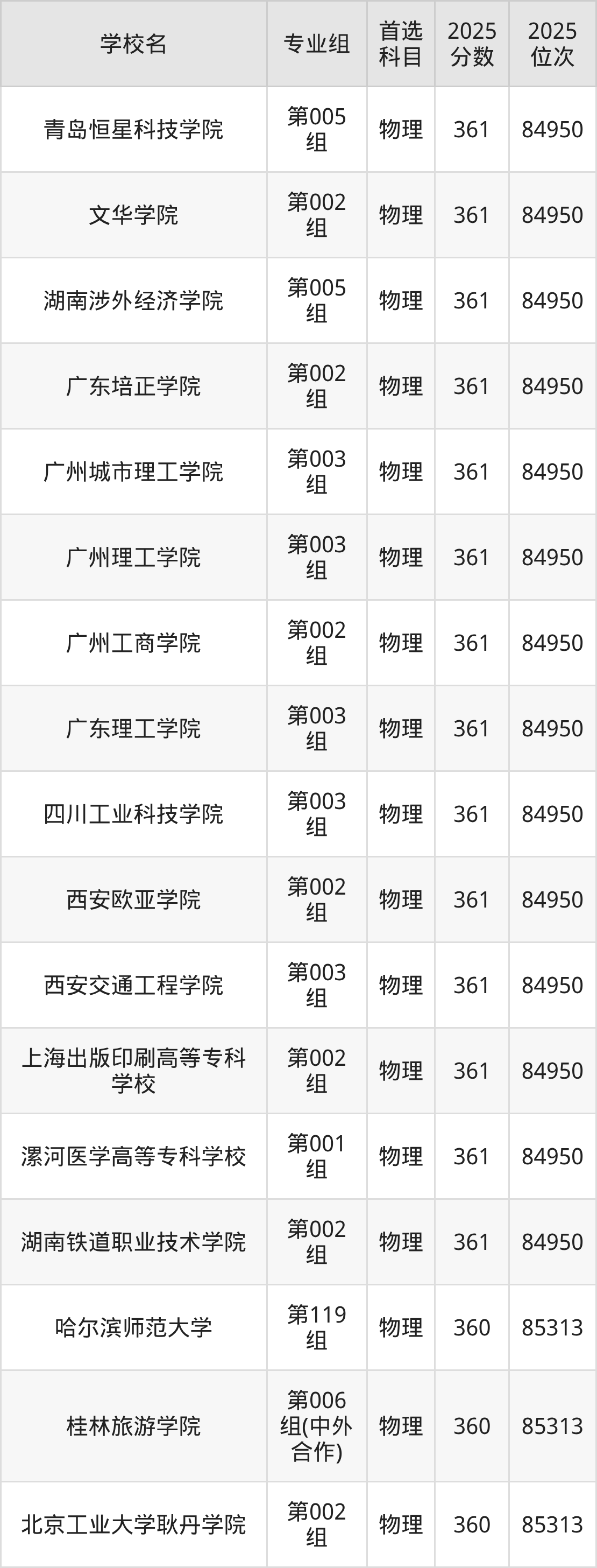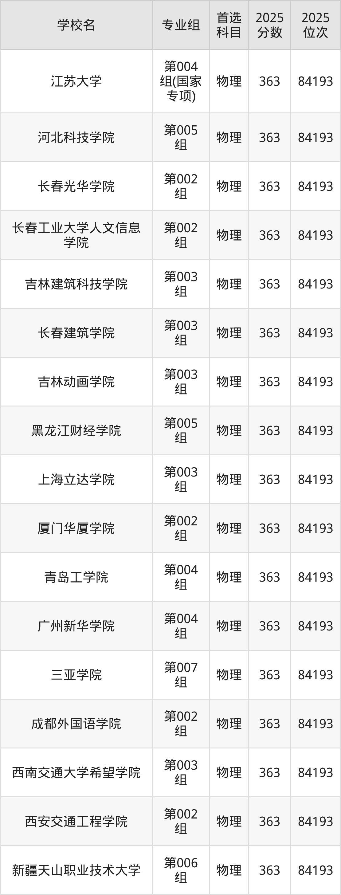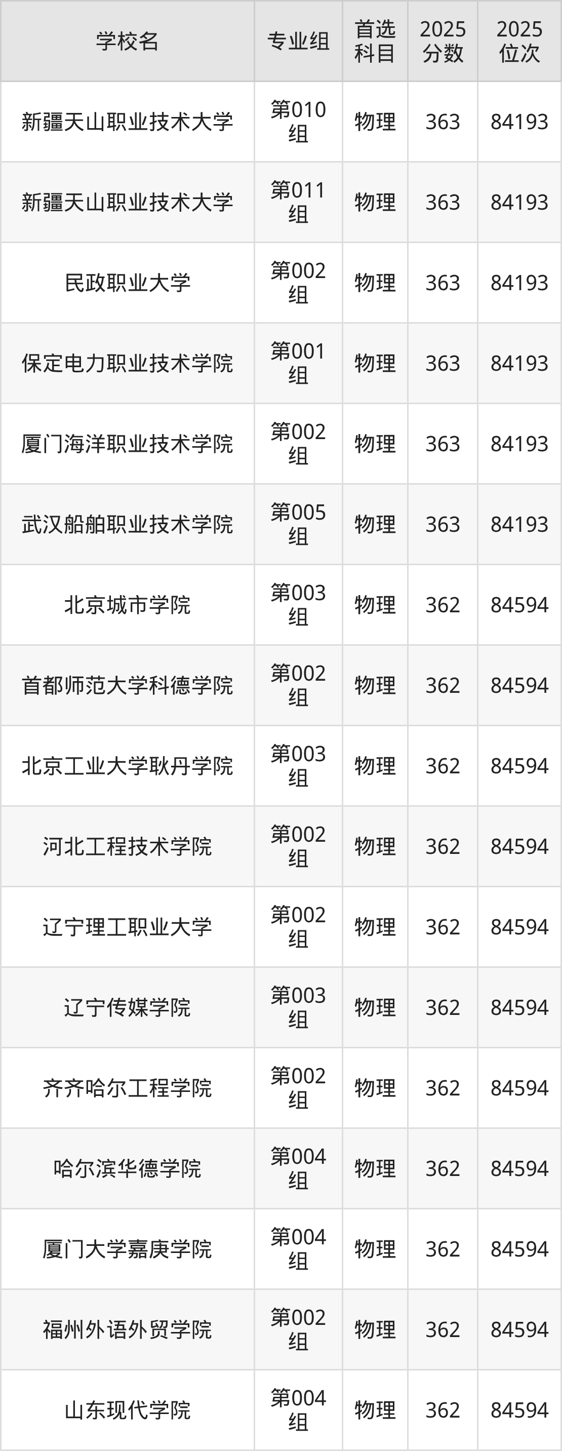 吉林物理类362分对应的位次排名是65089名,因此建议2026年位次排在这附近的考生考虑这些大学。