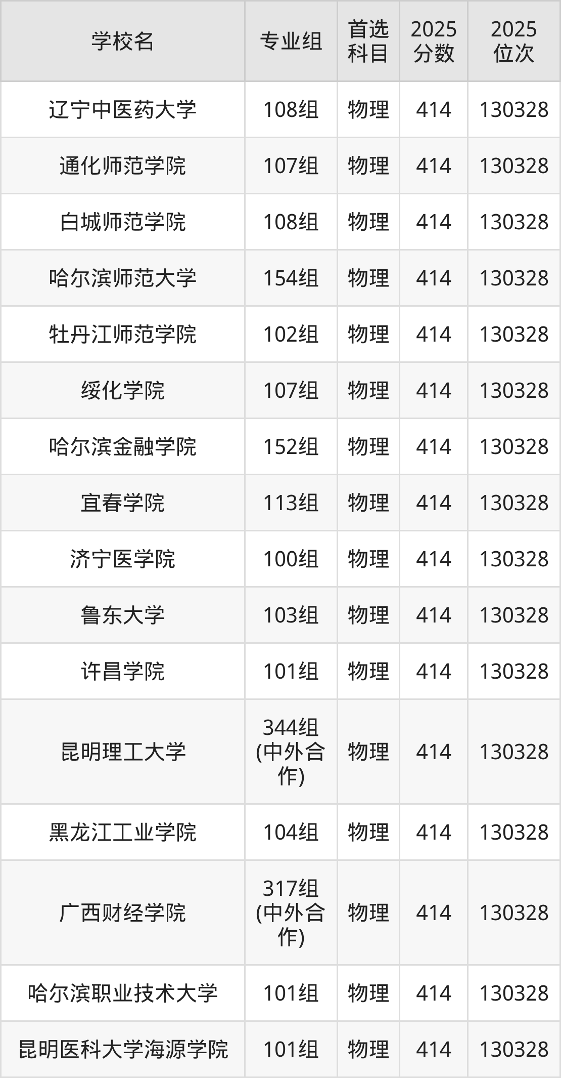物理类412分可以冲的大学:辽宁中医药大学414分、通化师范学院414分、白城师范学院414分、哈尔滨师范大学414分等;较稳妥的大学:内蒙古工业大学411分、吉林农业大学411分、佳木斯大学411分、广东白云学院411分等。