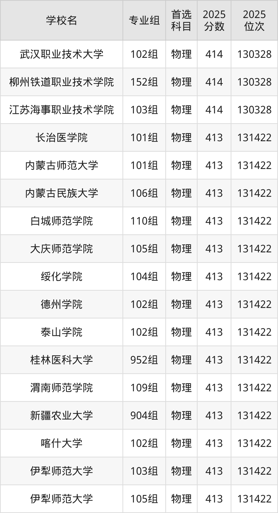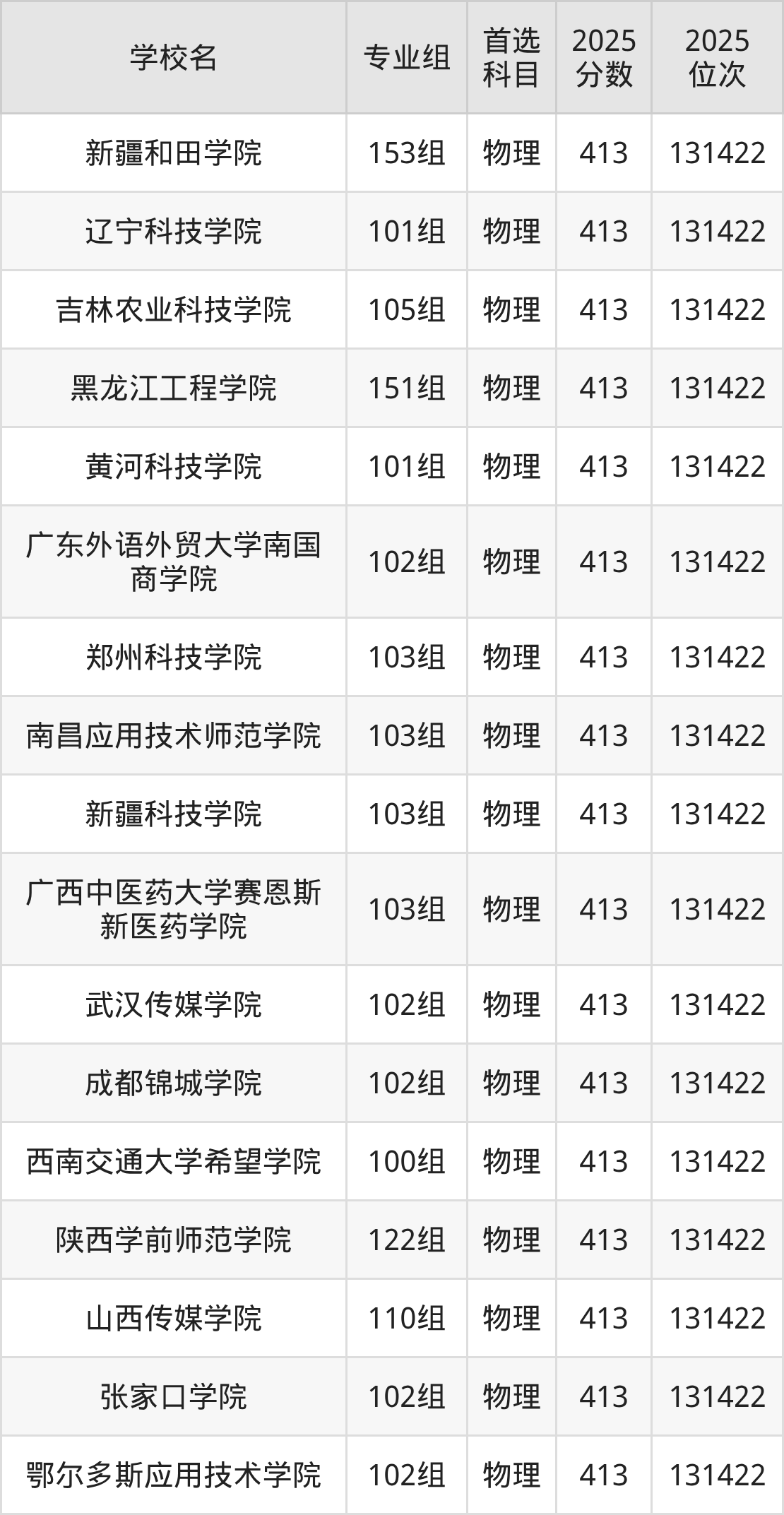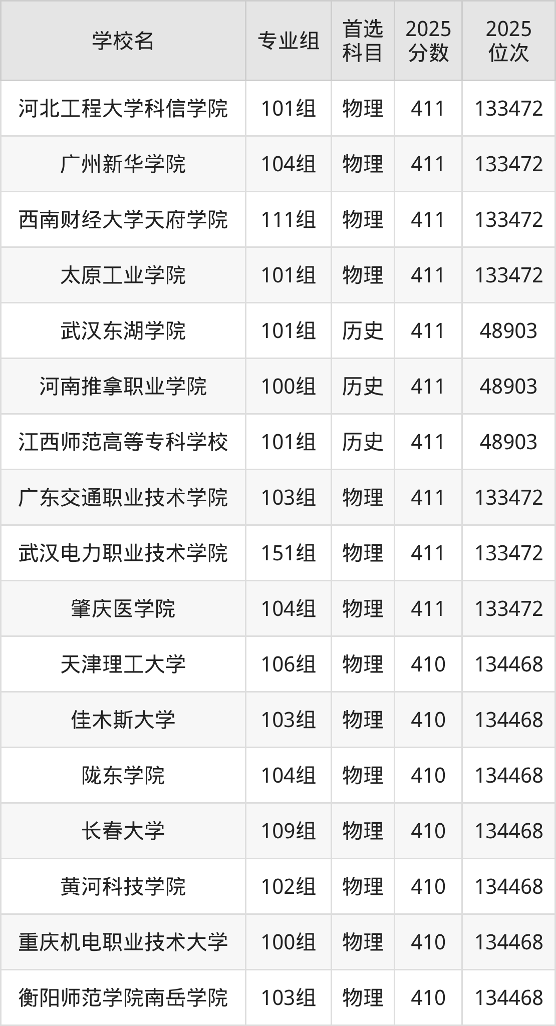 广西高考物理类412分对应的位次排名是132436名,历史类412分对应的位次排名是48445名,因此建议2026年位次排在这附近的同学考虑这些大学。