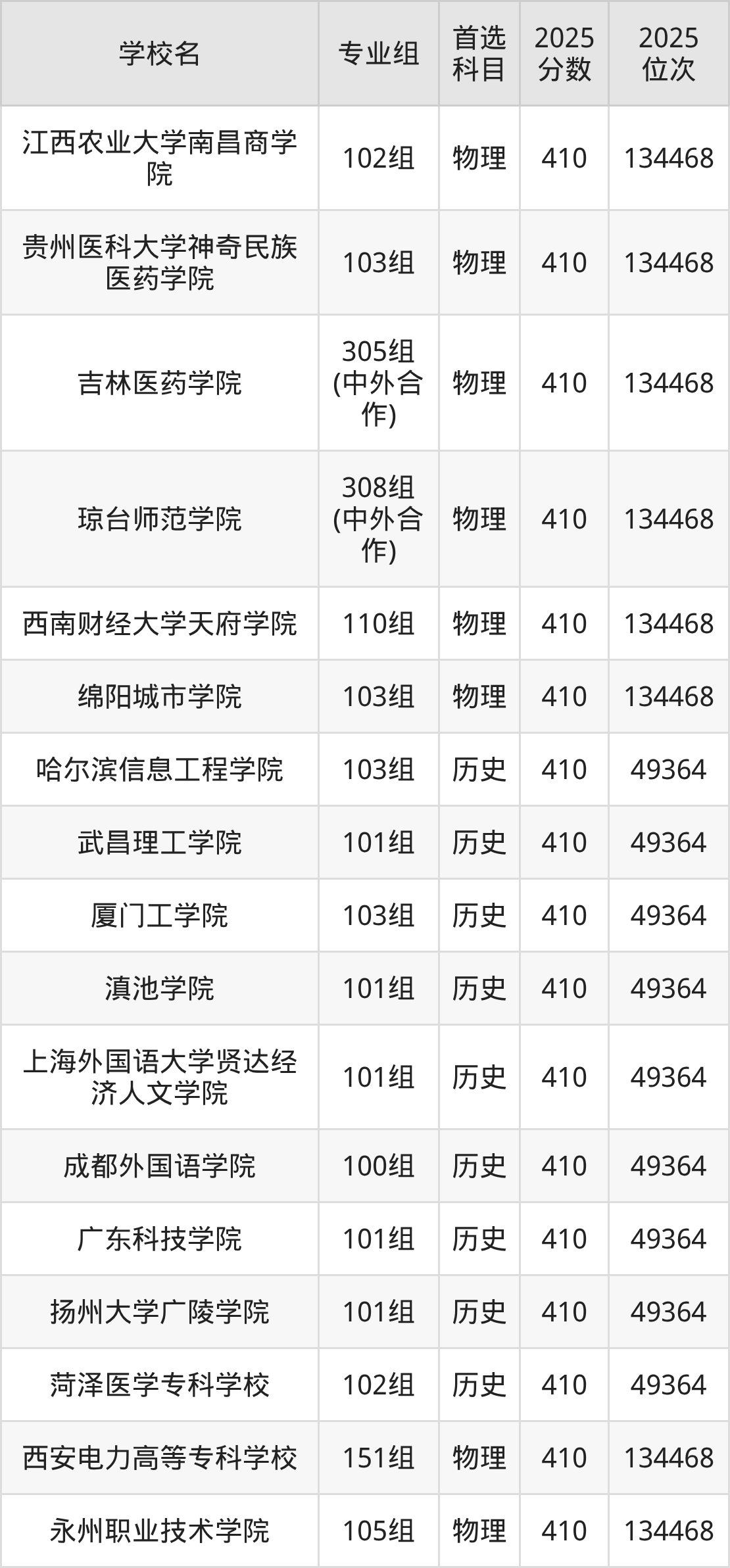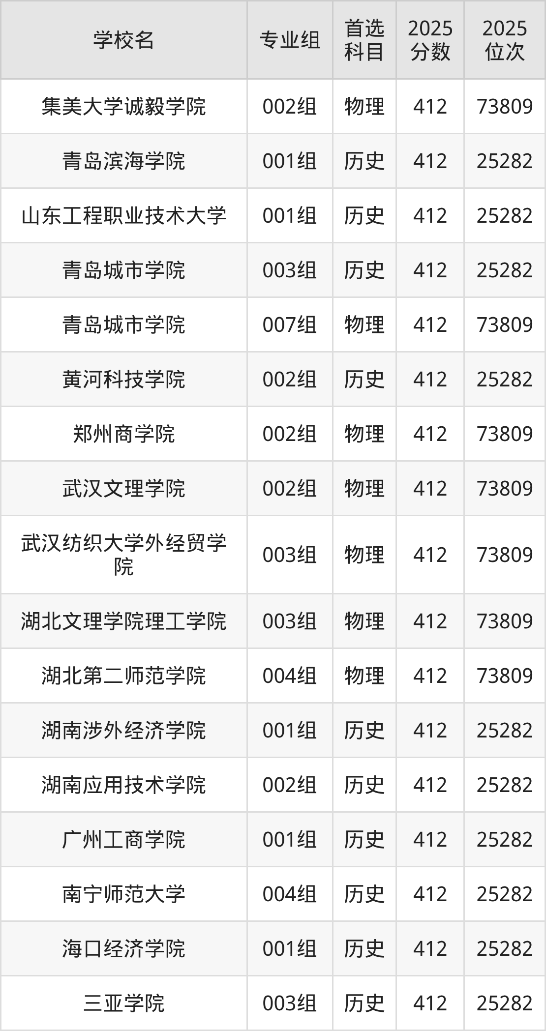 下面老师将以上文整理的其中两个省份为例,为大家具体展示412分左右能上的本科大学名单。