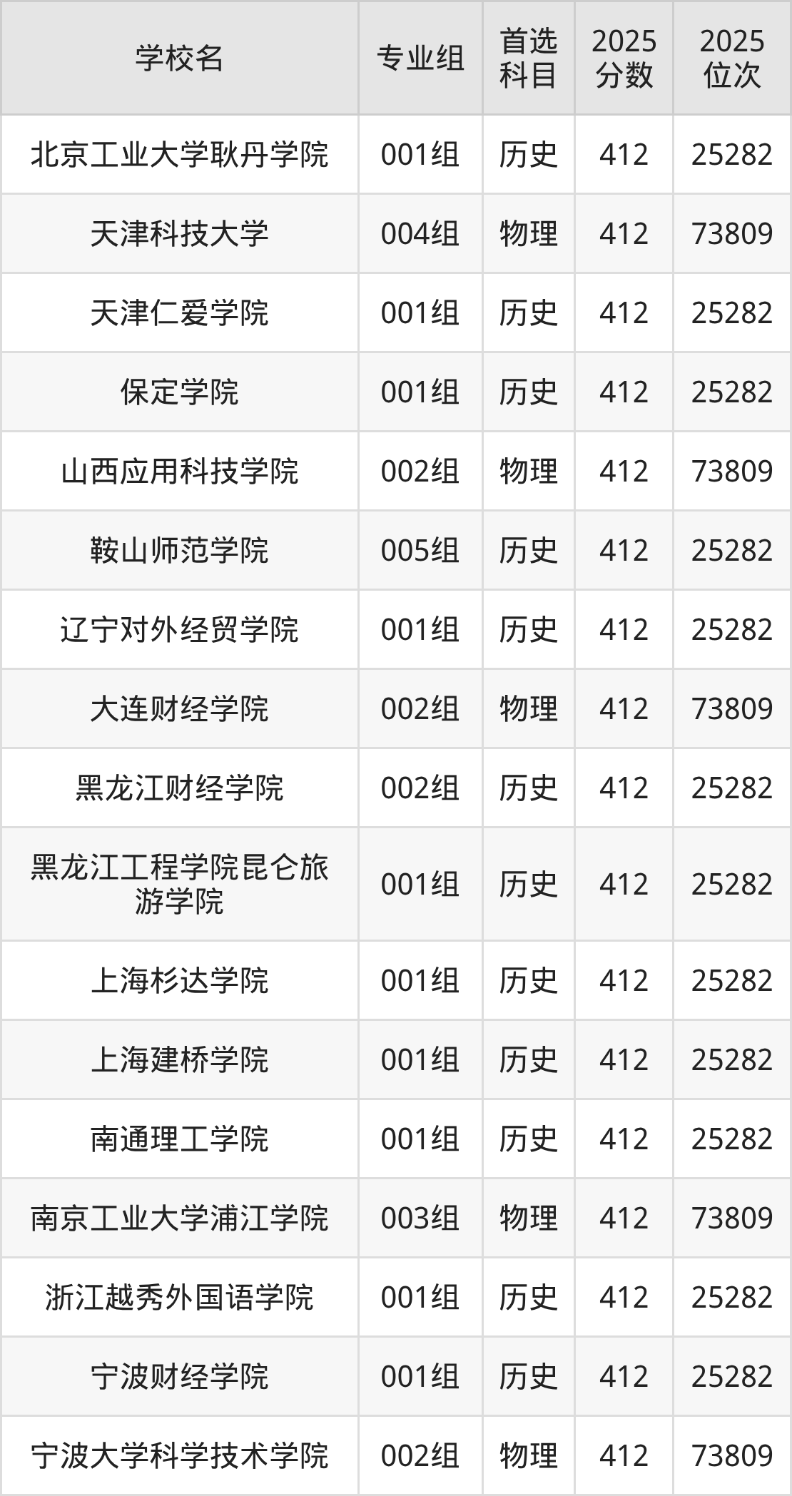 2026年高考412分可以报考的大学有北京工业大学耿丹学院、天津科技大学、天津仁爱学院、保定学院、山西应用科技学院等。412分能上的大学名单因省而异,下面为大家展示,2026届考生请查阅。