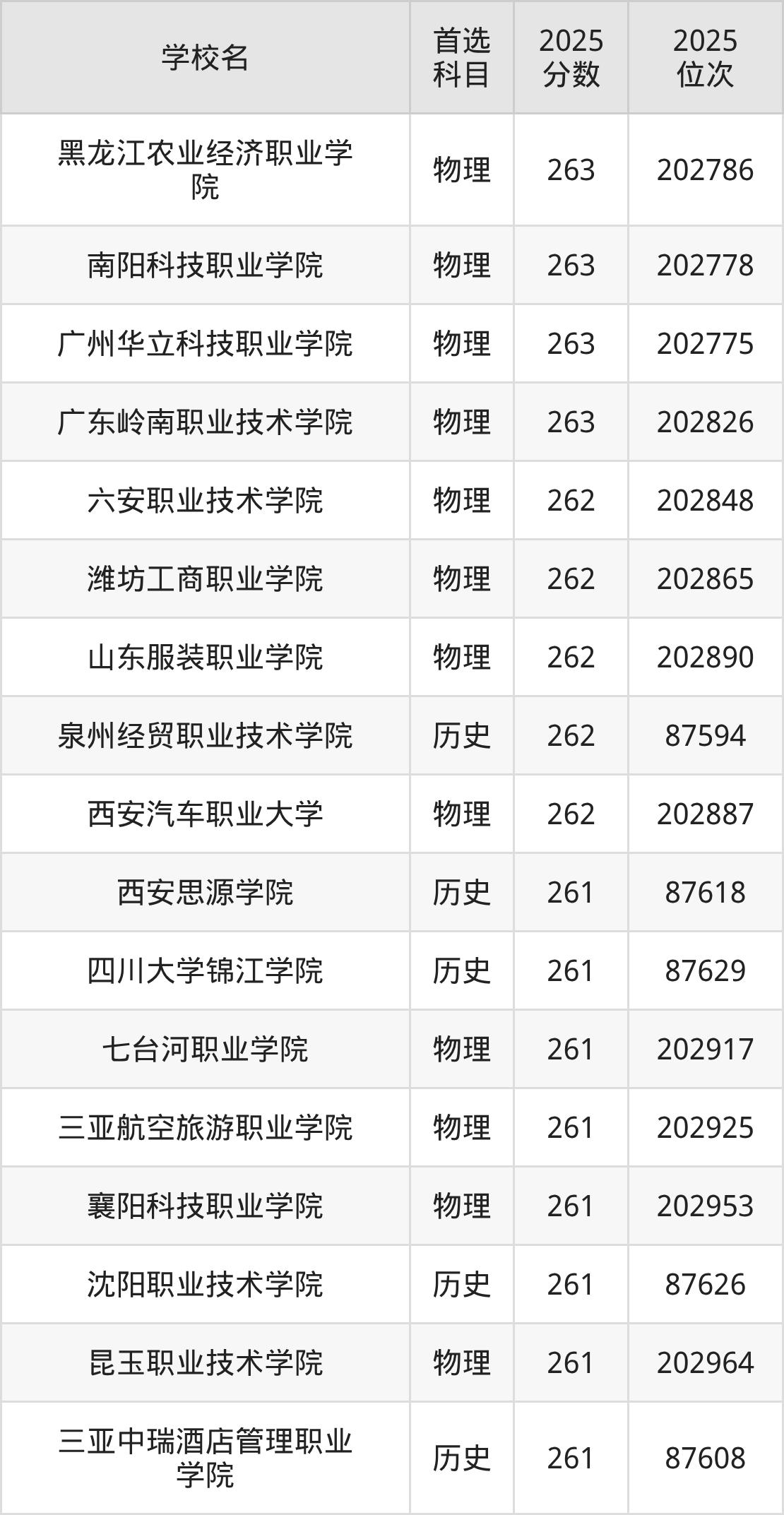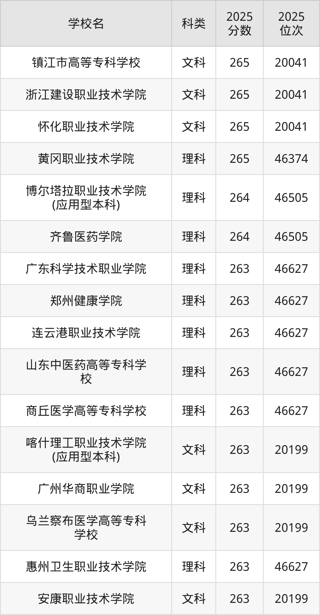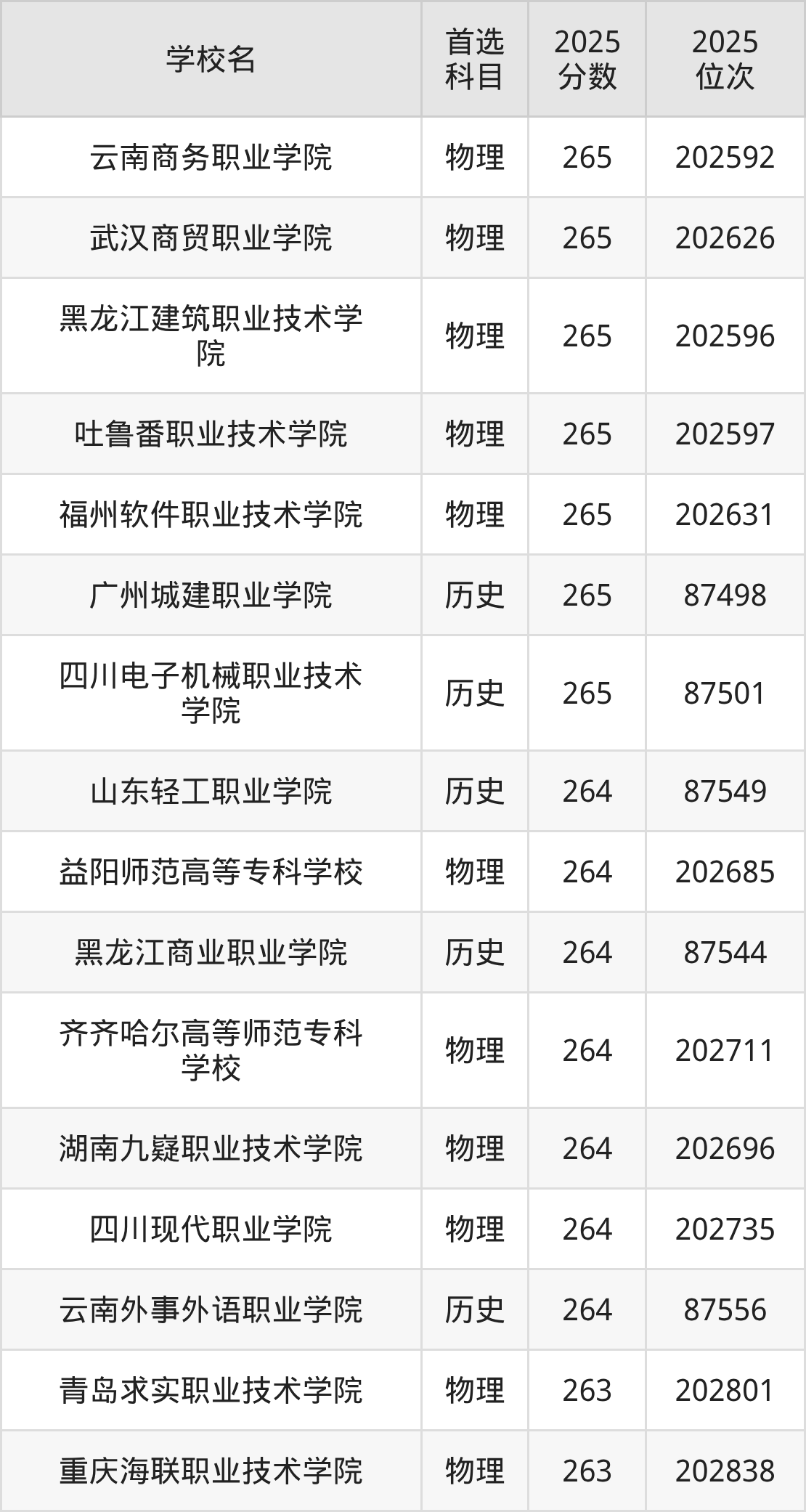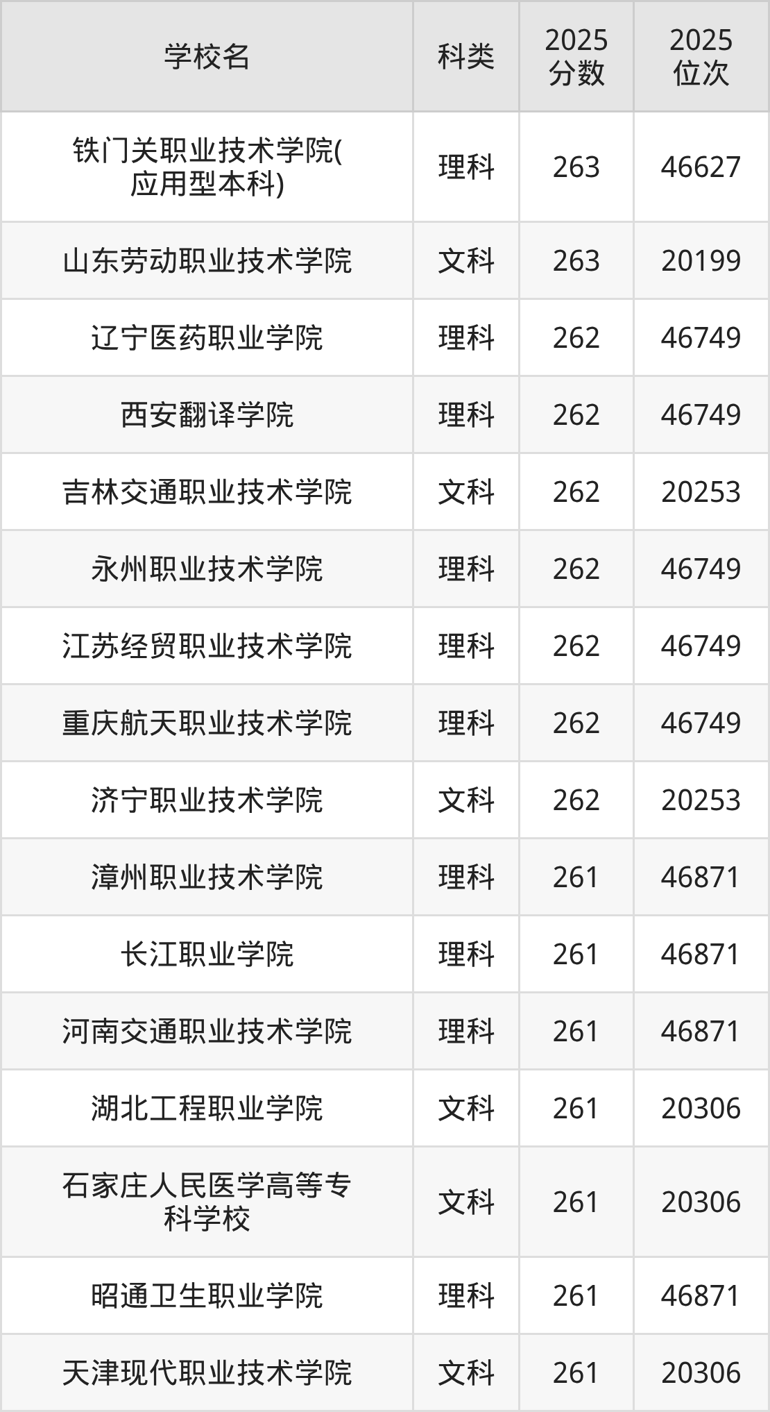 二、263分左右的专科大学排名
