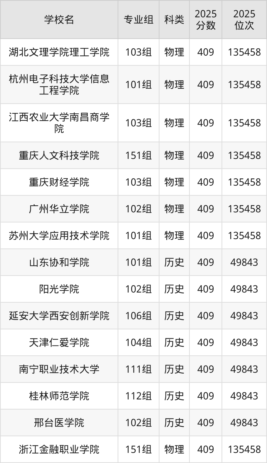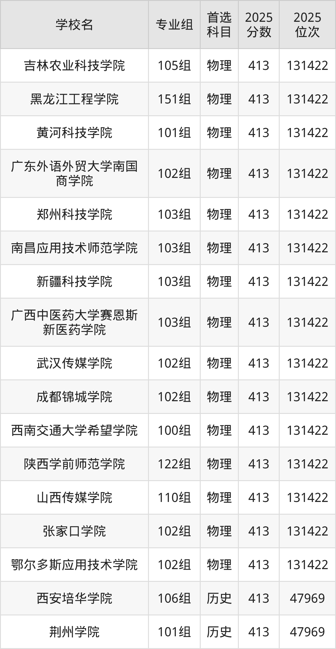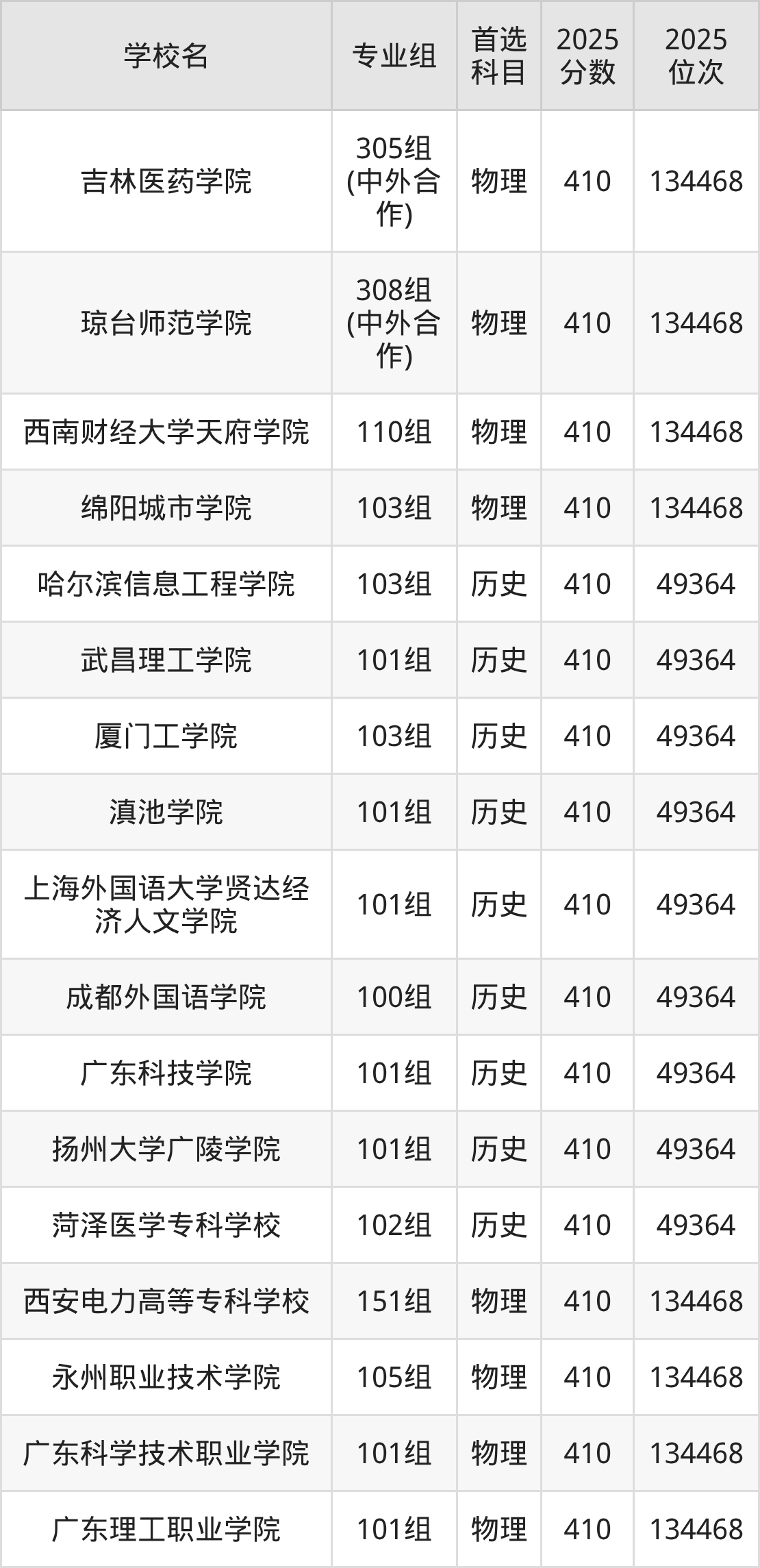 下面老师将以上文整理的其中两个省份为例,为大家具体展示411分左右能上的本科大学名单。