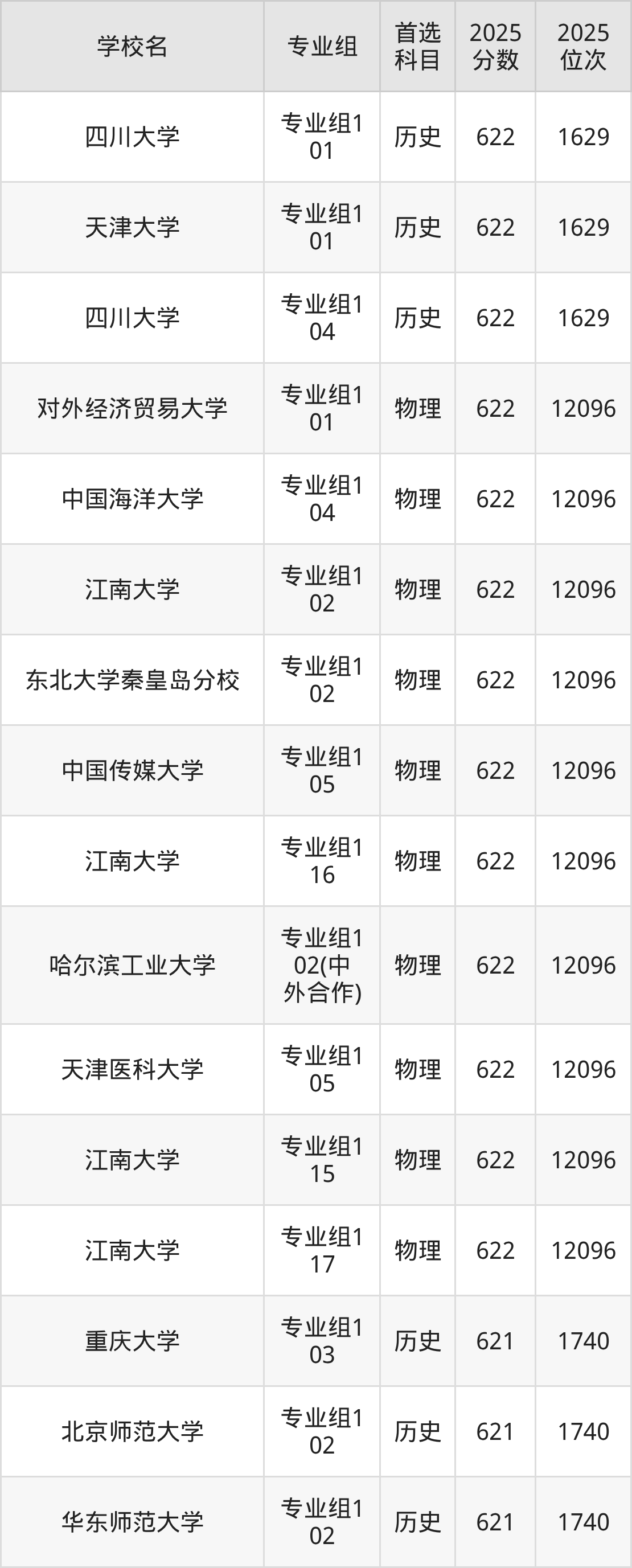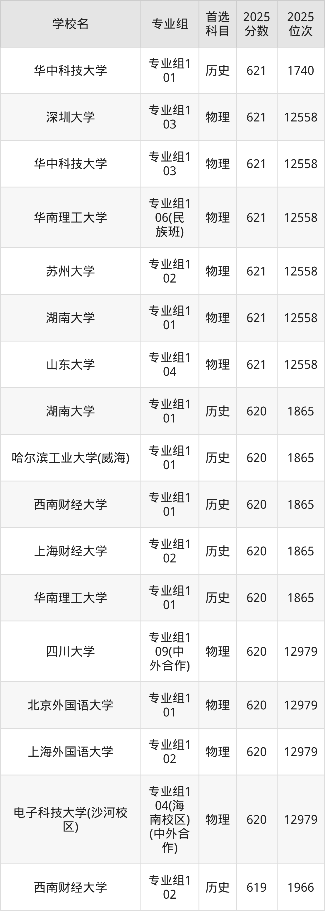 四川高考历史类620分对应的位次排名是1865名,物理类620分对应的位次排名是12979名,因此建议2026年位次排在这附近的同学考虑这些大学。