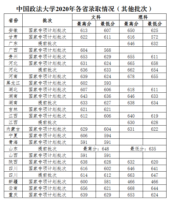 小编以中国政法大学为例,为大家整理出了2020年中国政法大学在全国的录取分数汇总,具体如下,供参考: