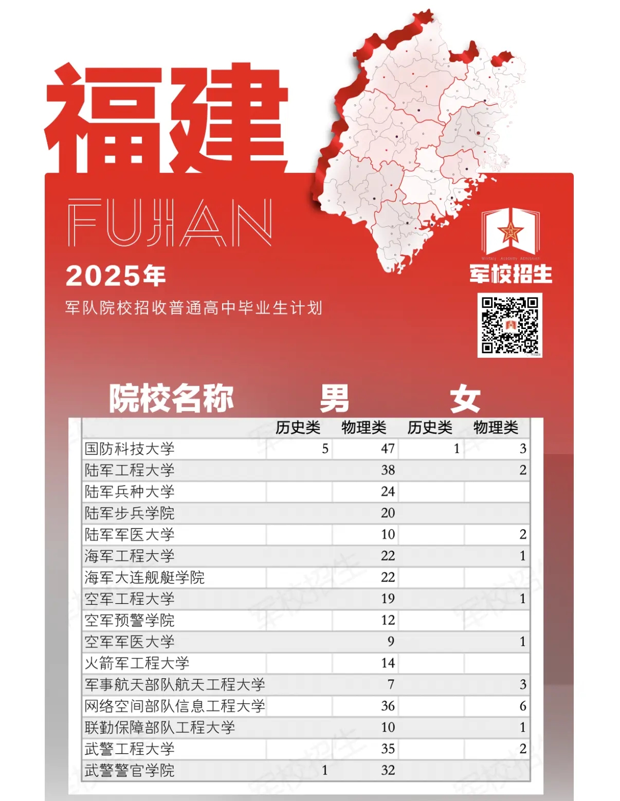 2025年在福建招生的16所军校名单如下: