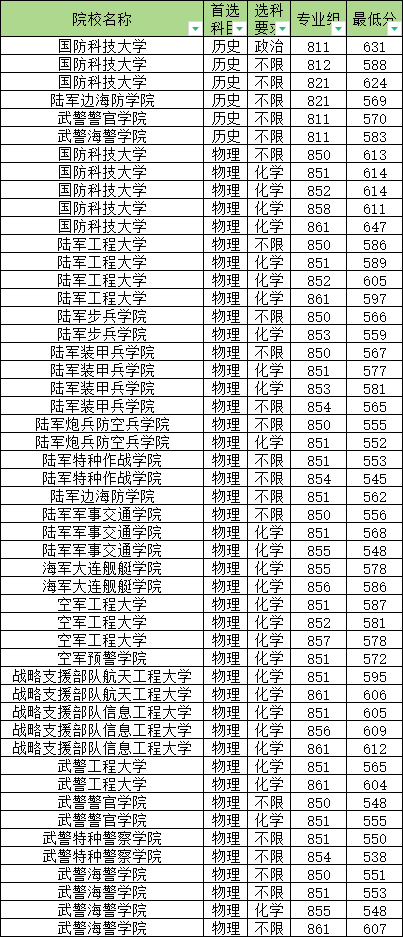 | 陆军工程大学 | 本科提前批 普通本科批 |