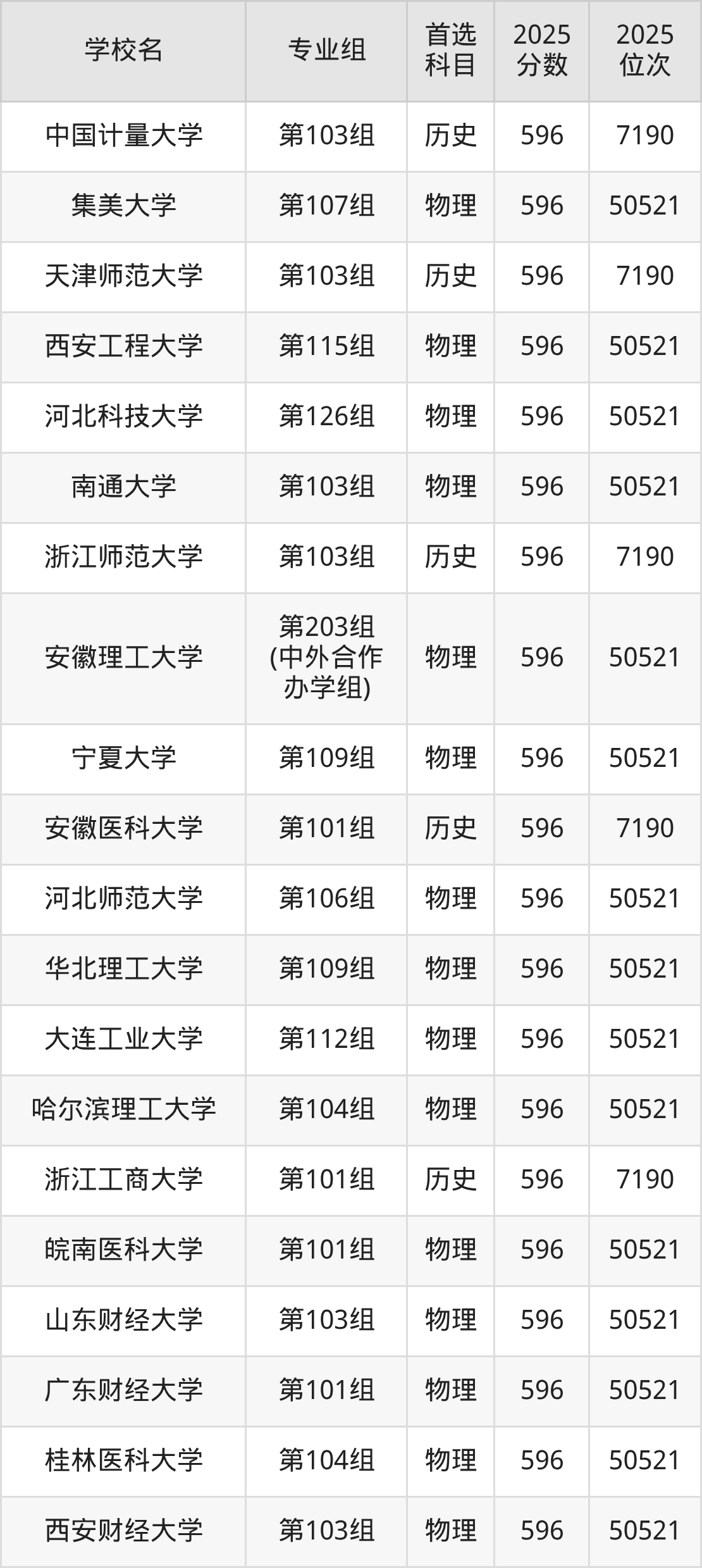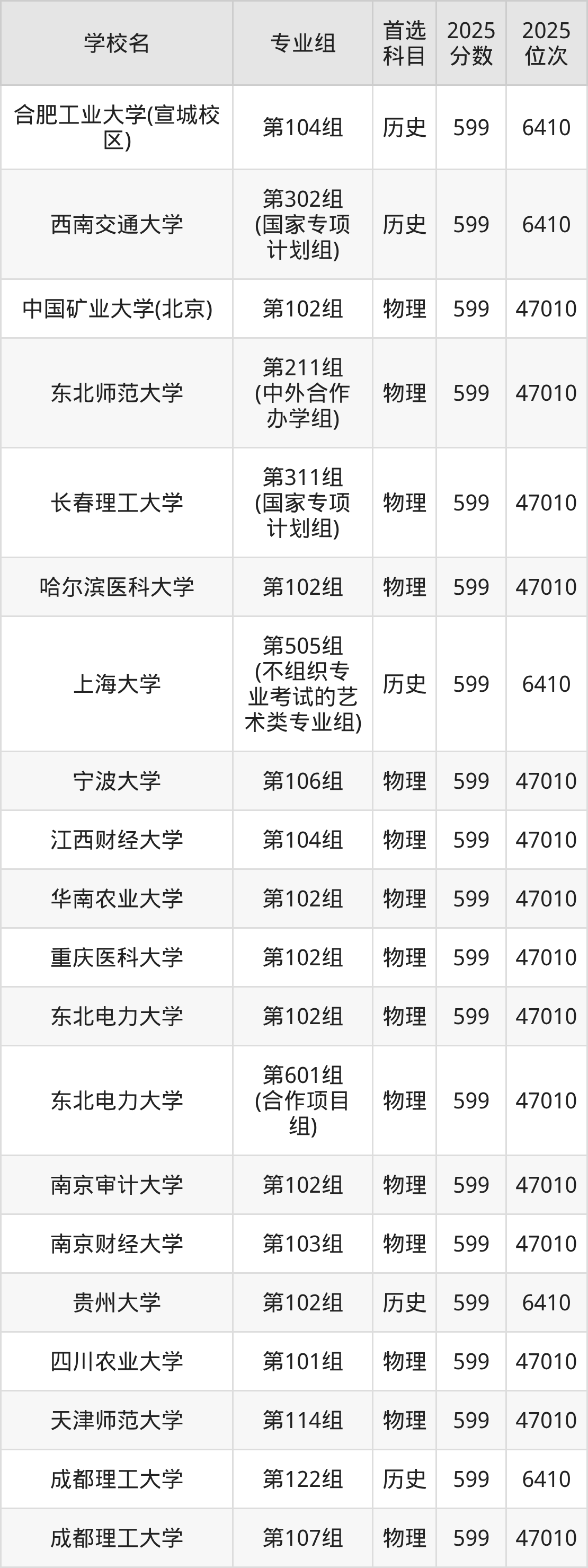 物理类597分可以冲的大学:中国矿业大学(北京)599分、东北师范大学599分、长春理工大学599分、哈尔滨医科大学599分等;较稳妥的大学:长安大学596分、北京工商大学596分、天津医科大学596分、燕山大学596分等。