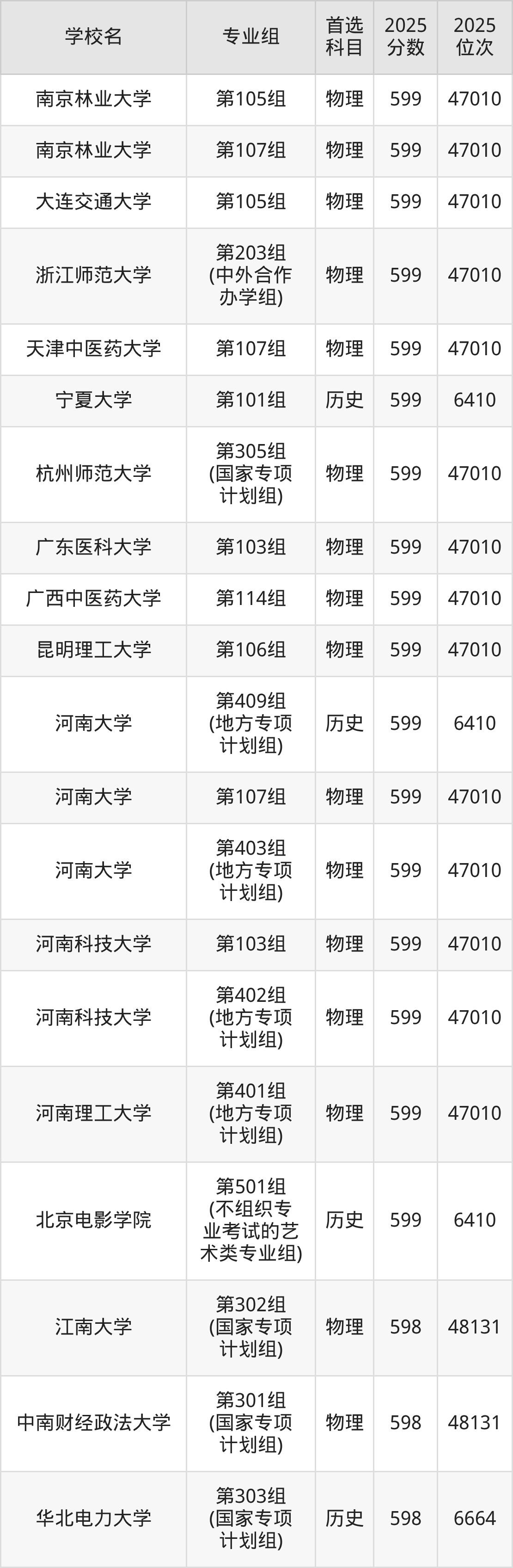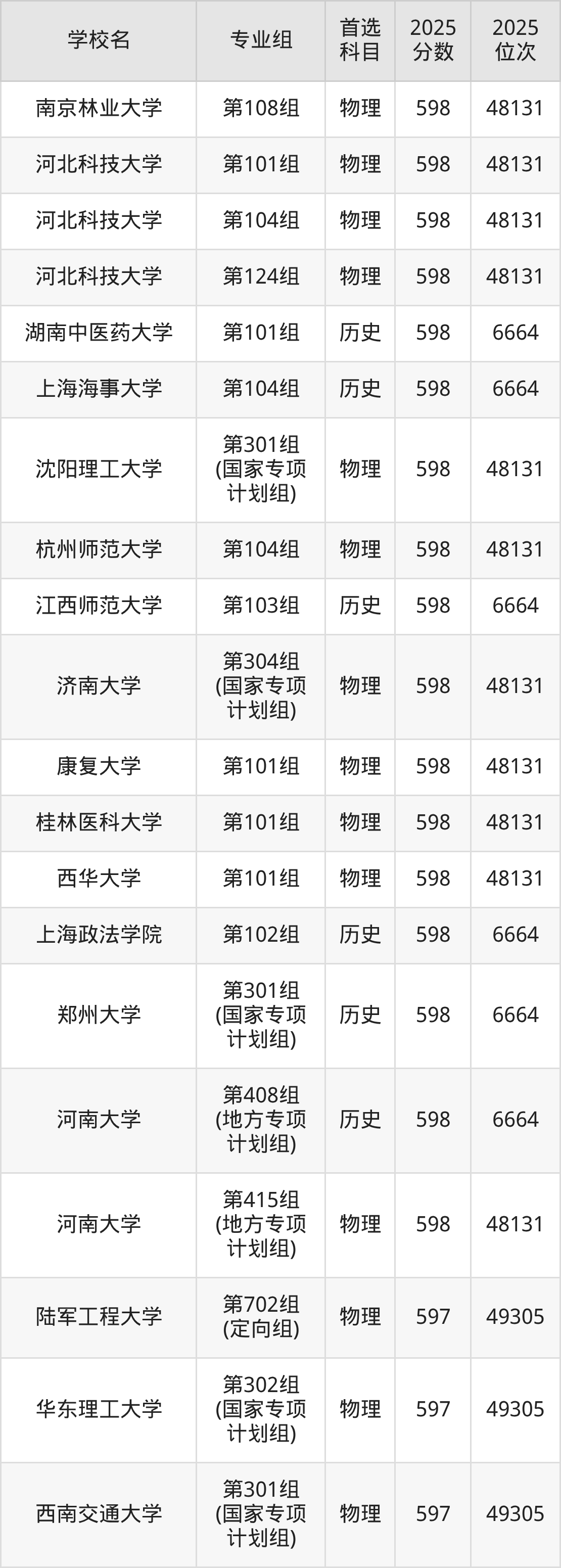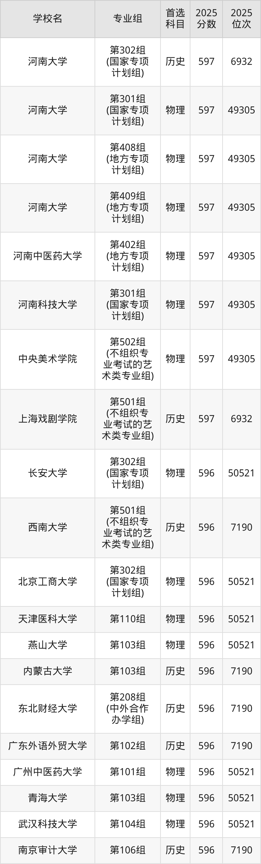 河南高考物理类597分对应的位次排名是49305名,历史类597分对应的位次排名是6932名,因此建议2026年位次排在这附近的同学考虑这些大学。