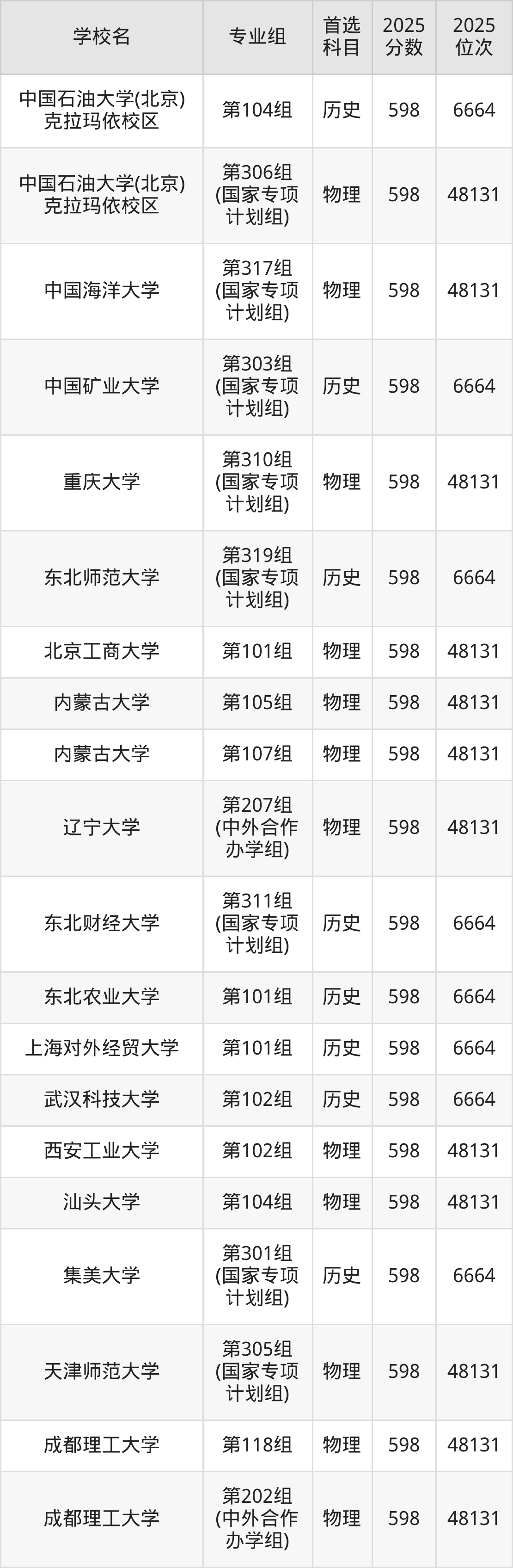下面老师将以上文整理的其中两个省份为例,为大家具体展示597分左右能上的本科大学名单。