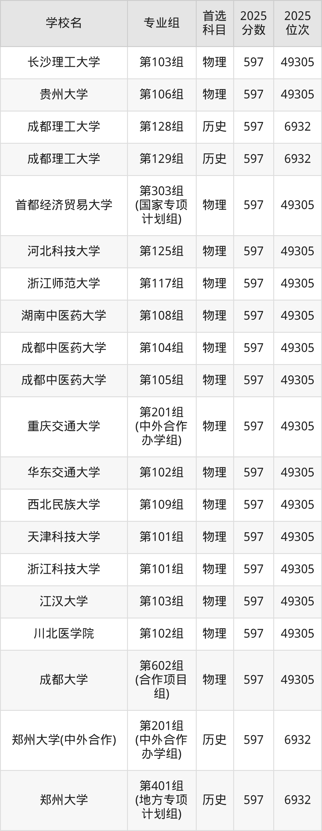 二、597分左右的本科大学排名