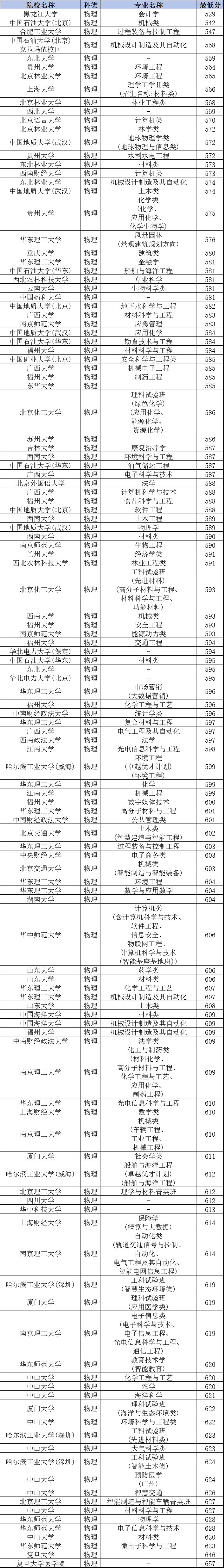 录取分数线最高的是复旦大学医学院,分数线为657分;录取分数线最低的是黑龙江大学会计学,分数线为529分。