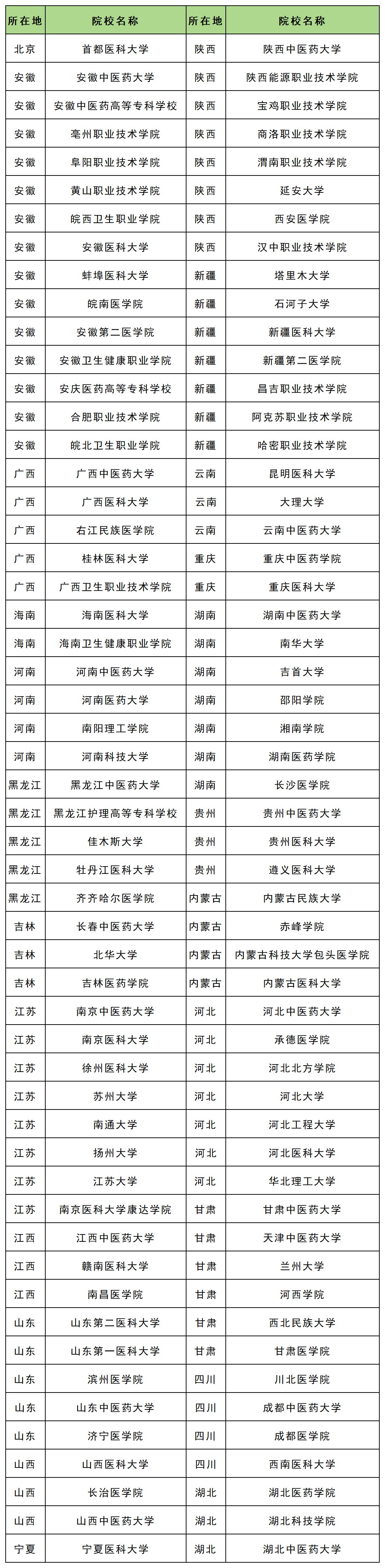 湖北省:湖北医药学院、湖北科技学院、湖北中医药大学。