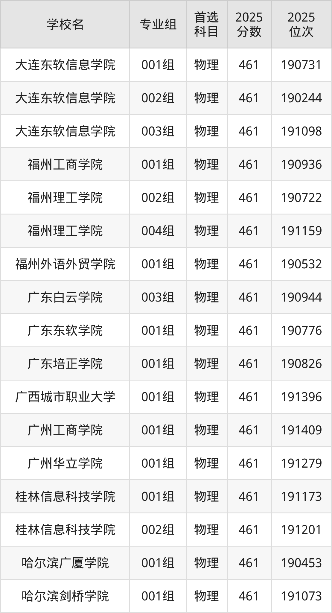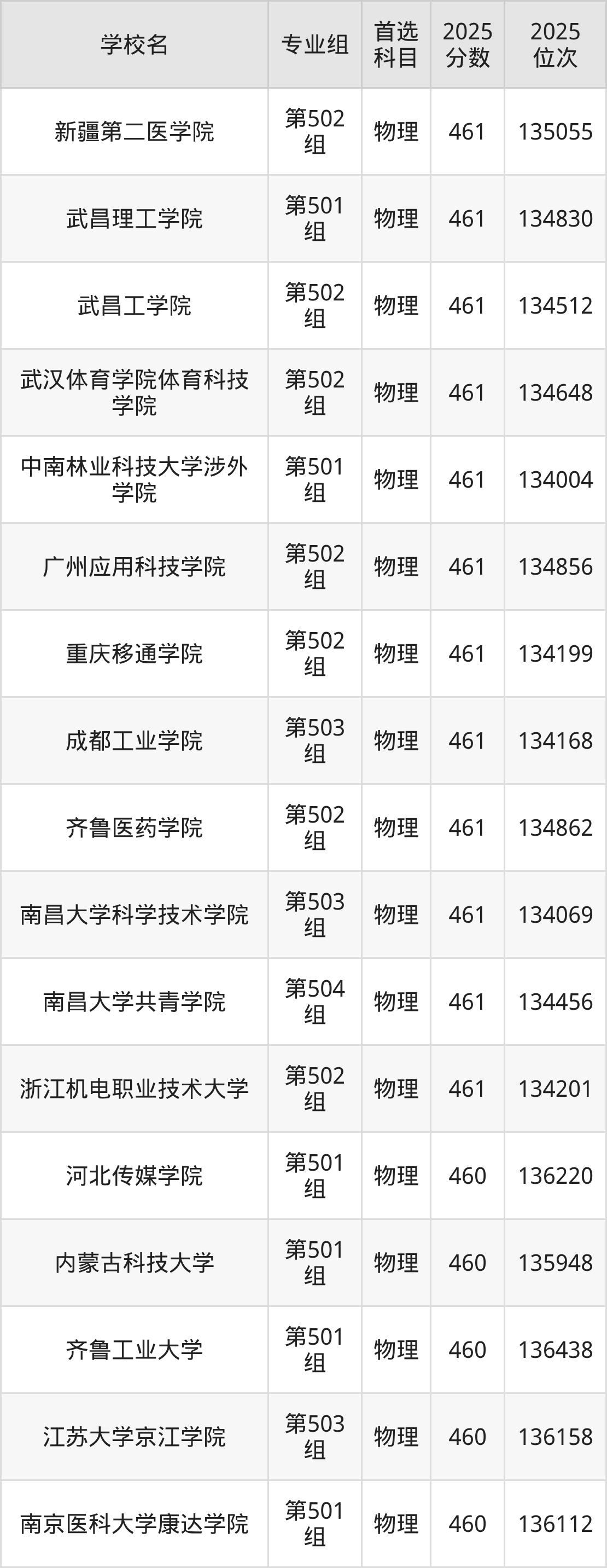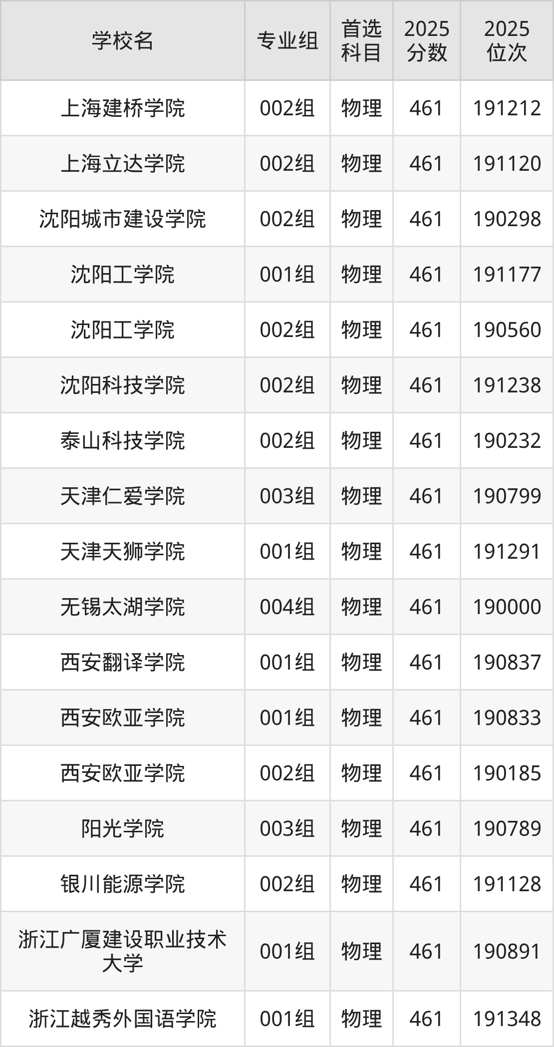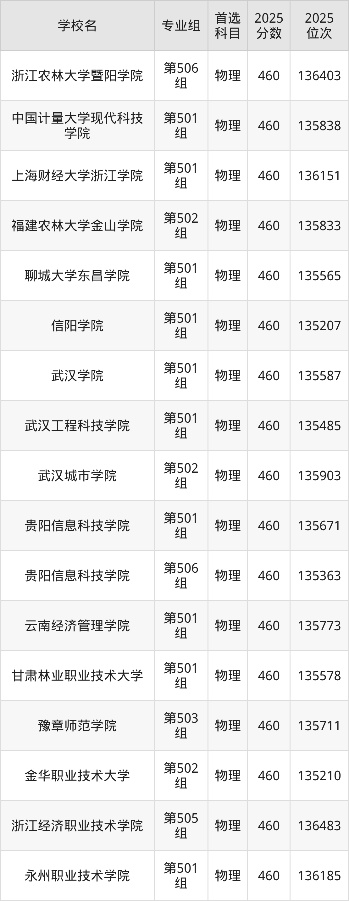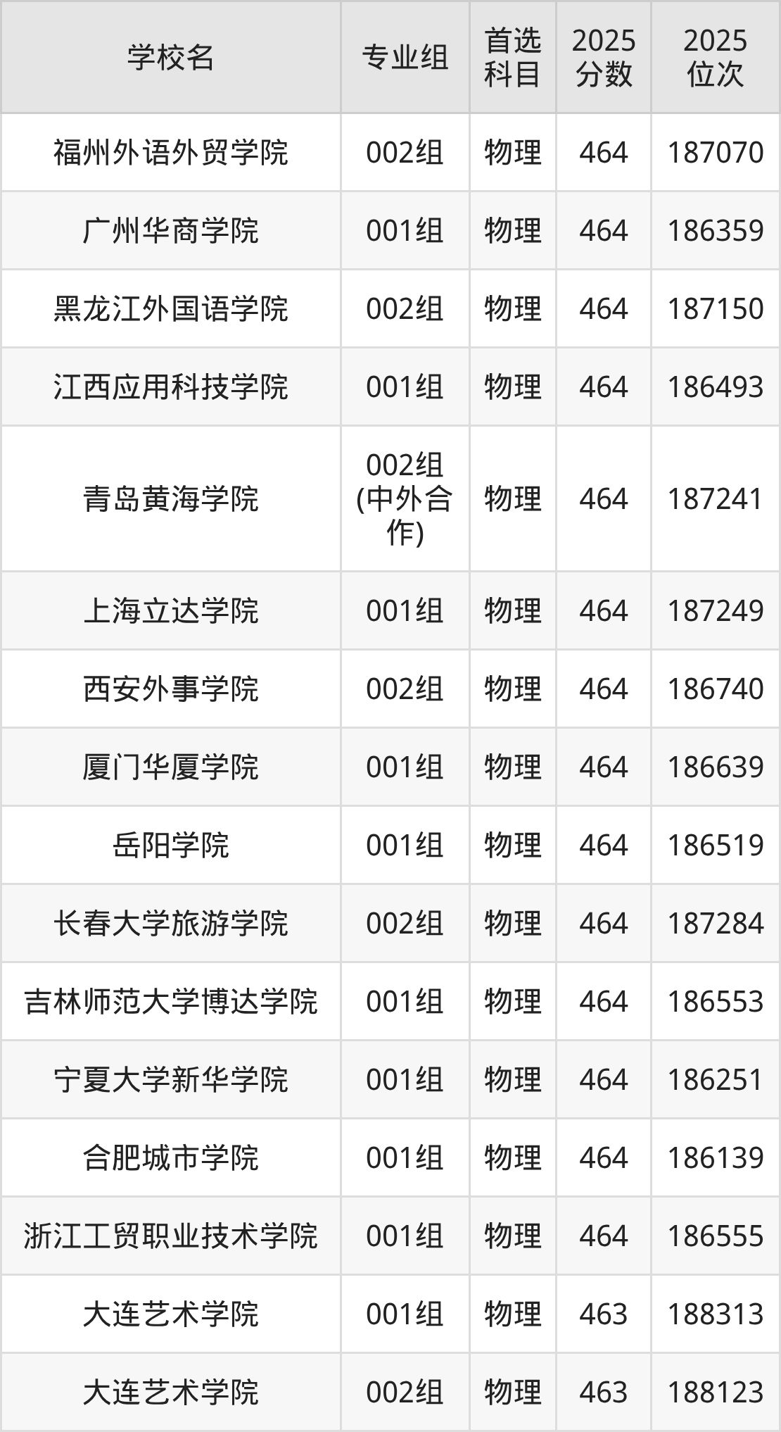 安徽物理类462分对应的位次排名是188682名-189974名,因此建议2026年位次排在这附近的考生考虑这些大学。