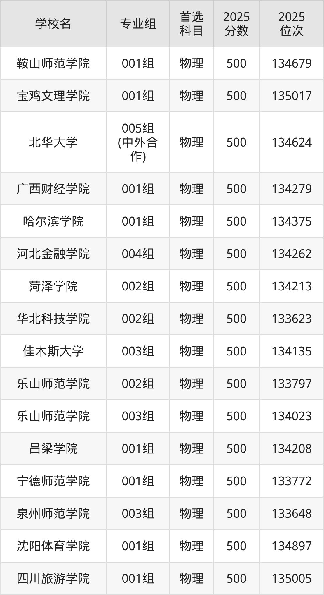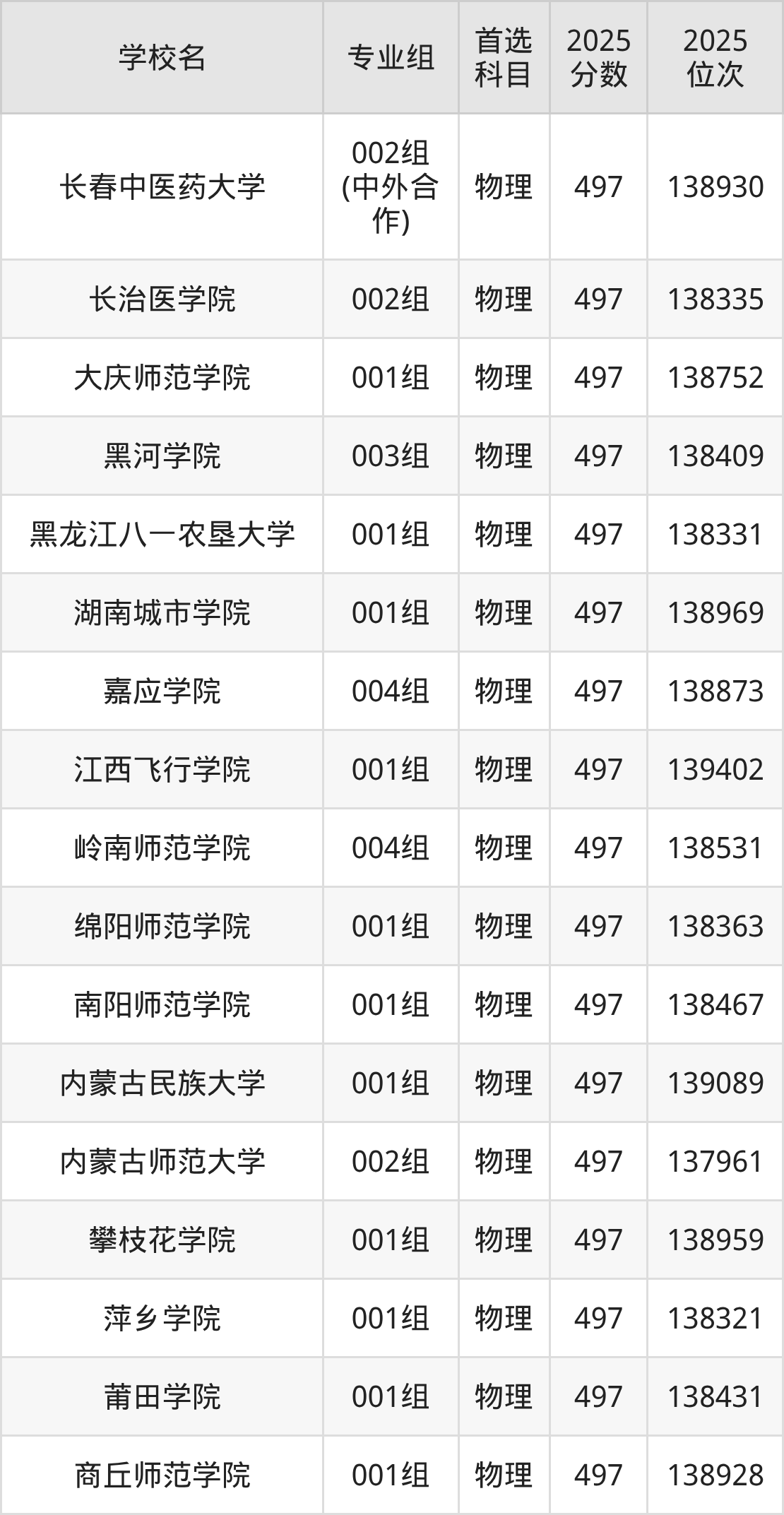 物理类498分可以冲的大学:鞍山师范学院500分、宝鸡文理学院500分、北华大学500分、广西财经学院500分等;较稳妥的大学:长春中医药大学497分、长治医学院497分、大庆师范学院497分、黑河学院497分等。