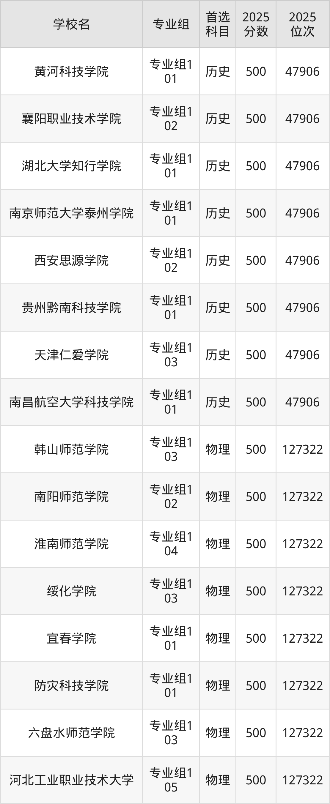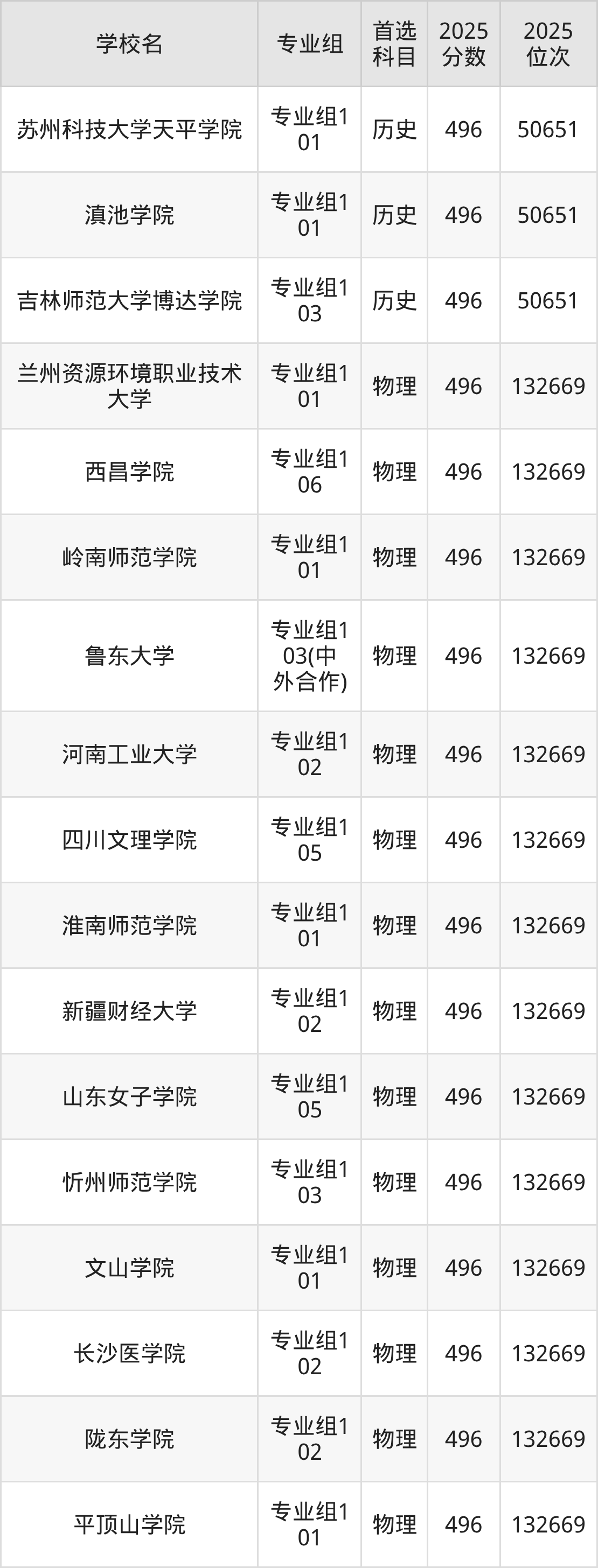 下面老师将以上文整理的其中两个省份为例,为大家具体展示498分左右能上的本科大学名单。