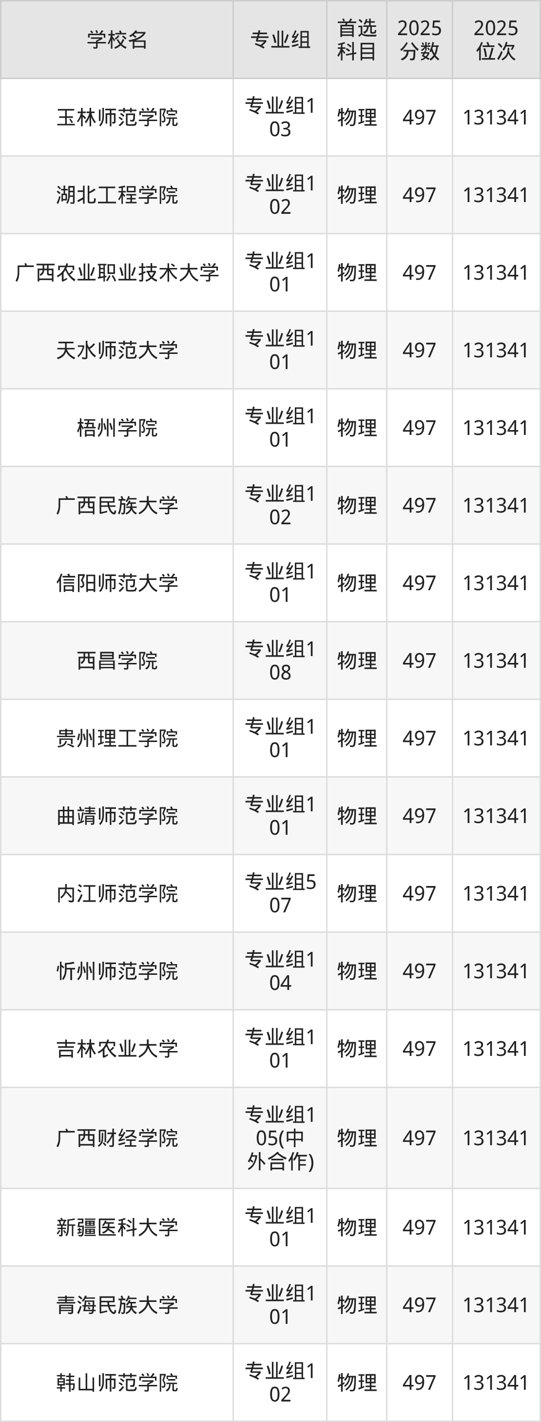 物理类498分可以冲的大学:韩山师范学院500分、南阳师范学院500分、淮南师范学院500分、绥化学院500分等;较稳妥的大学:贵州医科大学神奇民族医药学院497分、河南工程学院497分、琼台师范学院497分、玉林师范学院497分等。