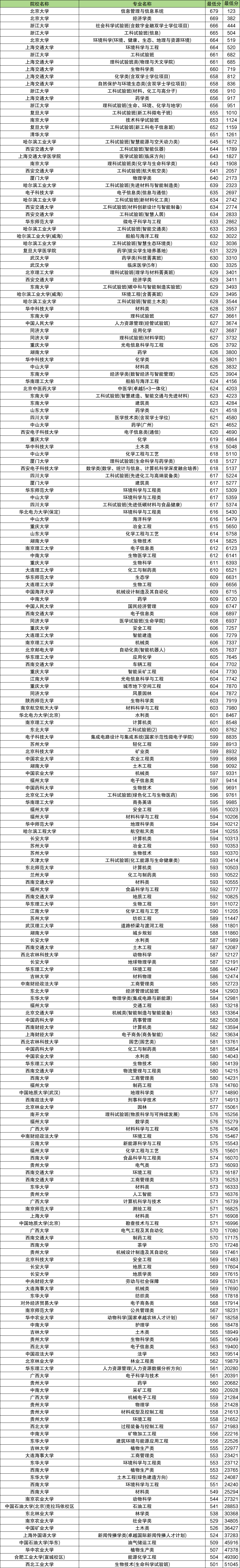 分数要求最低的是西北工业大学的生物技术(生命科学试验班)专业,对应的录取线是501分。此外分数在520分以下的招生院校还有3个,分别是中国石油大学(华东)509分、华中农业大学507分、合肥工业大学(宣城校区)504分。