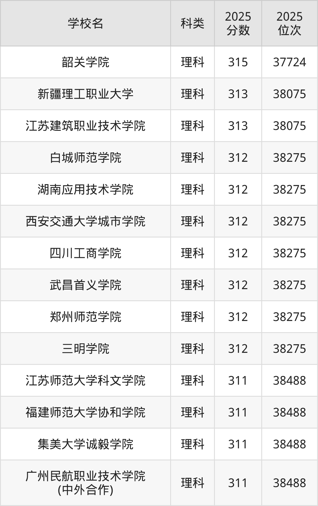 新疆理科313分对应的位次排名是38075名,因此建议2026年位次排在这附近的考生考虑这些大学。