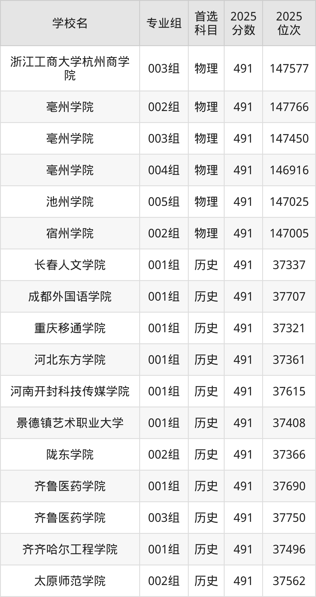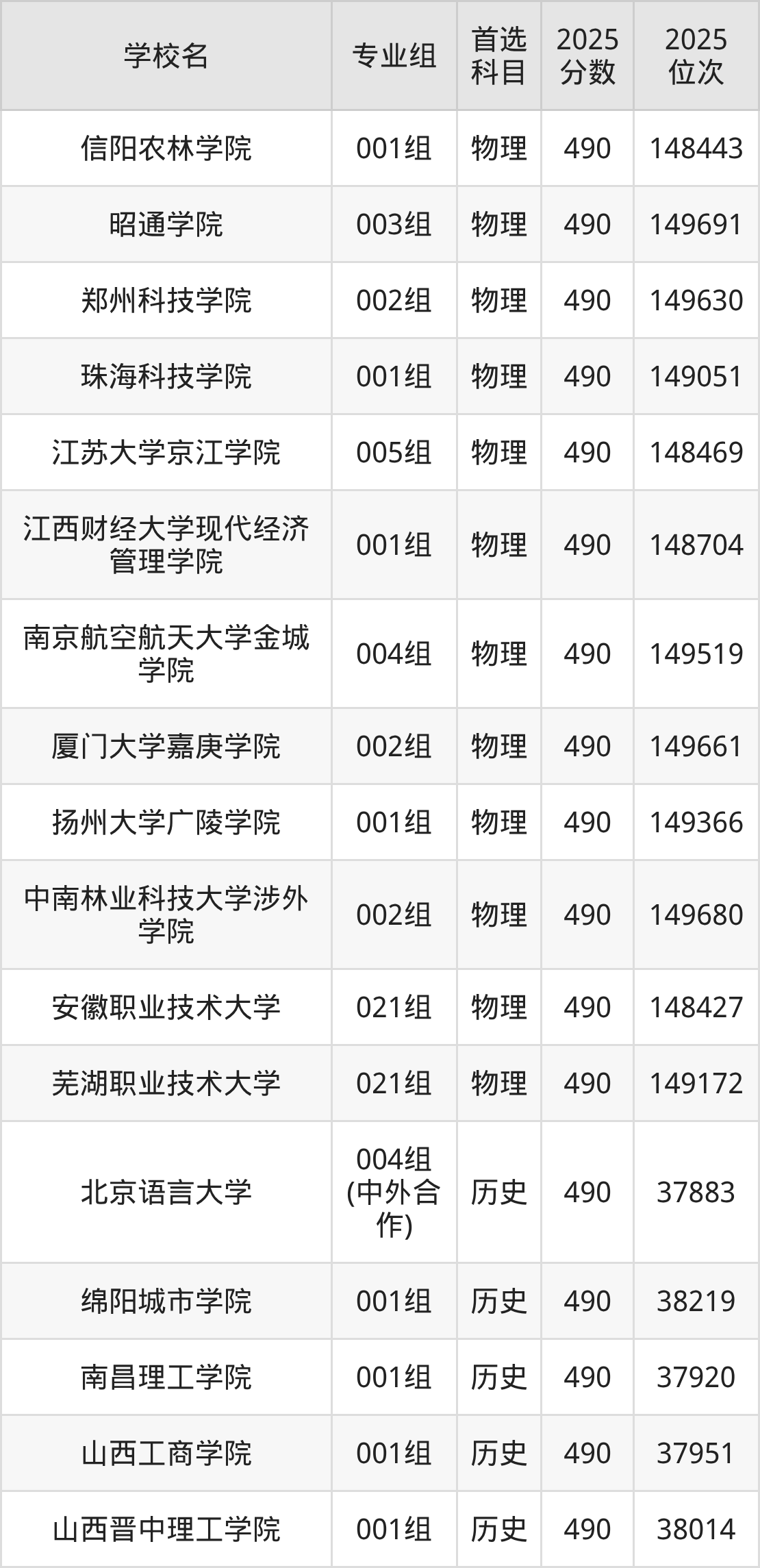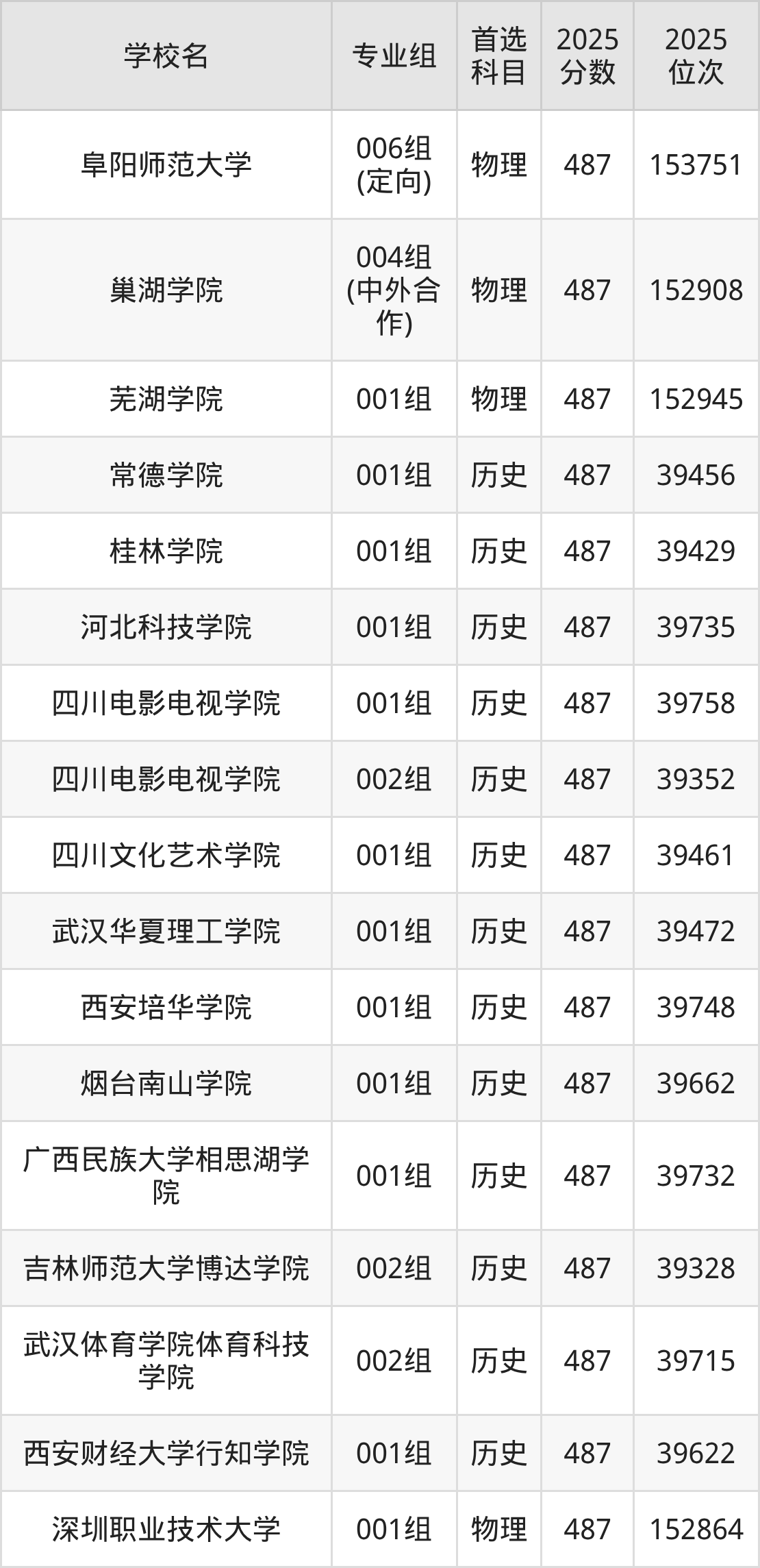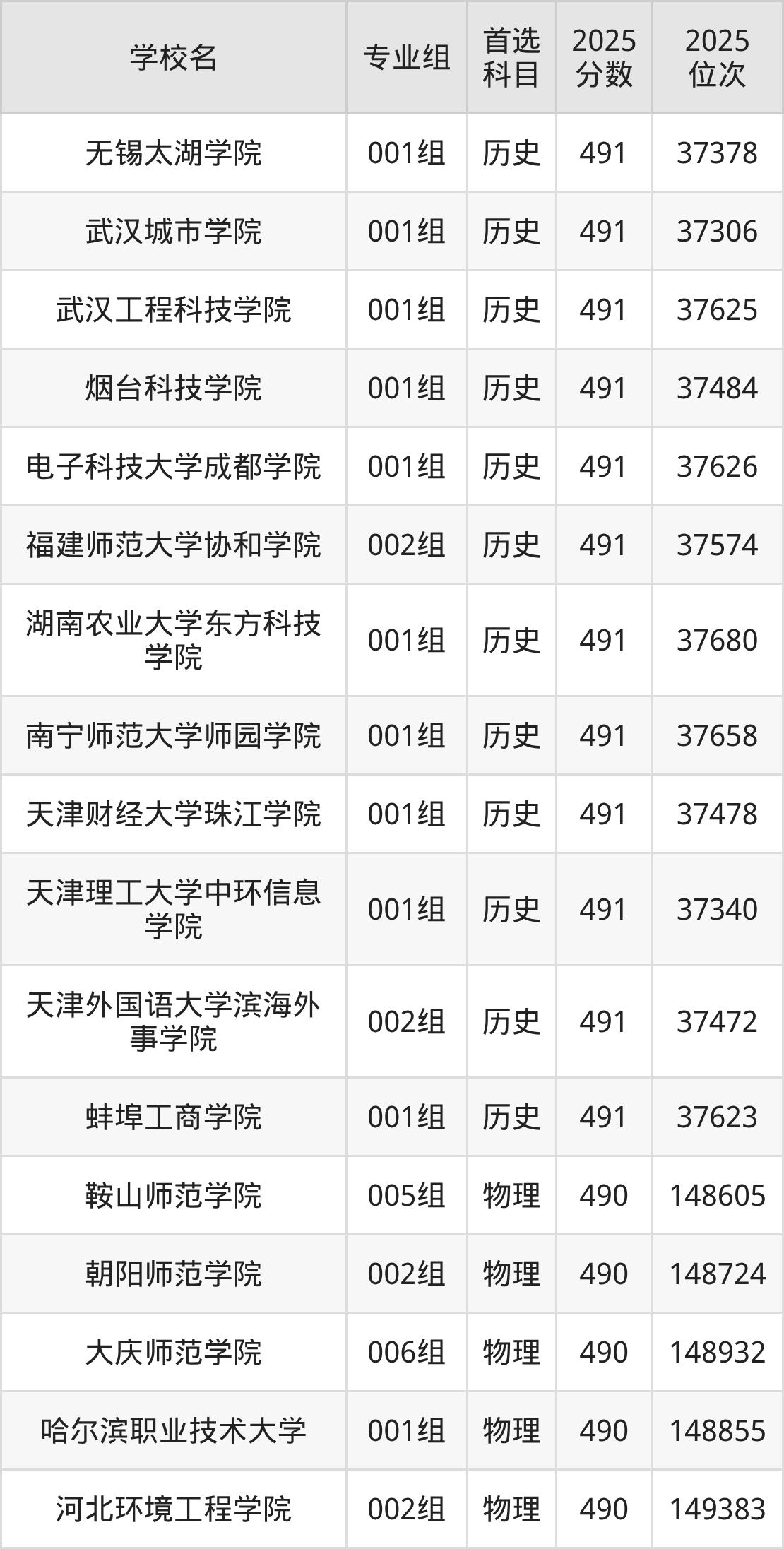 安徽高考历史类489分对应的位次排名是38288名-38721名,物理类489分对应的位次排名是149838名-151355名,因此建议2026年位次排在这附近的同学考虑这些大学。
