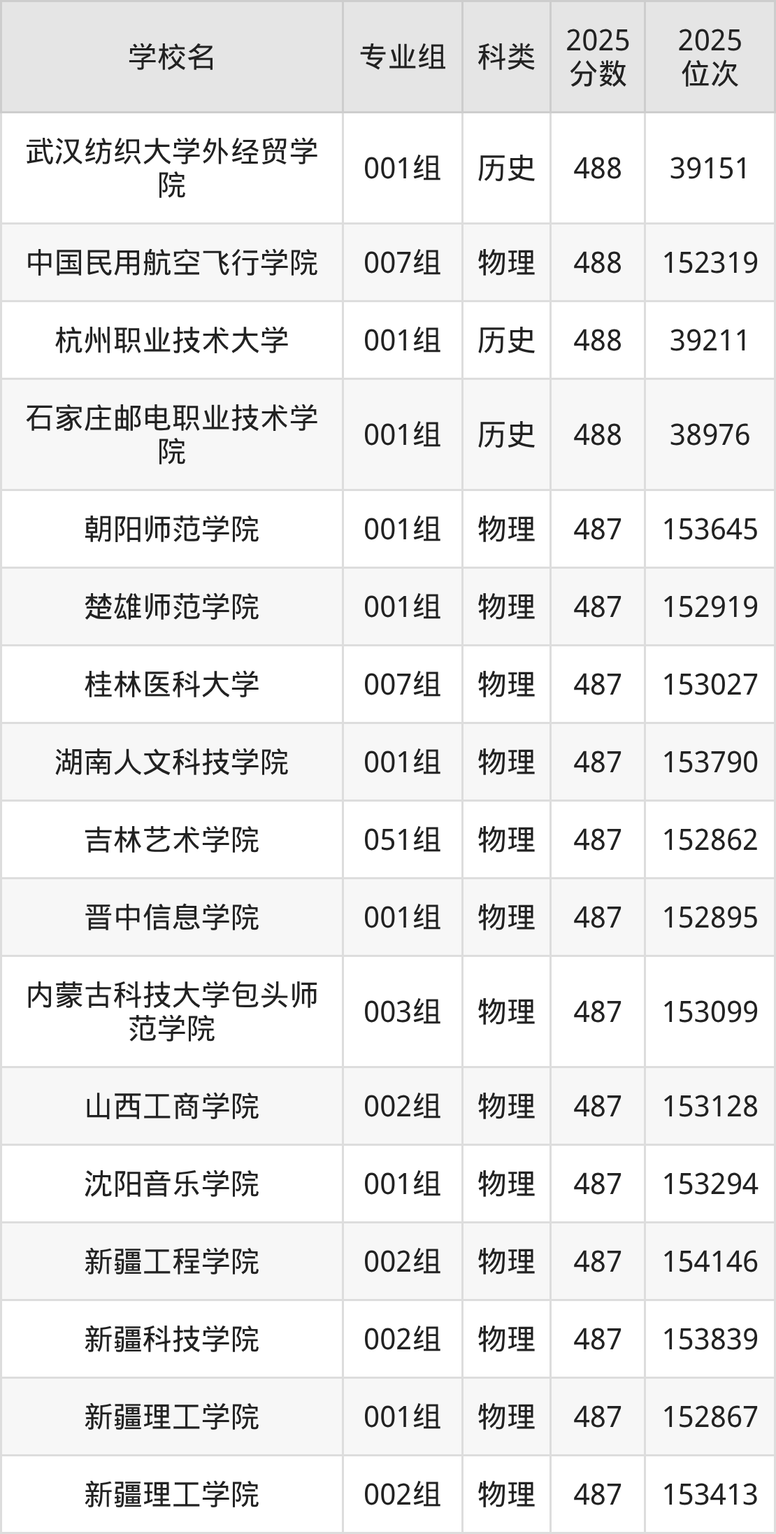 下面老师将以上文整理的其中两个省份为例,为大家具体展示489分左右能上的本科大学名单。