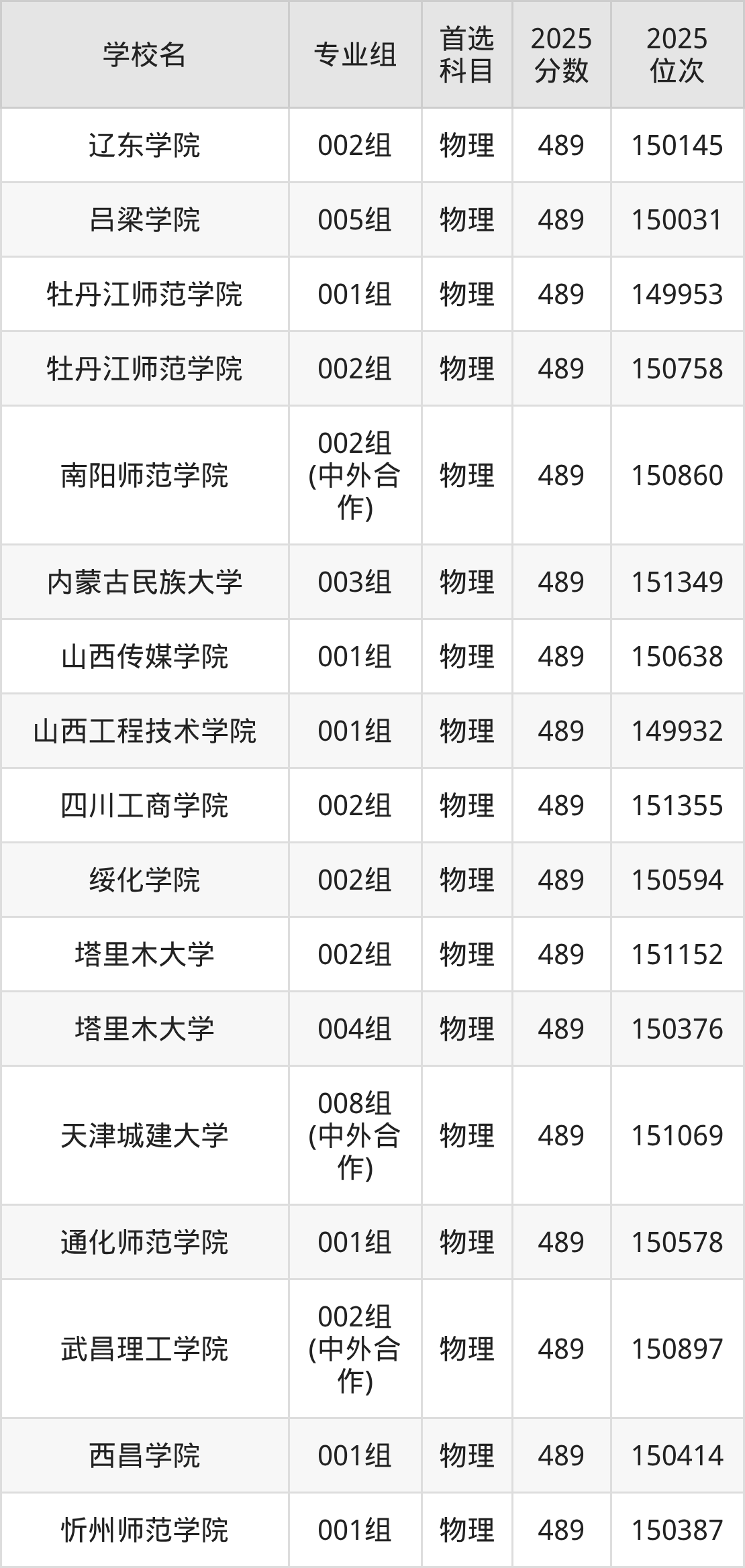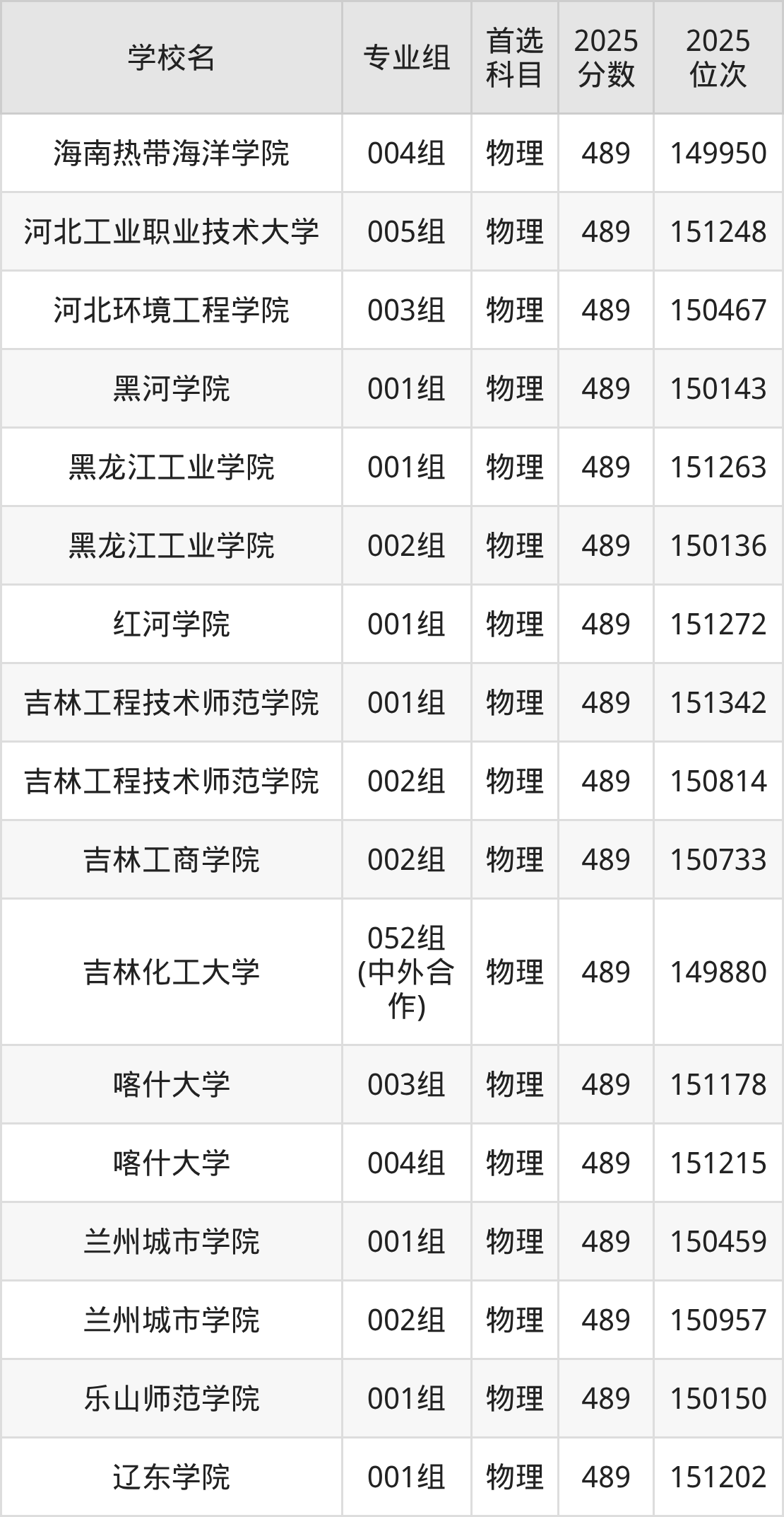 物理类489分可以冲的大学:赤峰学院491分、重庆工程学院491分、重庆移通学院491分、大庆师范学院491分等;较稳妥的大学:昌吉学院488分、长春汽车职业技术大学488分、长春职业技术大学488分、大庆师范学院488分等。