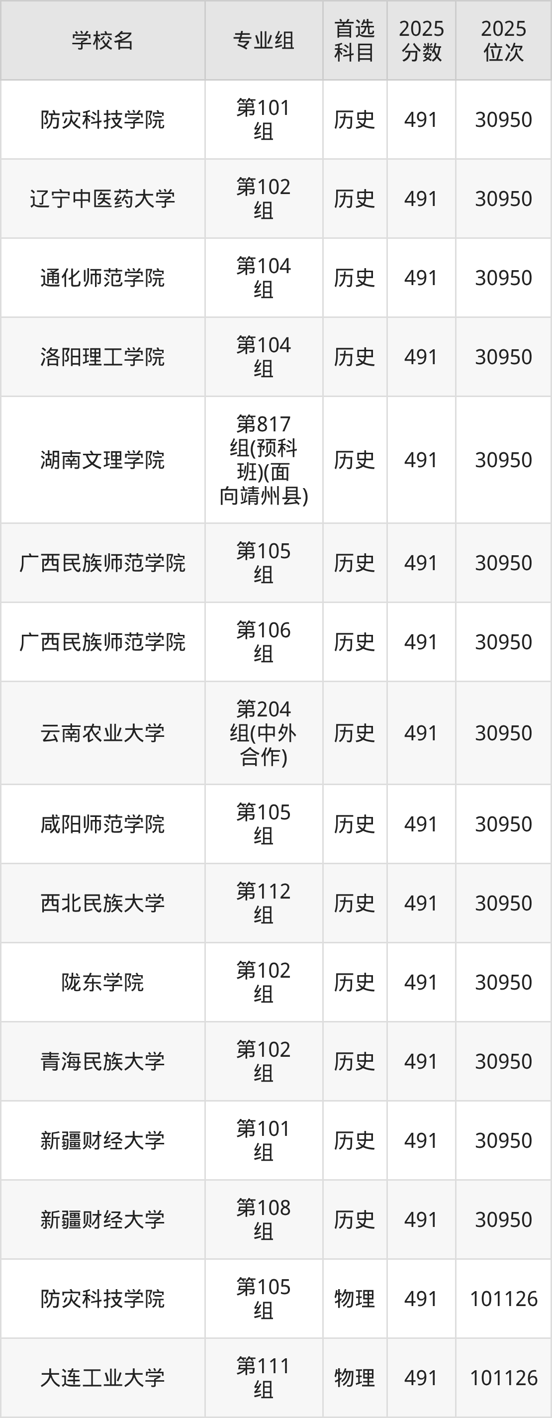 历史类489分可以冲的大学:防灾科技学院491分、辽宁中医药大学491分、通化师范学院491分、洛阳理工学院491分等;较稳妥的大学:石家庄学院488分、忻州师范学院488分、长治学院488分、鞍山师范学院488分等。
