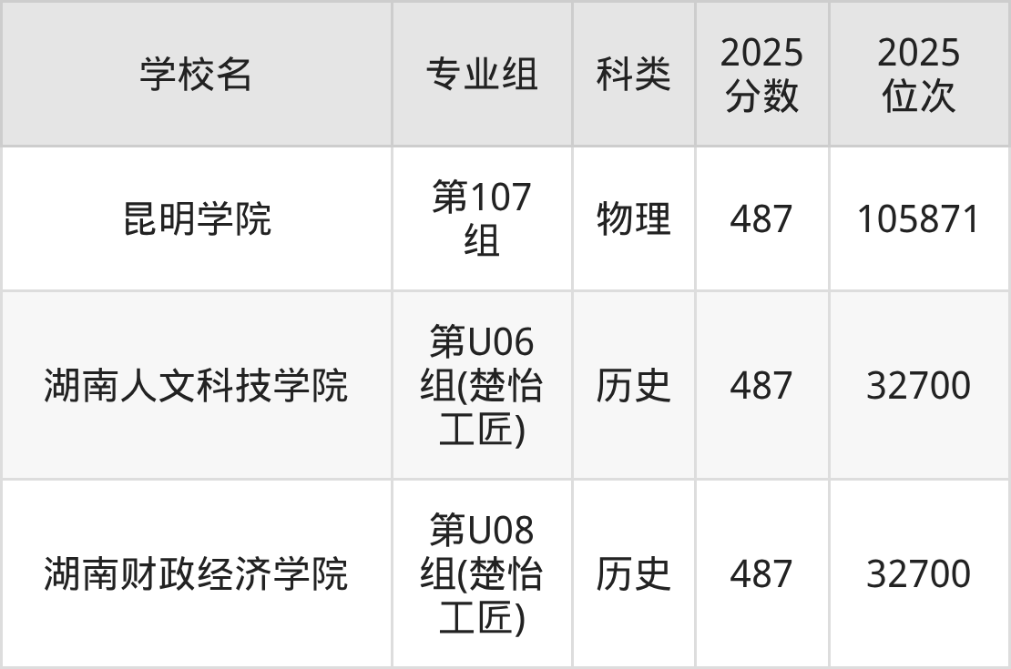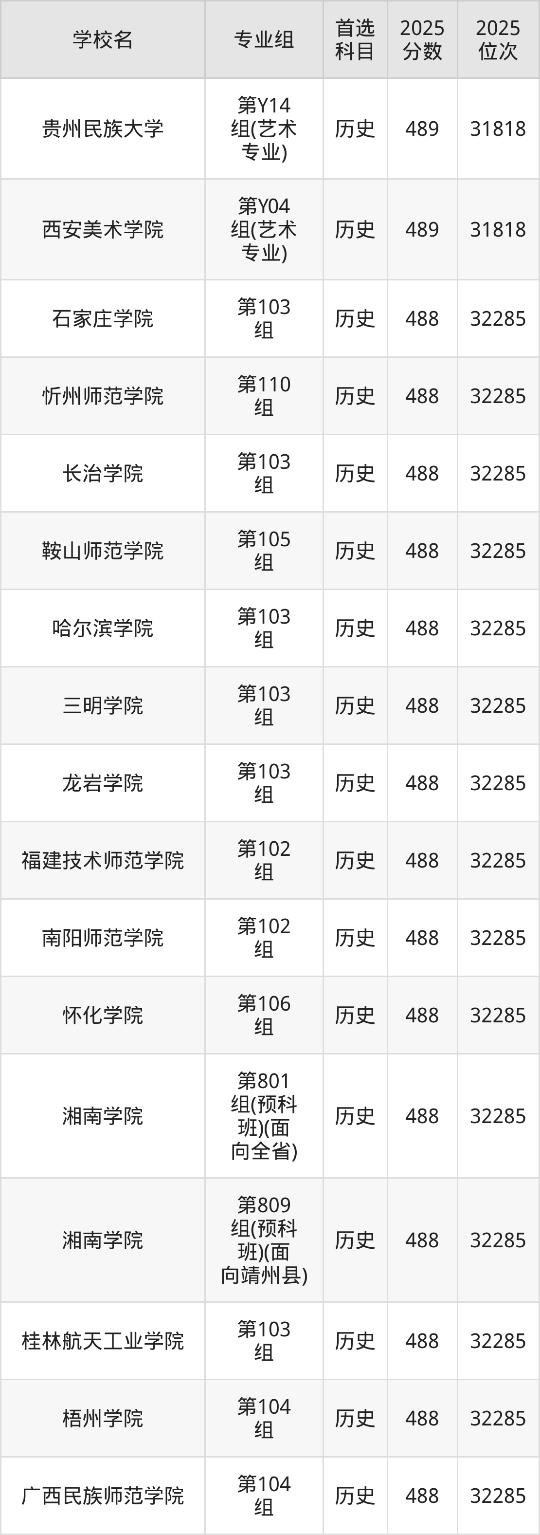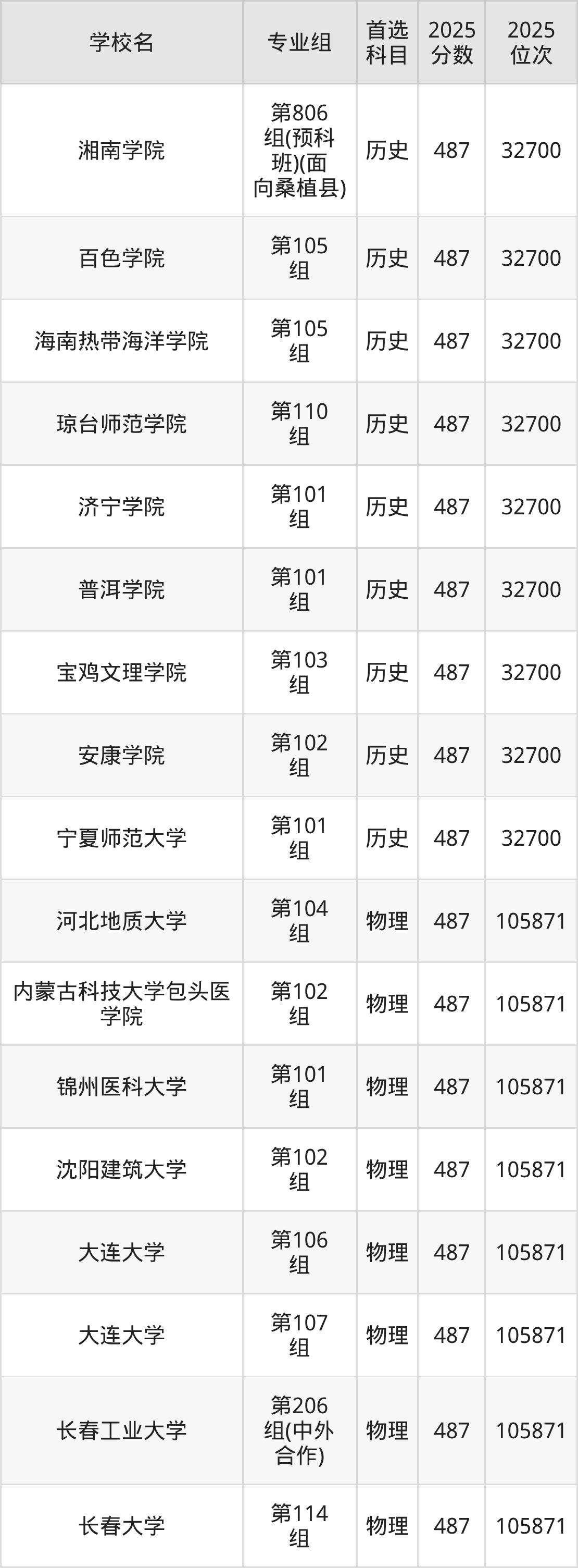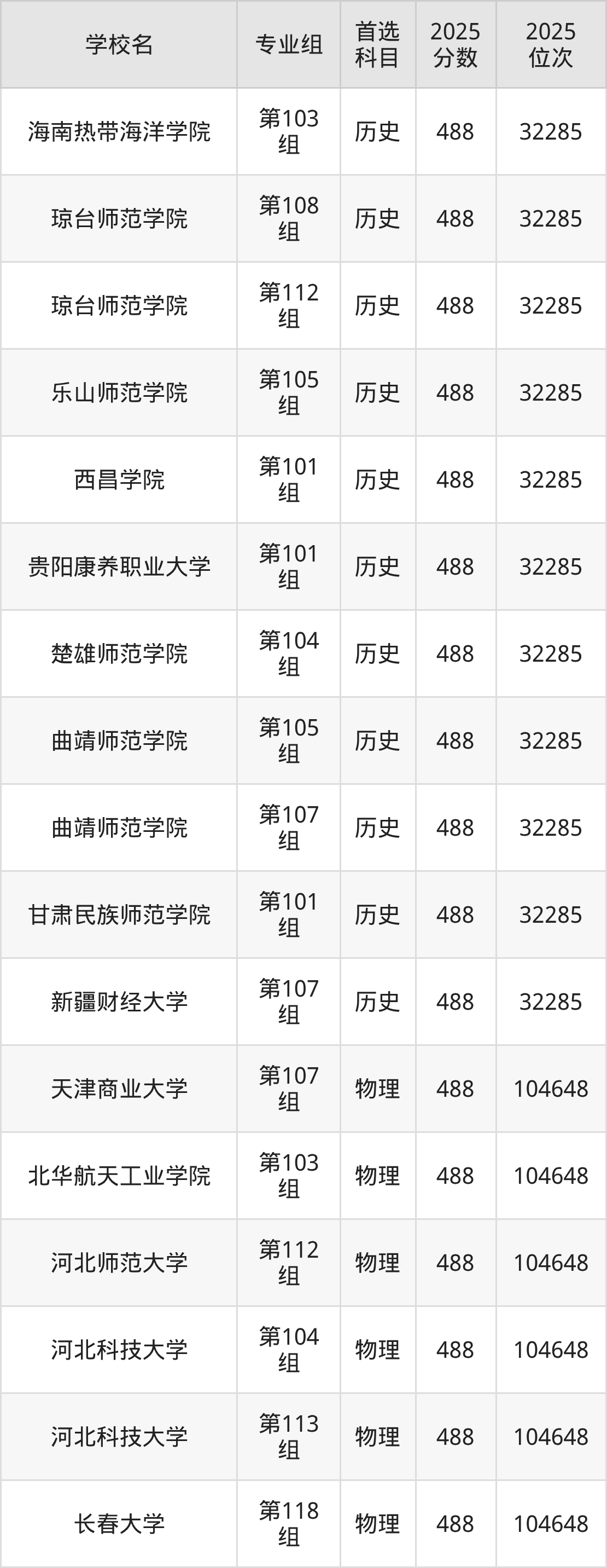 湖南高考物理类489分对应的位次排名是103409名,历史类489分对应的位次排名是31818名,因此建议2026年位次排在这附近的同学考虑这些大学。