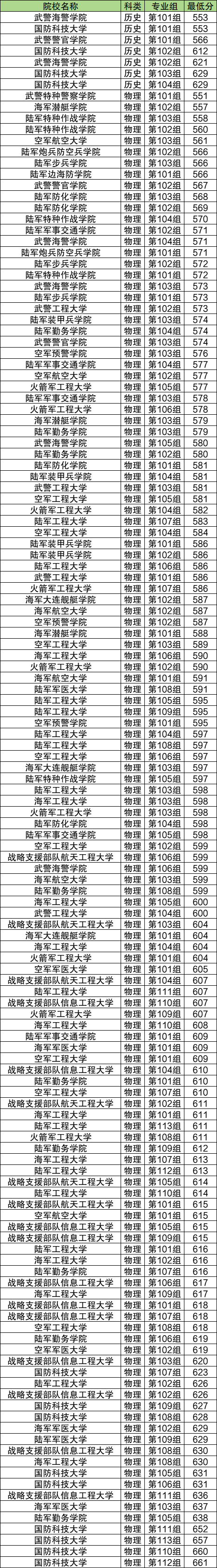 因为在提前批招生院校较多,受到篇幅限制,本文就以军校、警校和定向士官为例,整理出这三类院校在湖南提前批的录取分数线。