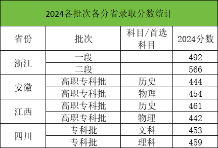 2024年宁波职业技术学院专科批招生,各省最低录取分数线如下: