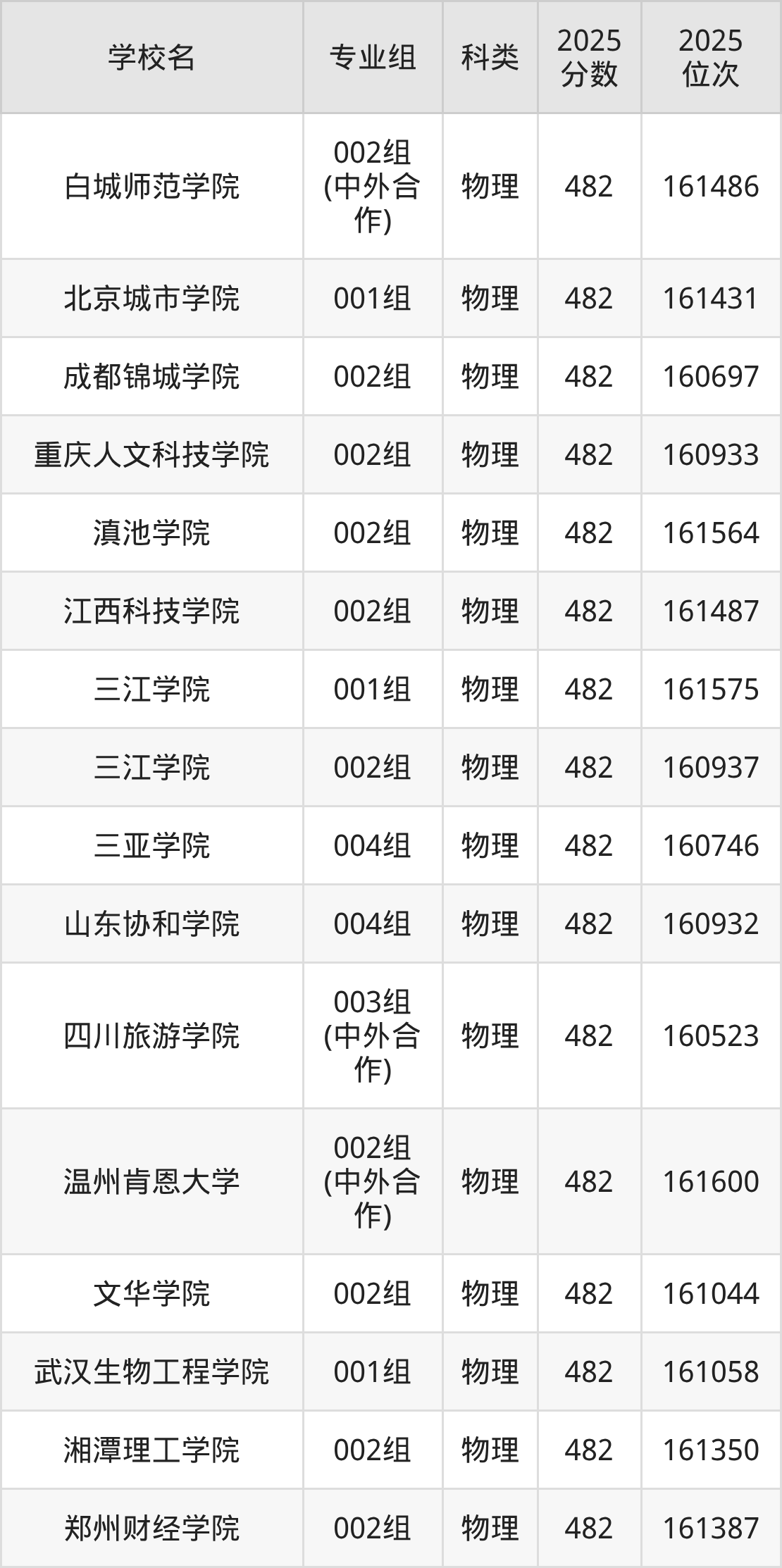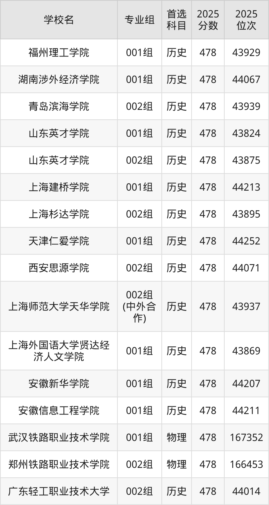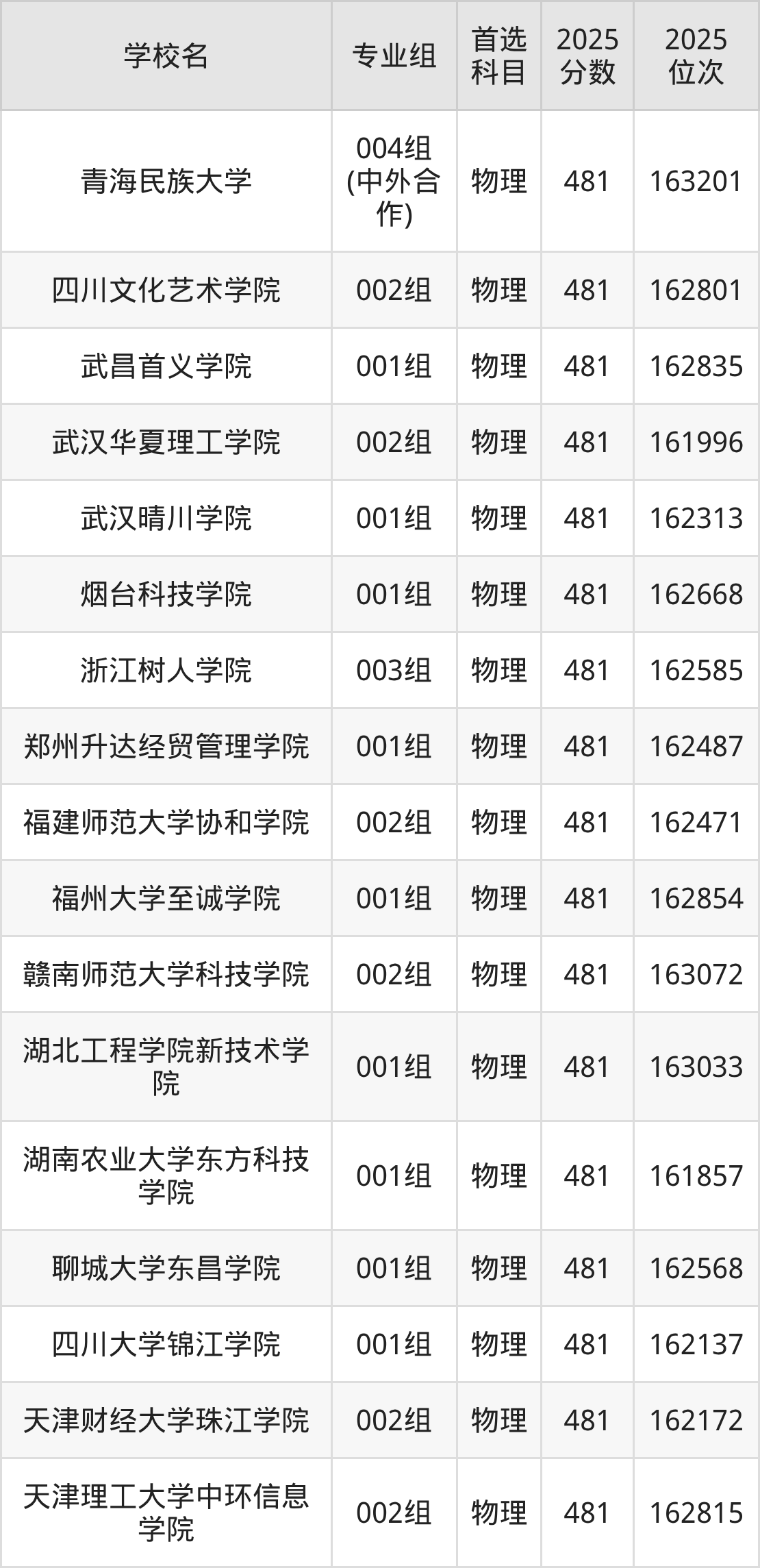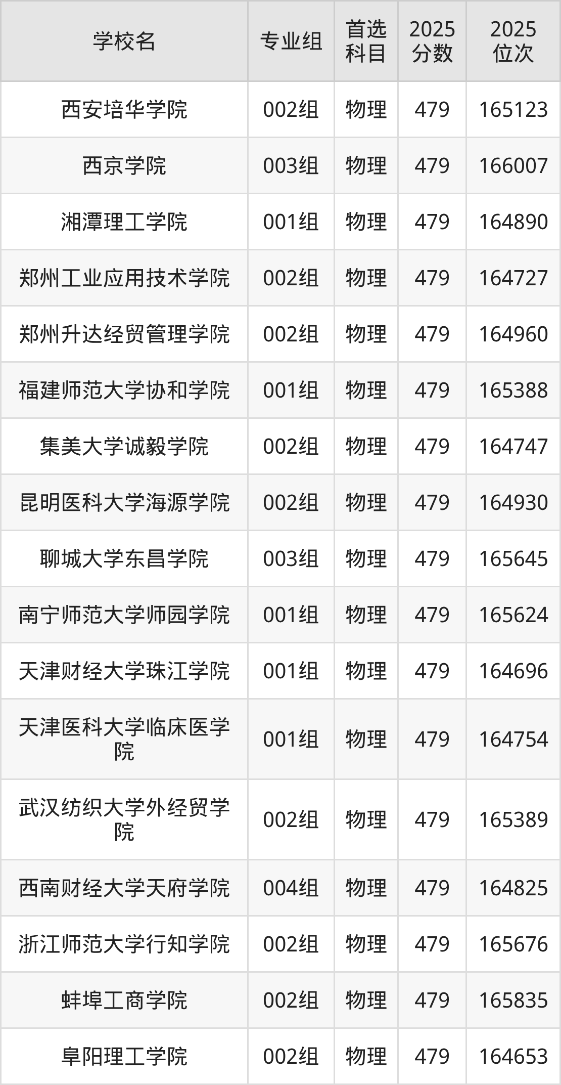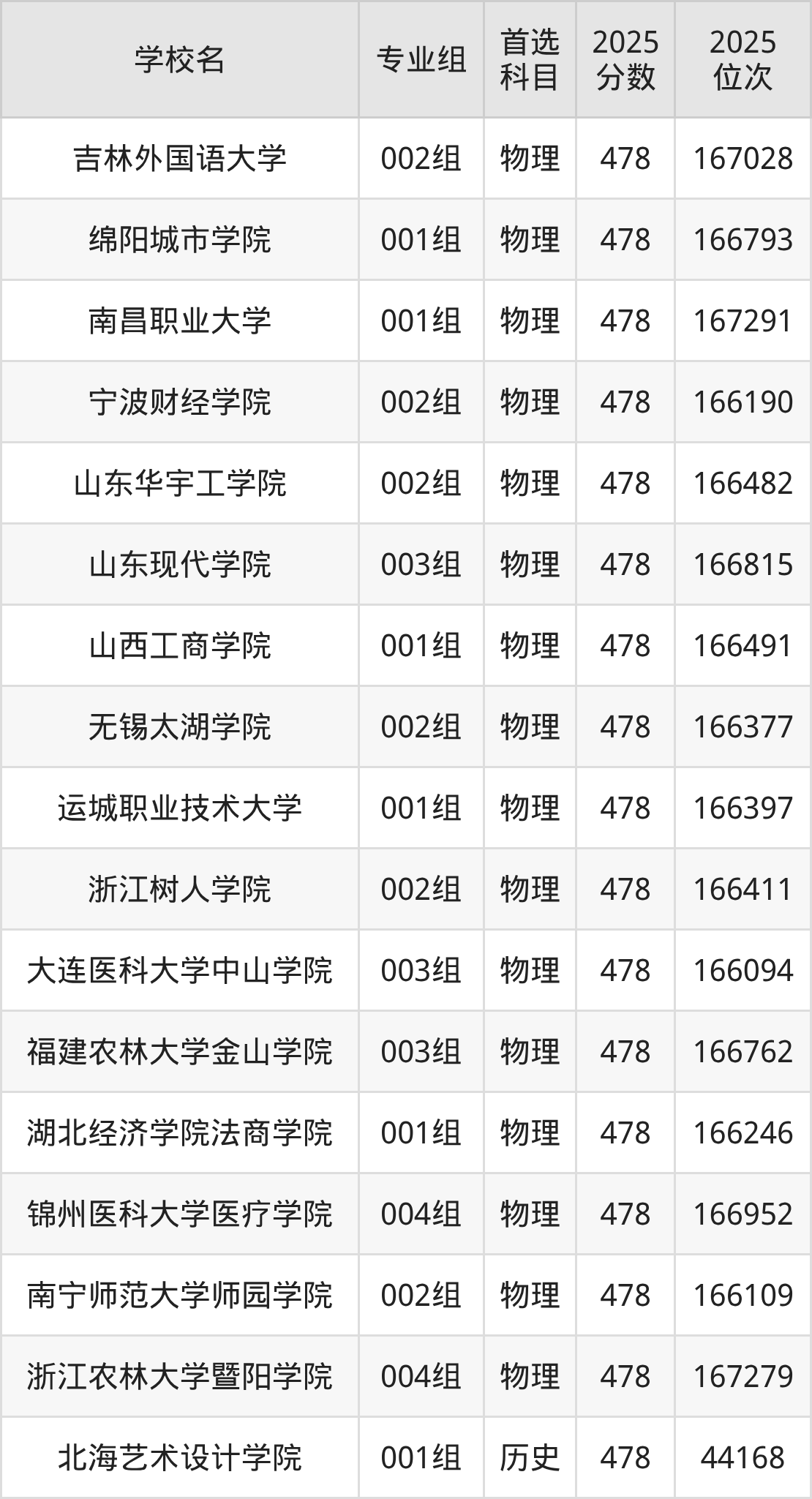 安徽高考物理类480分对应的位次排名是163245名-164595名,历史类480分对应的位次排名是42834名-43216名,因此建议2026年位次排在这附近的同学考虑这些大学。