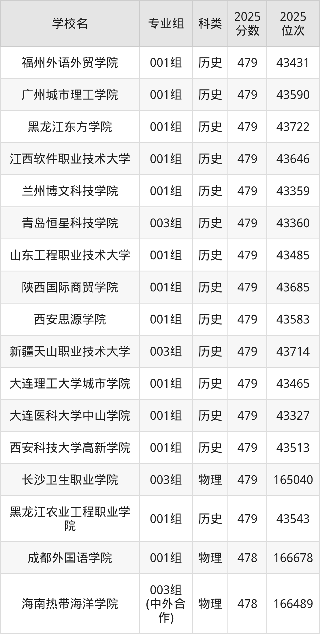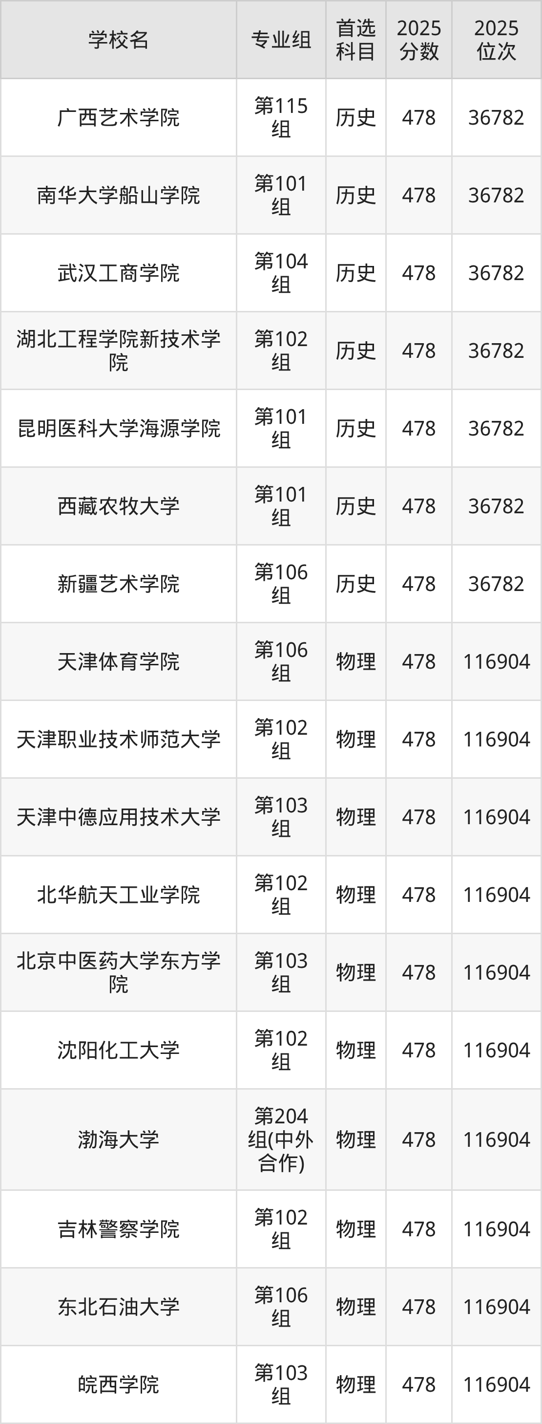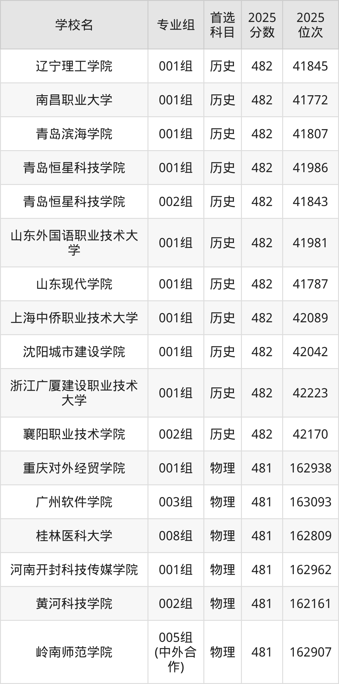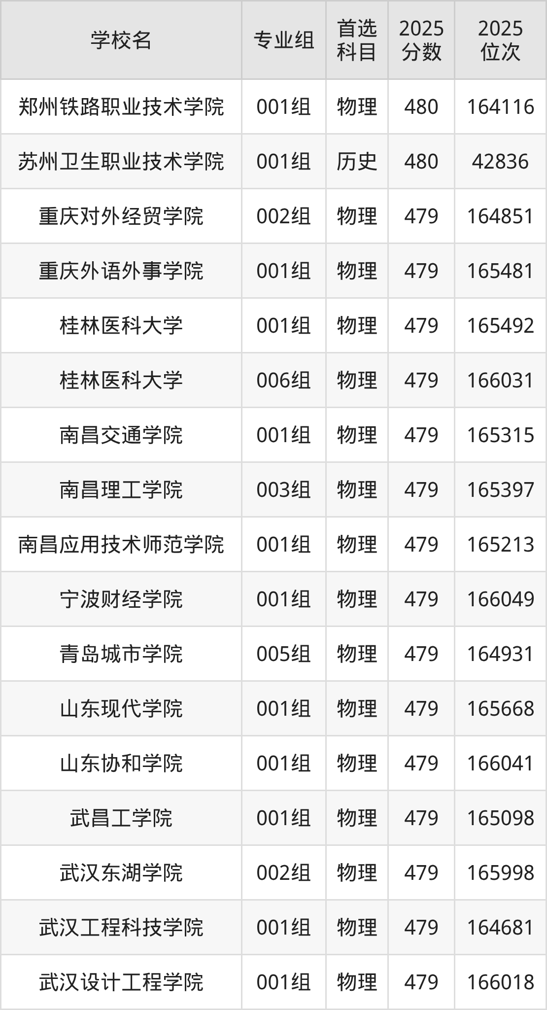 安徽高考物理类480分对应的位次排名是163245名-164595名,历史类480分对应的位次排名是42834名-43216名,因此建议2026年位次排在这附近的同学考虑这些大学。