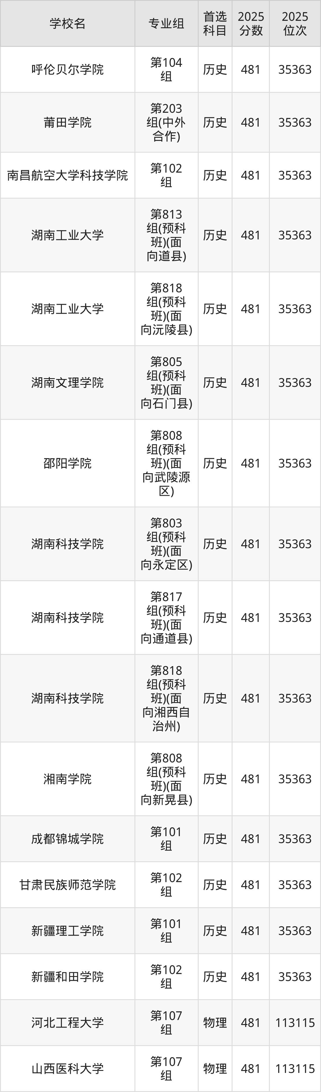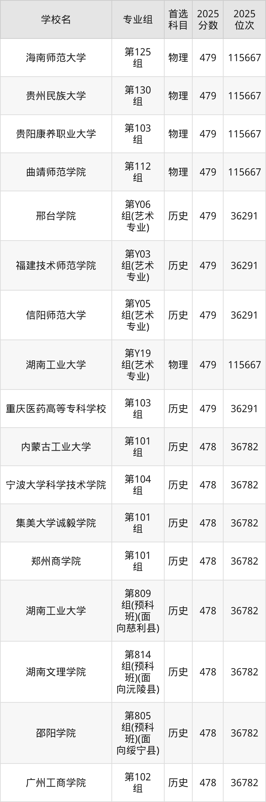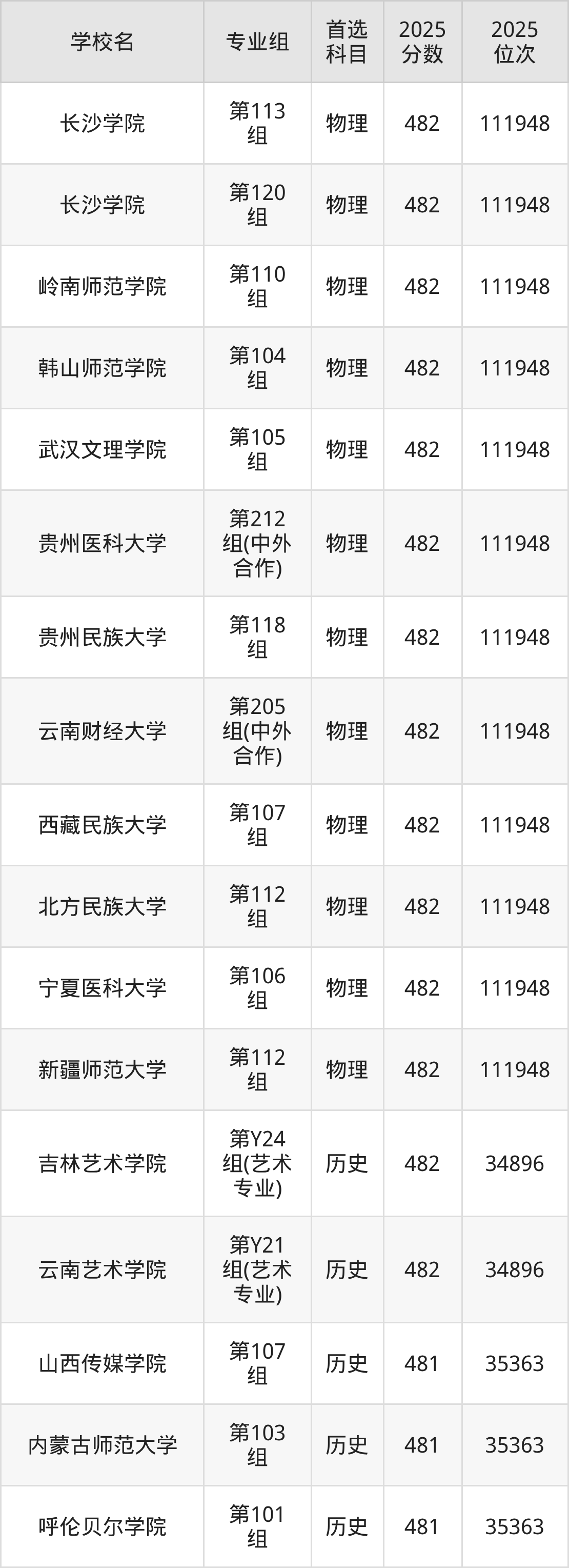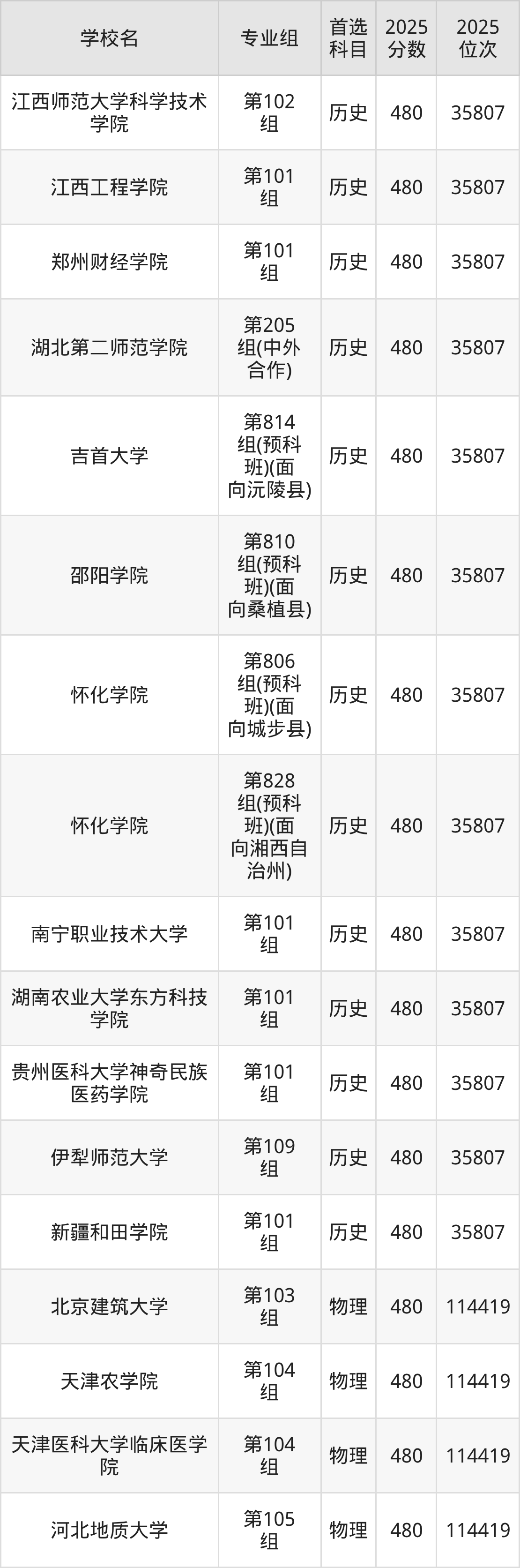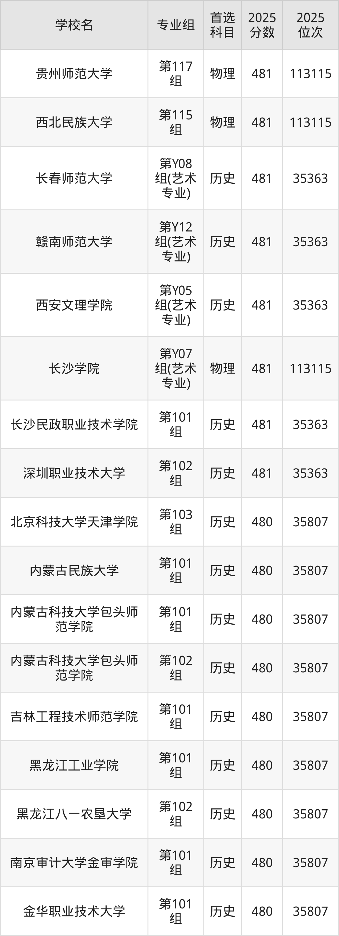 湖南高考历史类480分对应的位次排名是35807名,物理类480分对应的位次排名是114419名,因此建议2026年位次排在这附近的同学考虑这些大学。