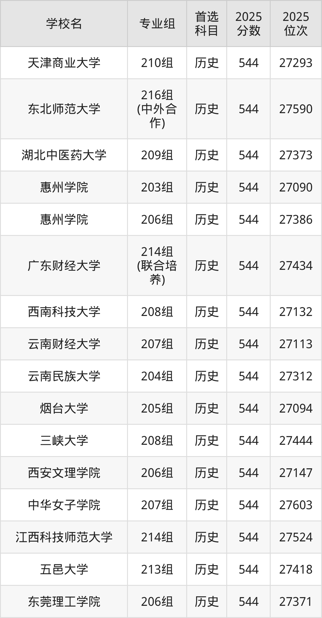 历史类542分可以冲的大学:天津商业大学544分、东北师范大学544分、湖北中医药大学544分、惠州学院544分等;较稳妥的大学:山西师范大学541分、东北石油大学541分、山东师范大学541分、河南科技大学541分等。