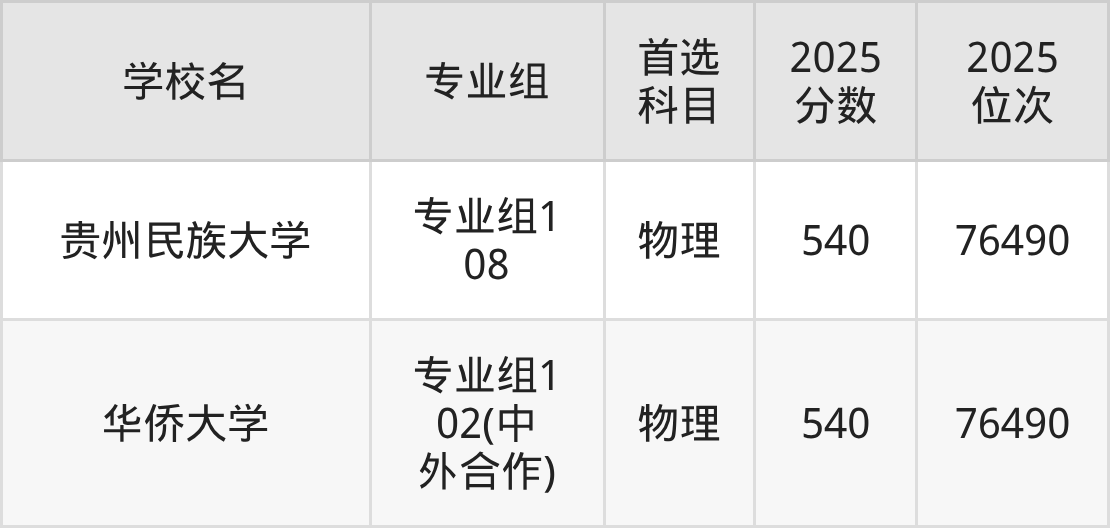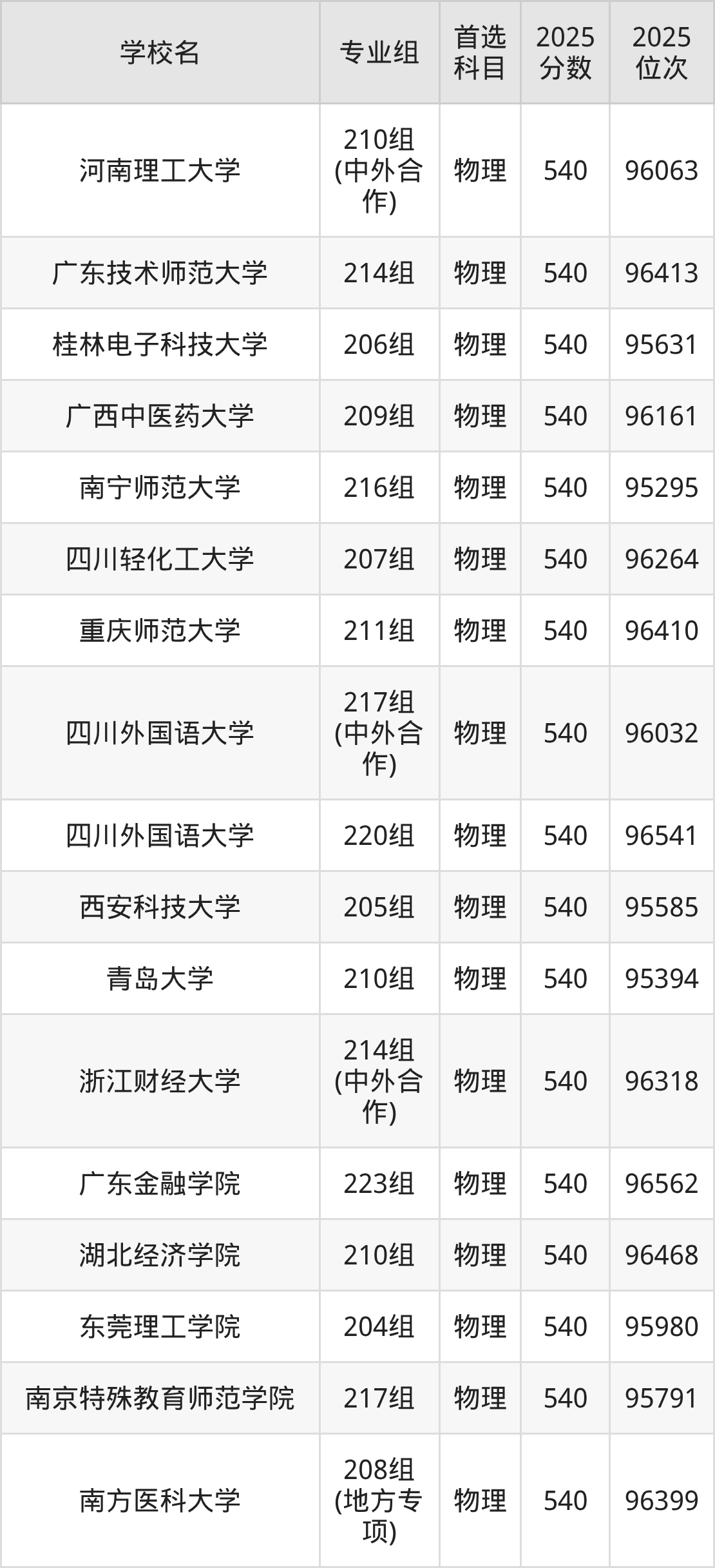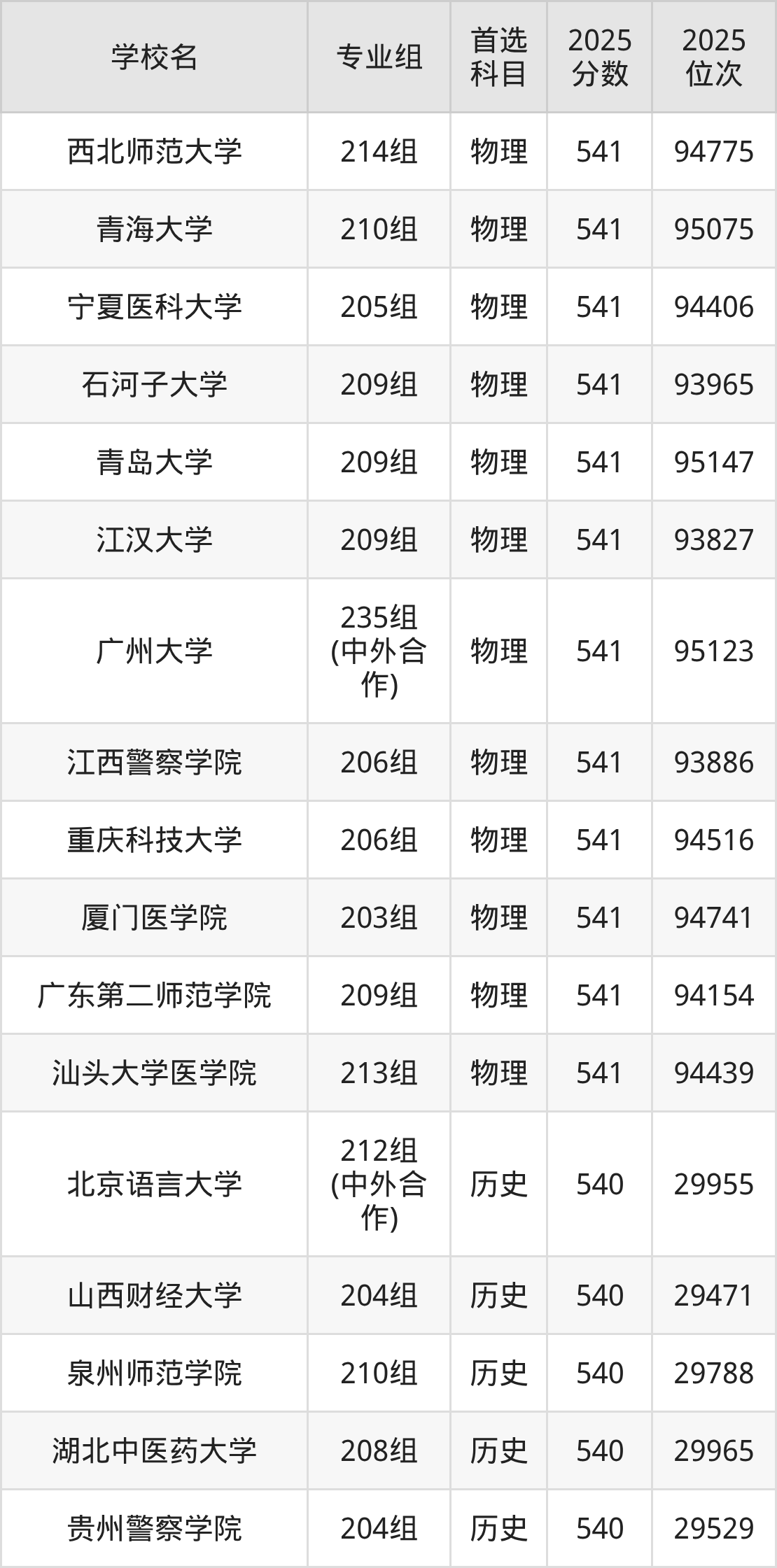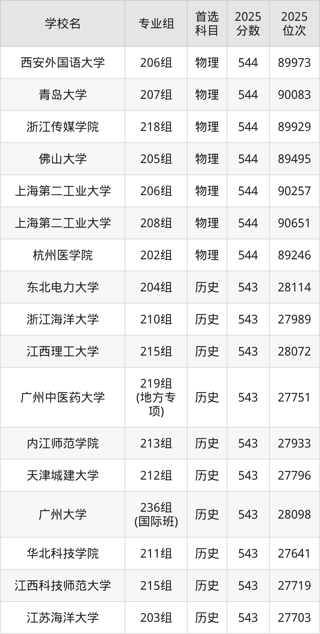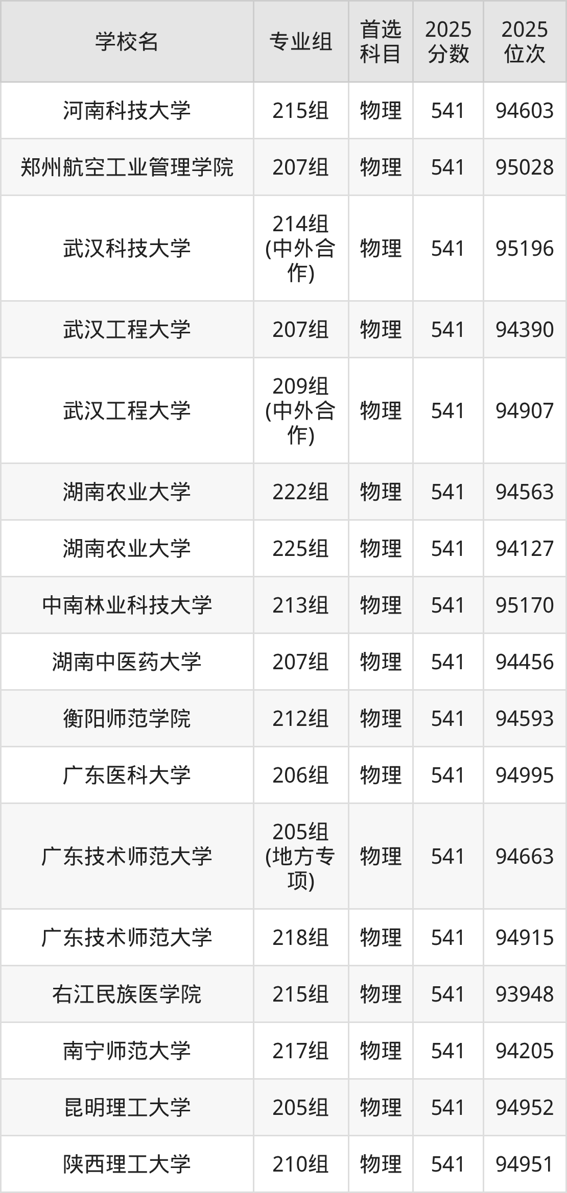 广东高考历史类542分对应的位次排名是28232名-28814名,物理类542分对应的位次排名是92283名-93707名,因此建议2026年位次排在这附近的同学考虑这些大学。
