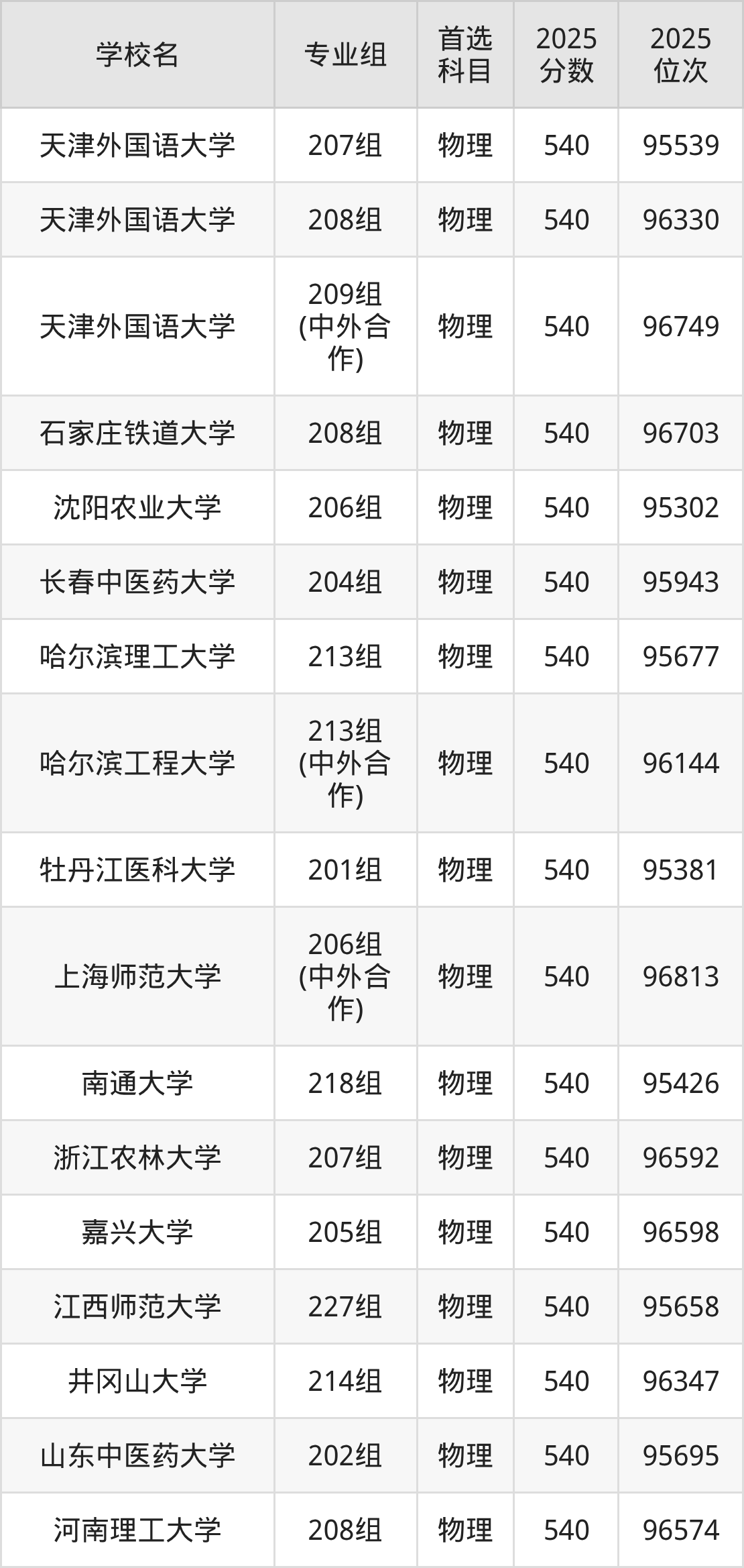 物理类542分可以冲的大学:天津财经大学544分、内蒙古医科大学544分、大连工业大学544分、哈尔滨师范大学544分等;较稳妥的大学:北京体育大学541分、石家庄铁道大学541分、沈阳理工大学541分、辽宁工程技术大学541分等。