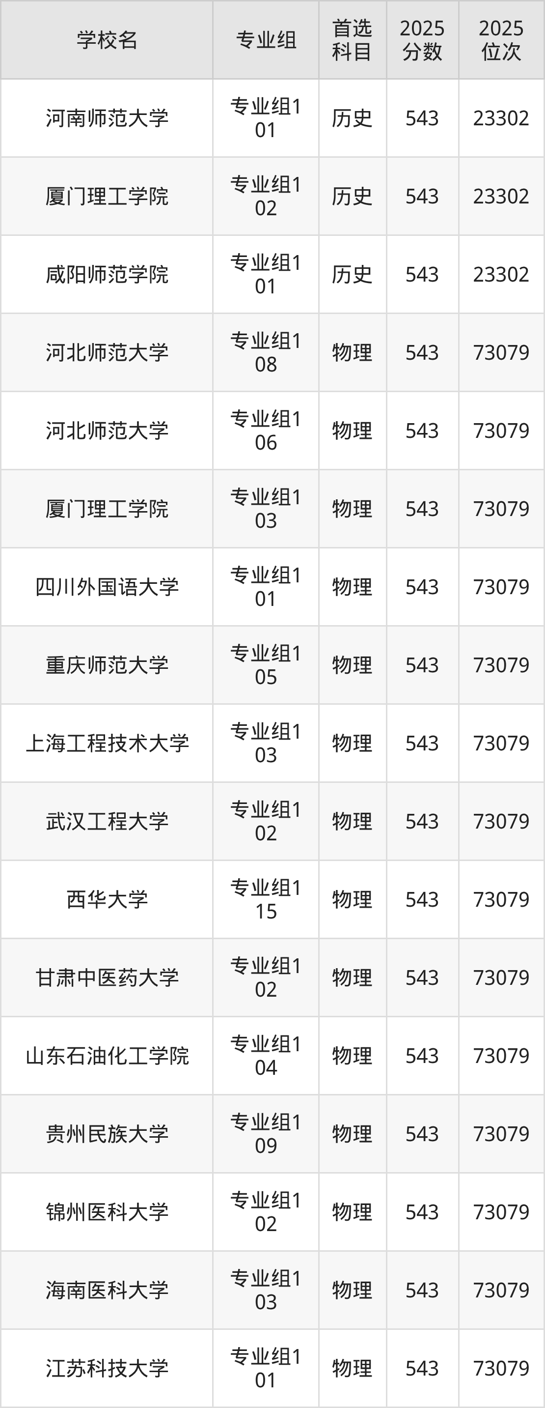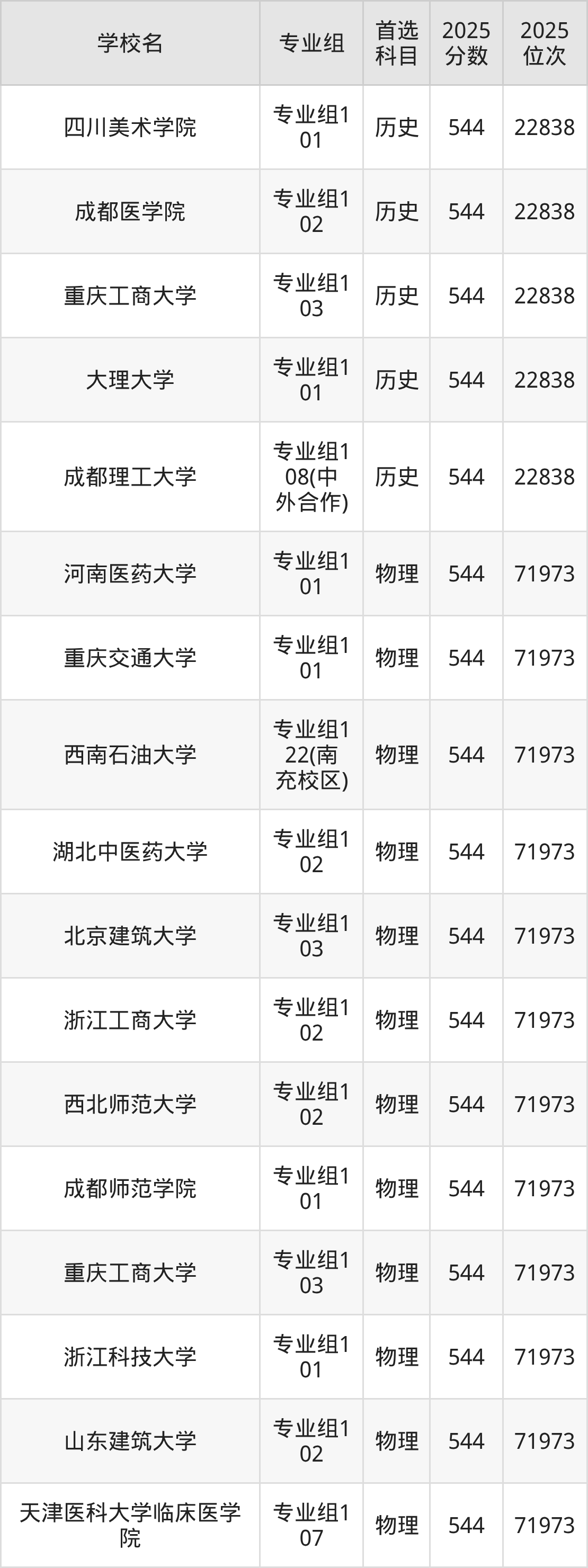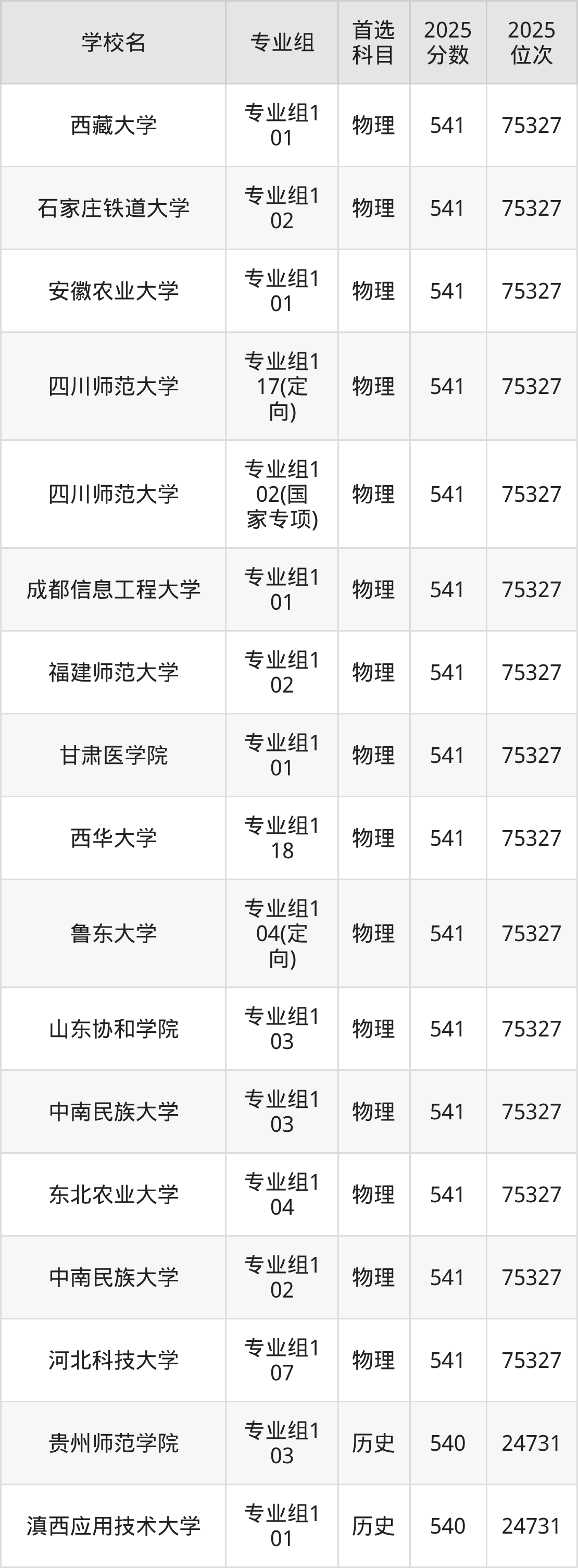 四川高考历史类542分对应的位次排名是23750名,物理类542分对应的位次排名是74215名,因此建议2026年位次排在这附近的同学考虑这些大学。