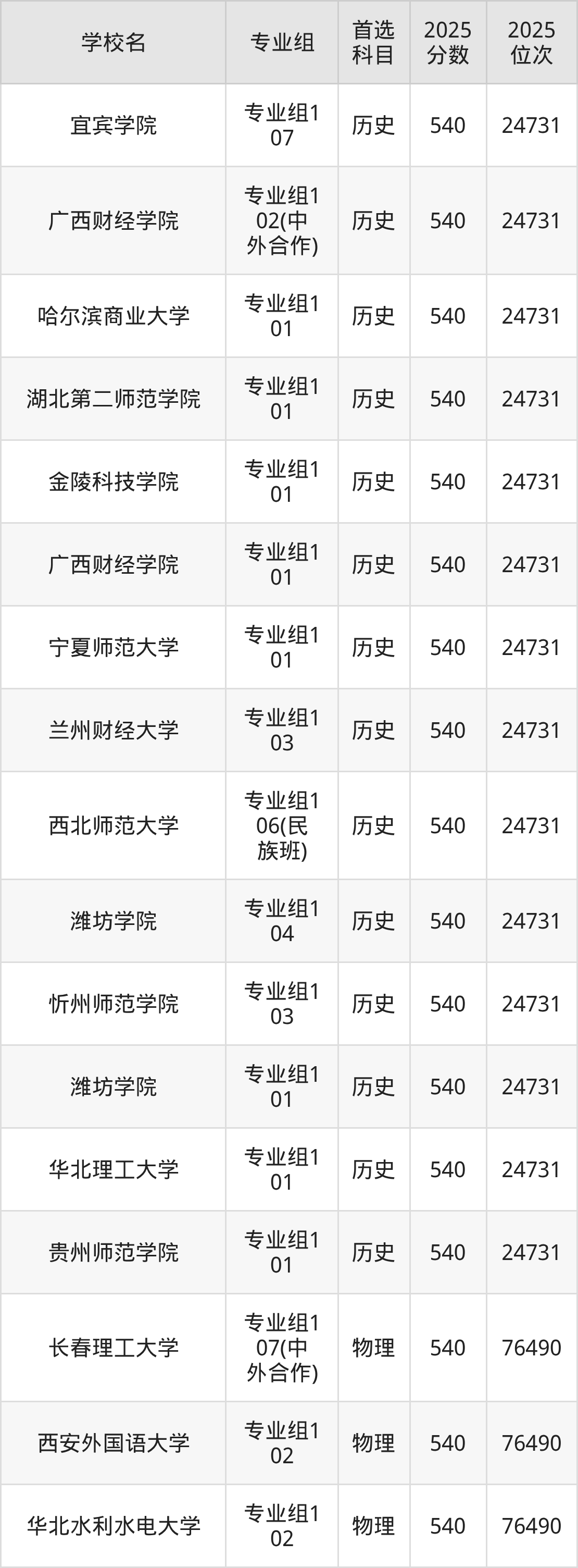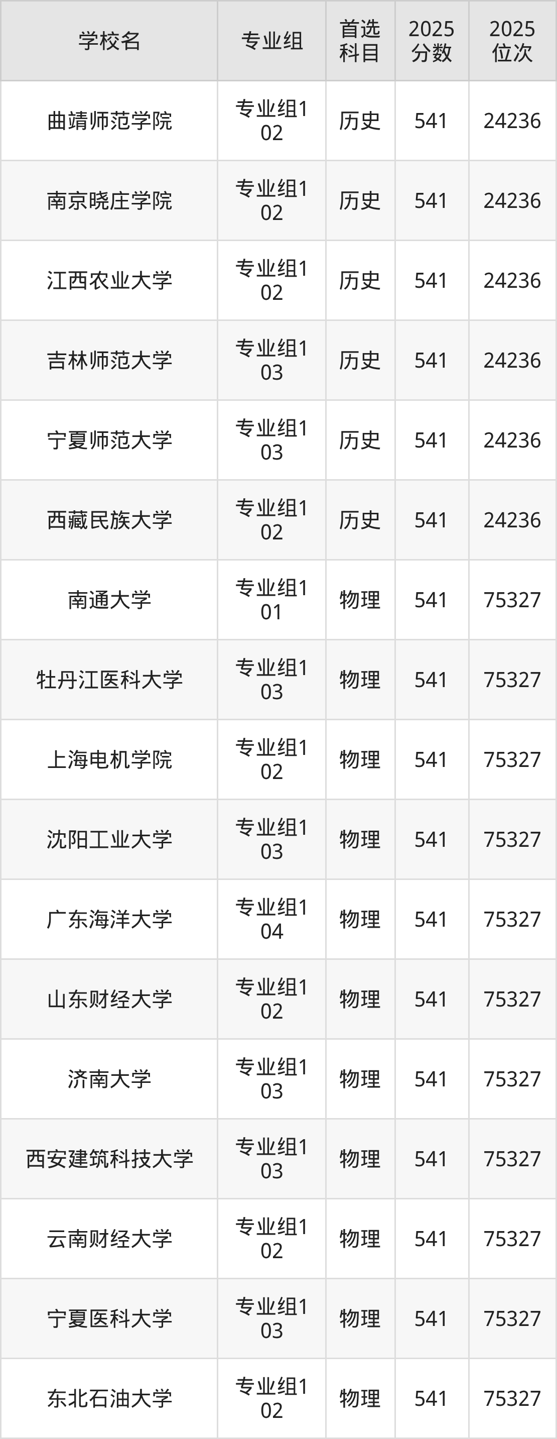 下面老师将以上文整理的其中两个省份为例,为大家具体展示542分左右能上的本科大学名单。