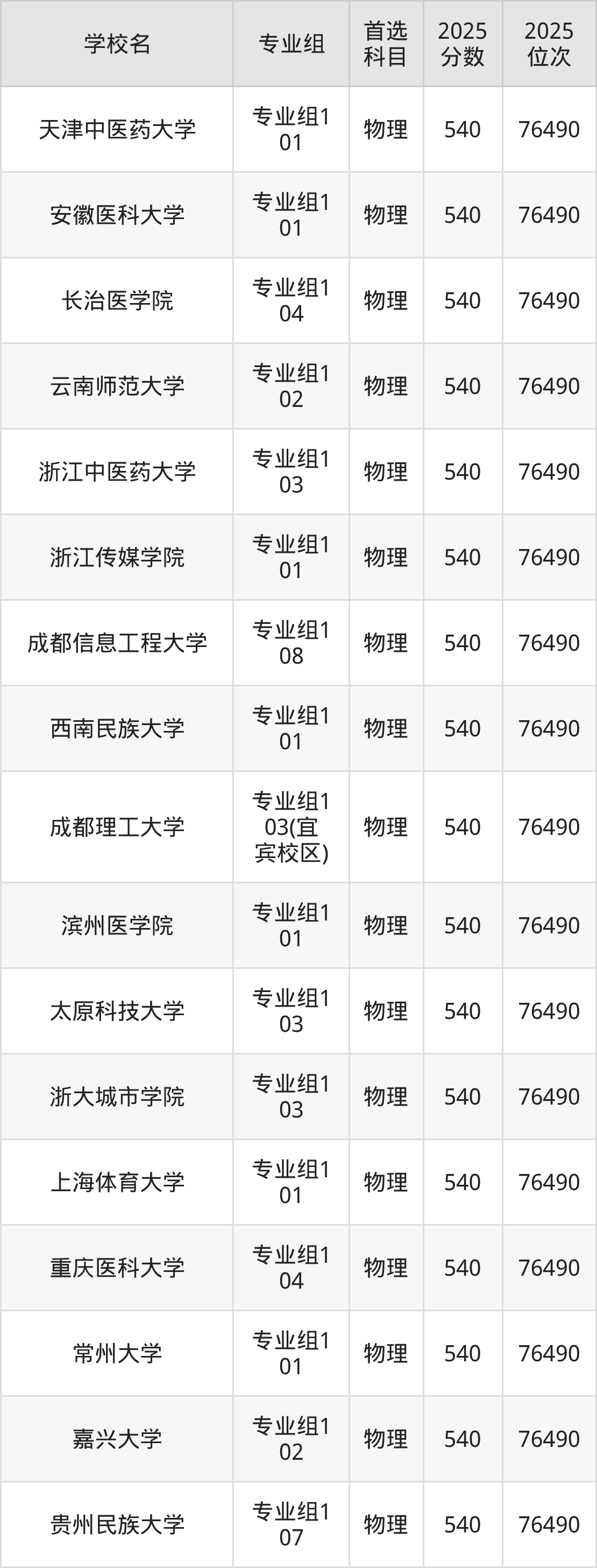 物理类542分可以冲的大学:河南医药大学544分、重庆交通大学544分、西南石油大学544分、湖北中医药大学544分等;较稳妥的大学:南通大学541分、牡丹江医科大学541分、上海电机学院541分、沈阳工业大学541分等。