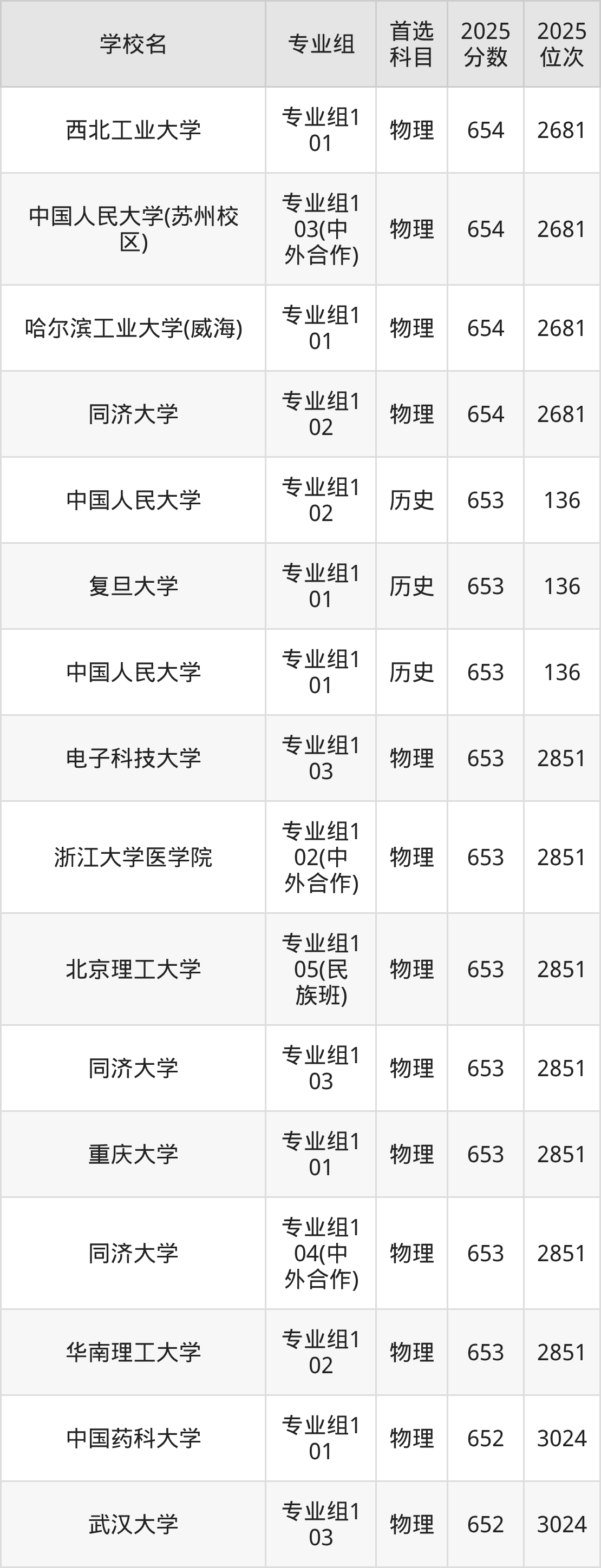 历史类652分可以冲的大学:中国人民大学653分、复旦大学653分;较稳妥的大学:浙江大学650分。